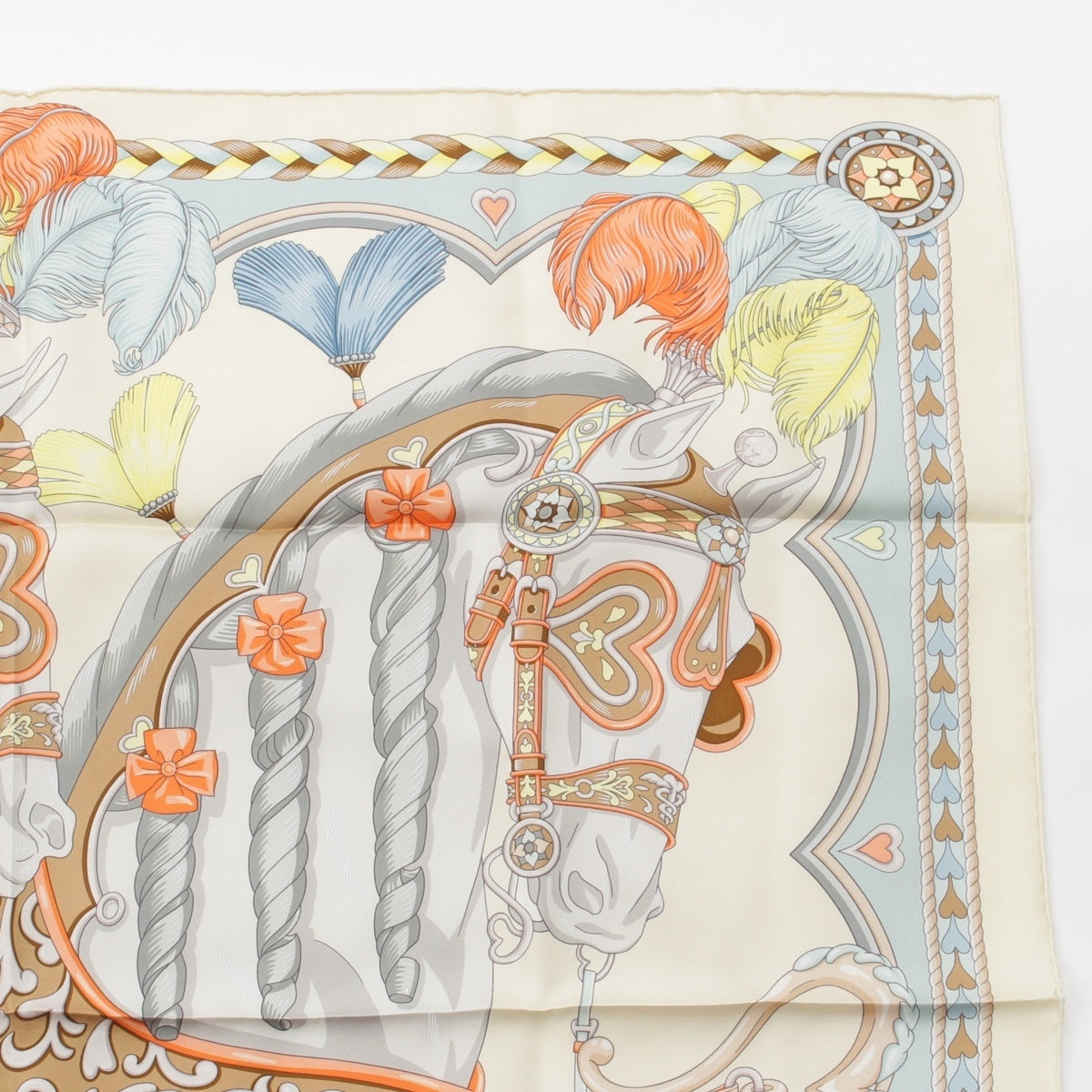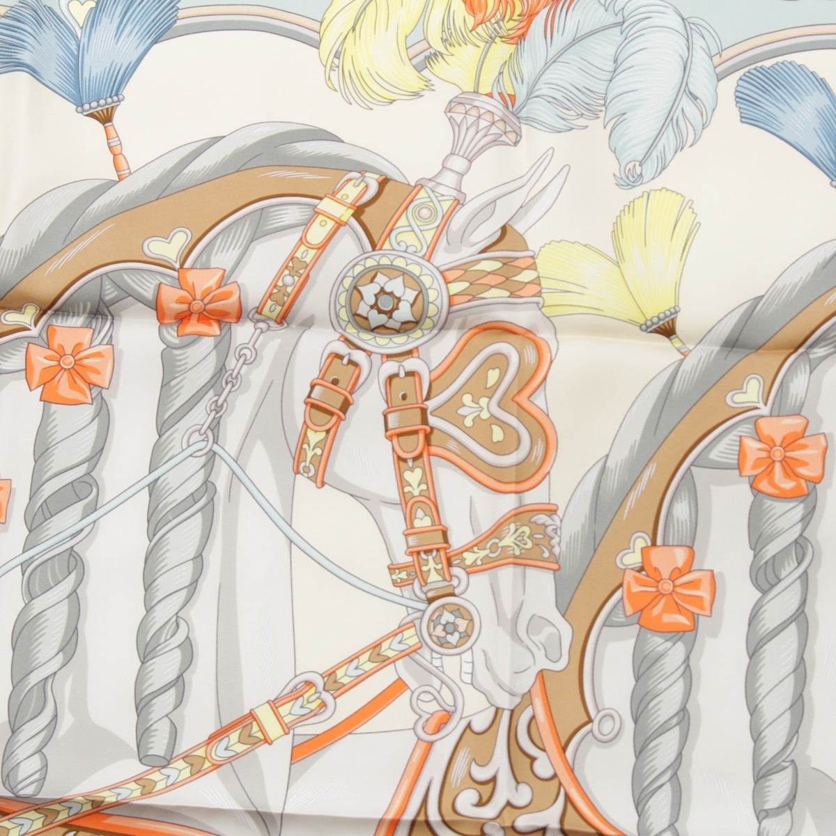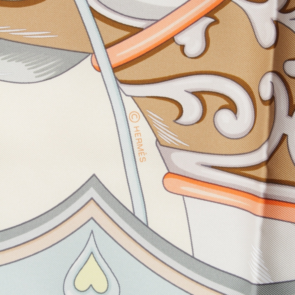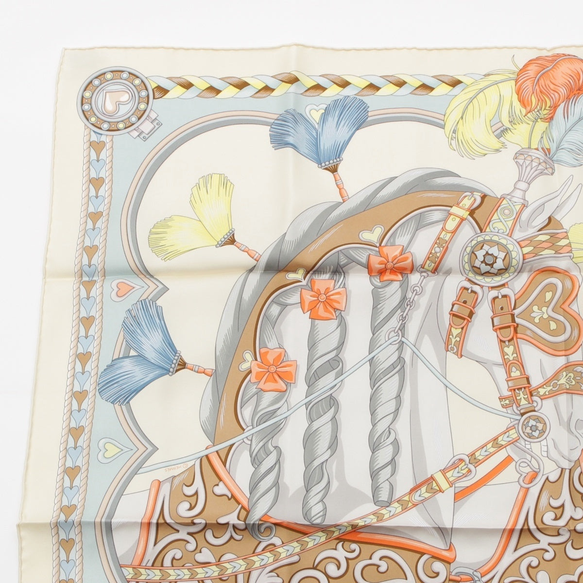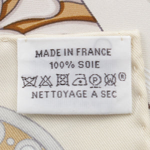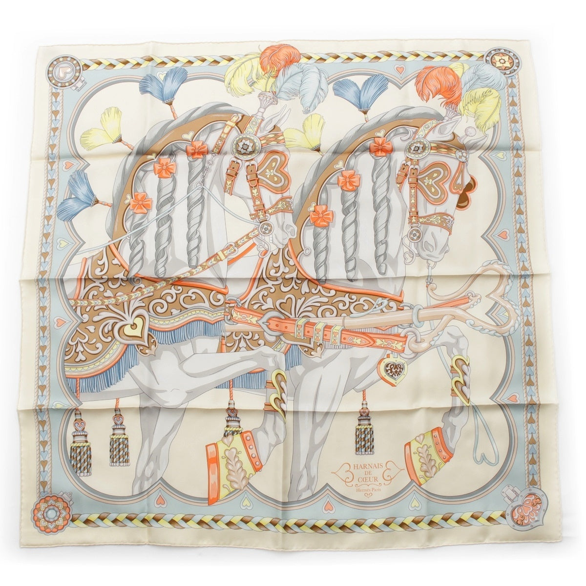 HERMES Carré 90 Harnais de Coeur Arne de Coeur silk scarf beige