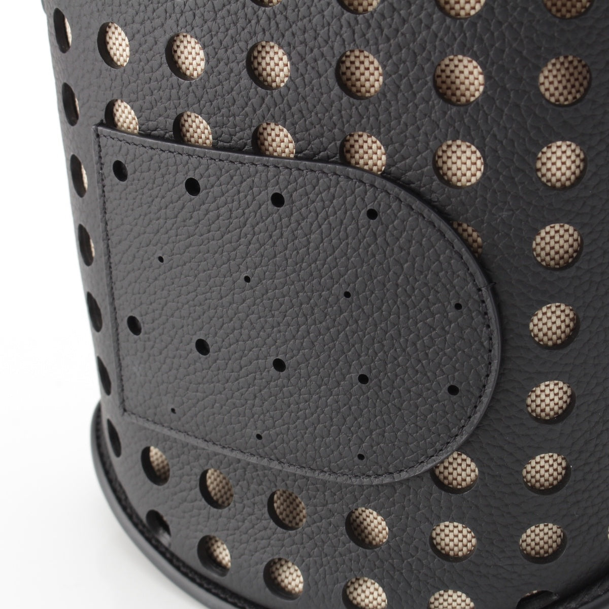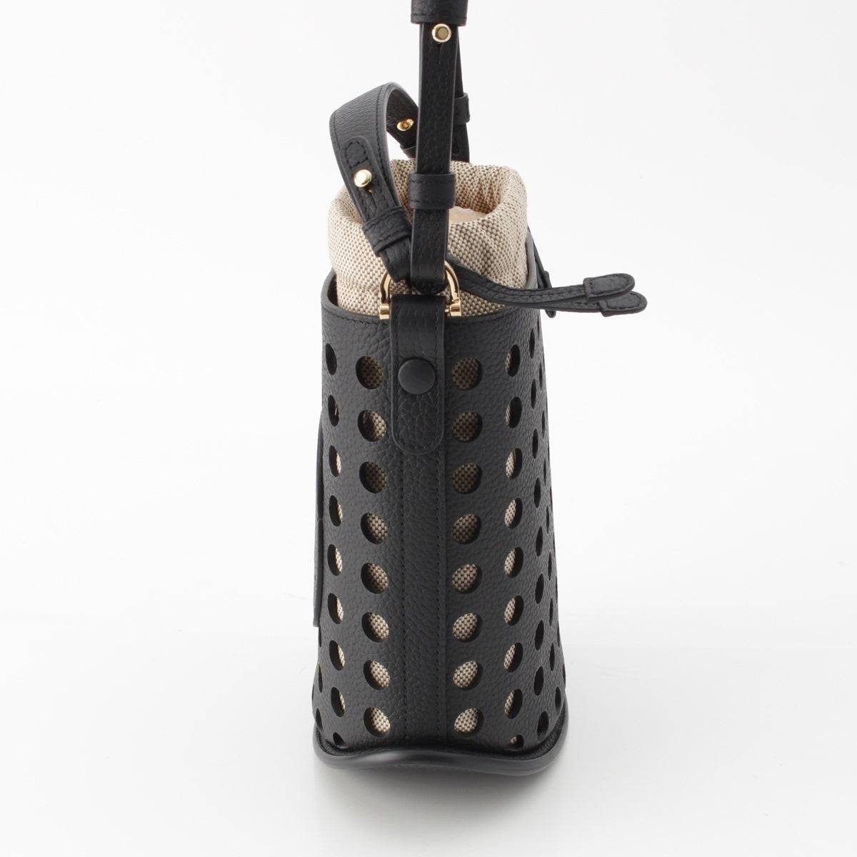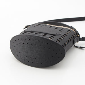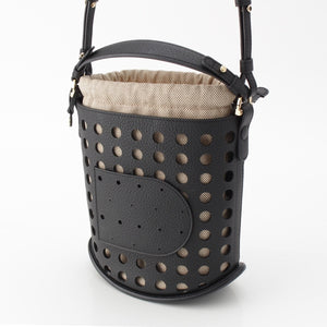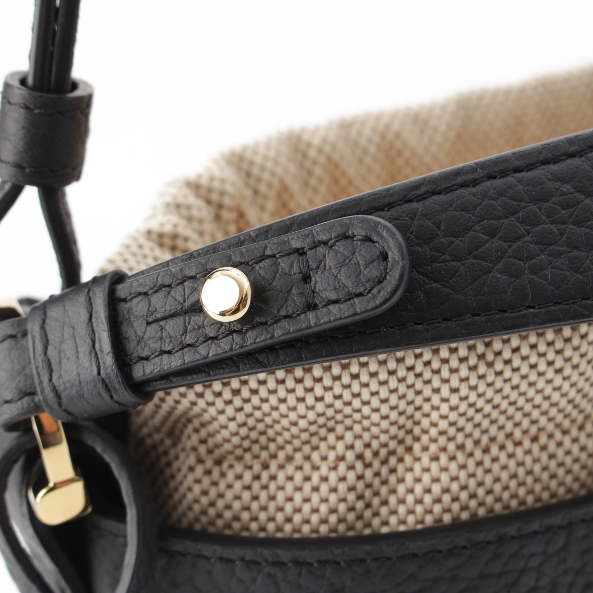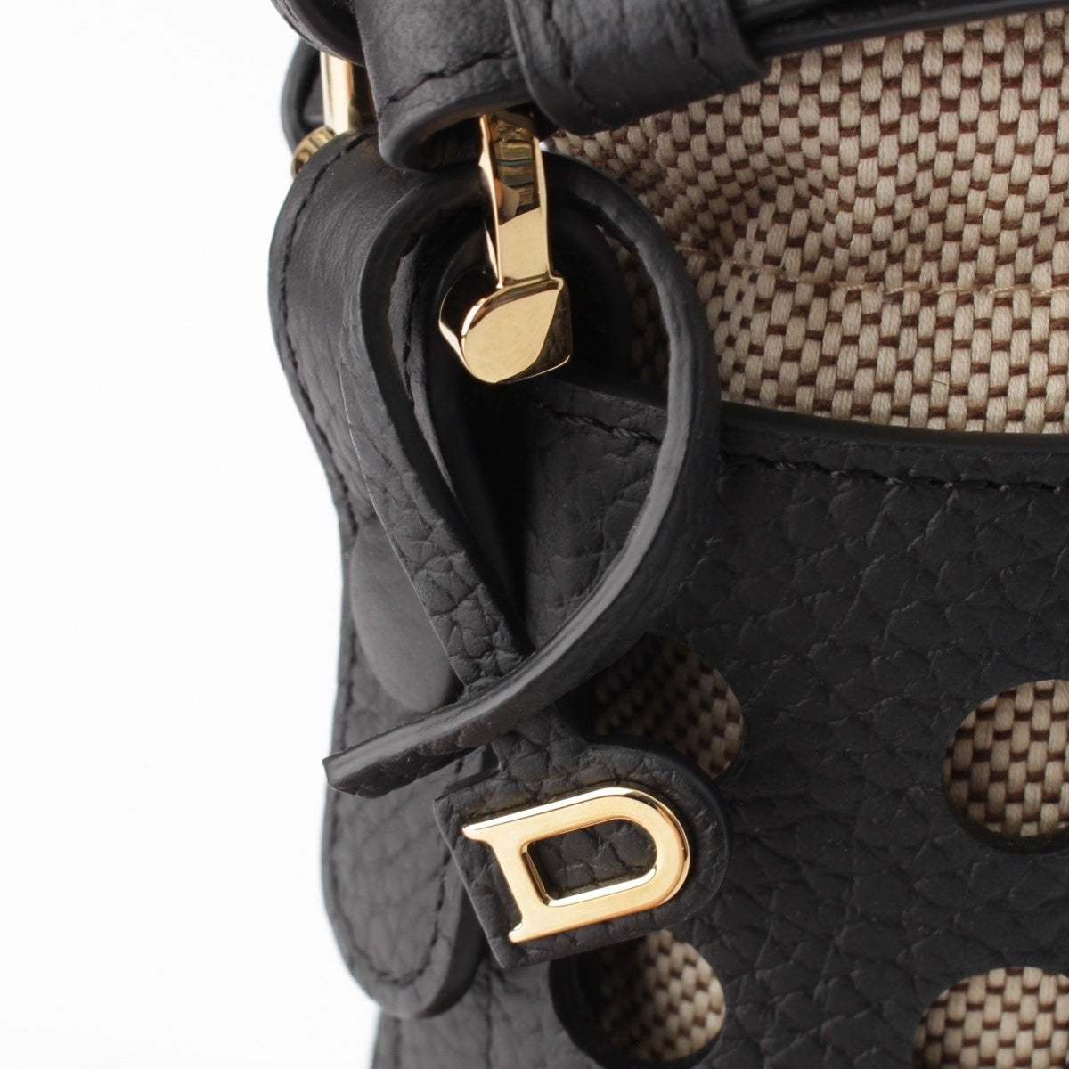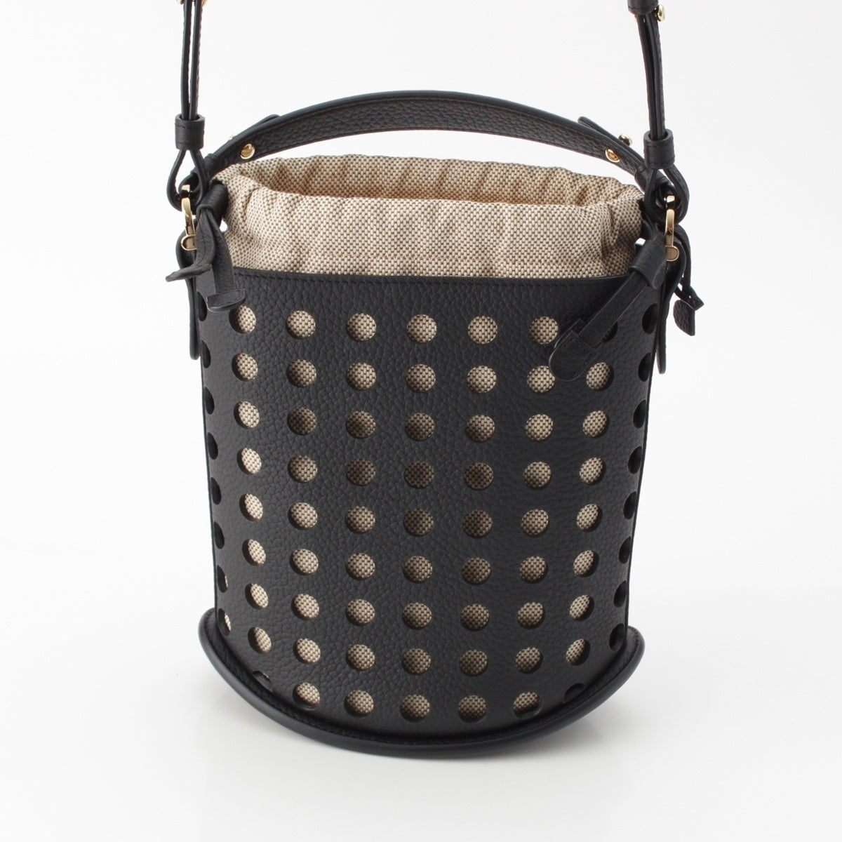 Delvaux Taurillon Clemence soft grain leather Bread Mini Airless Bucket Drawstring Bag 2way Shoulder Handbag black