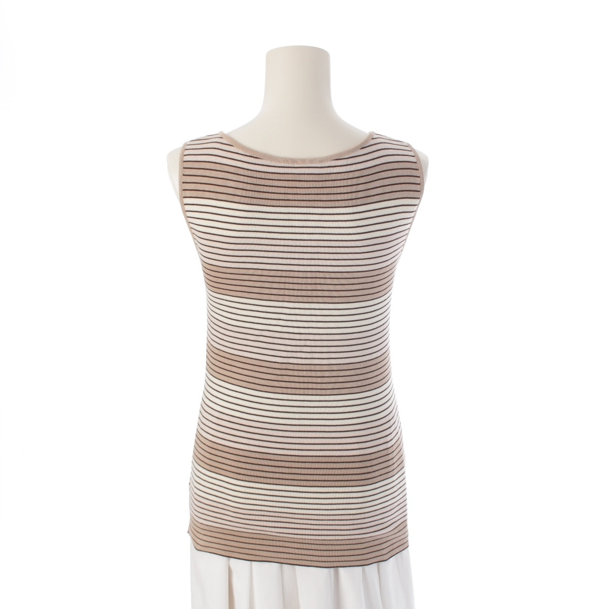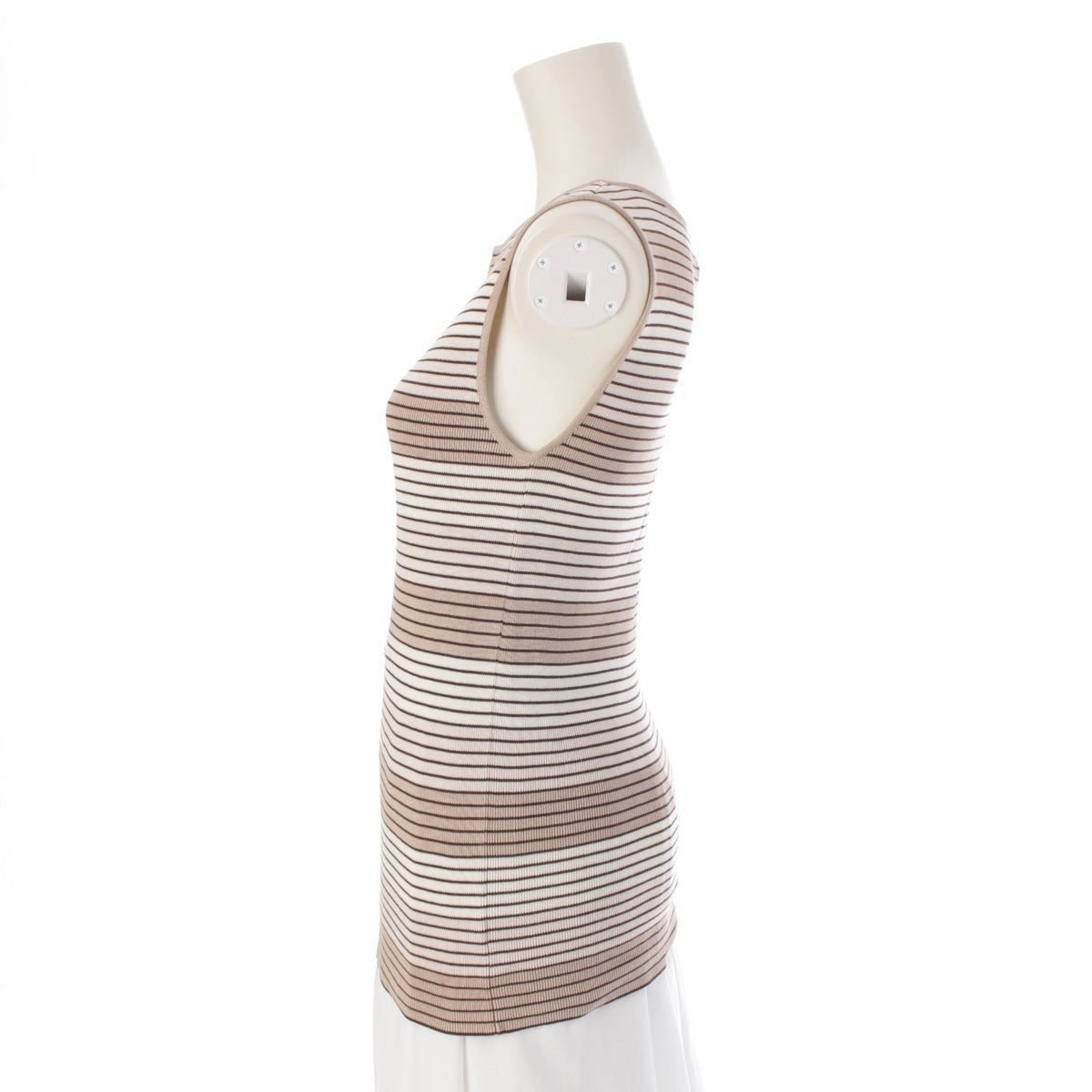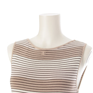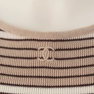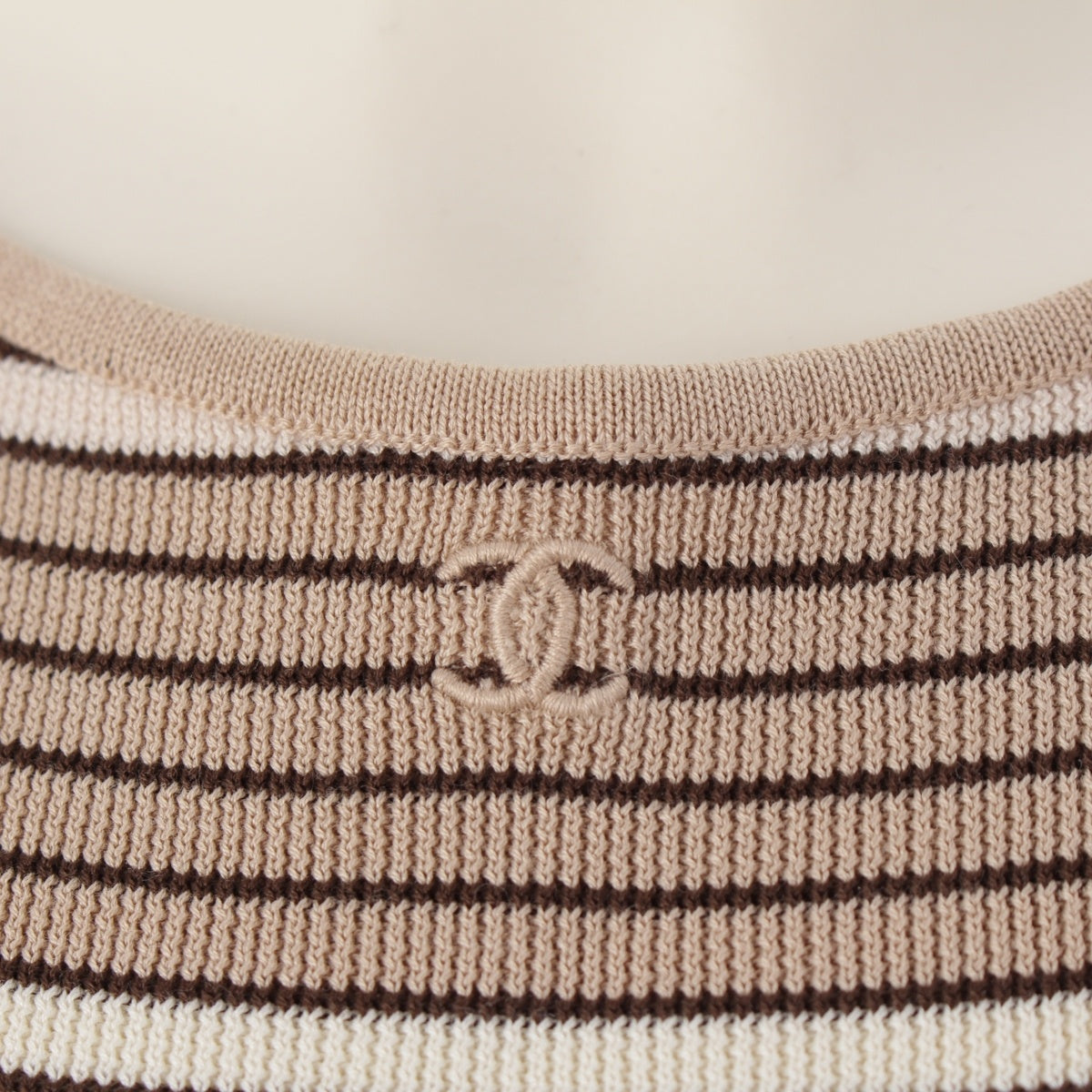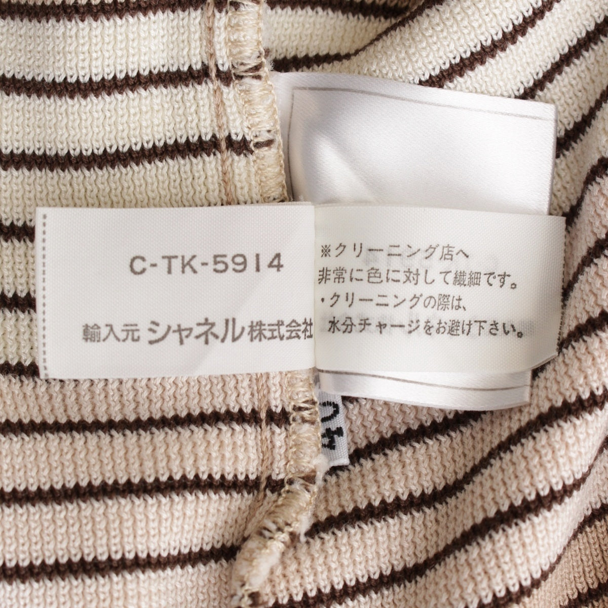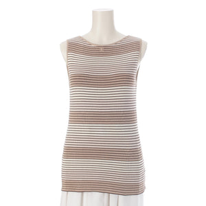 CHANEL cotton COCO Mark embroidered striped knit Tank top P10205 Beige x brown 40