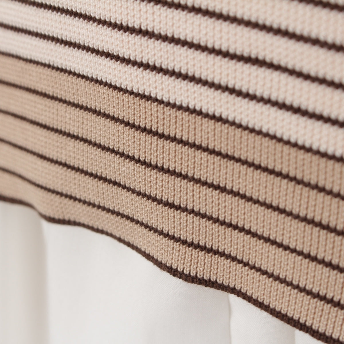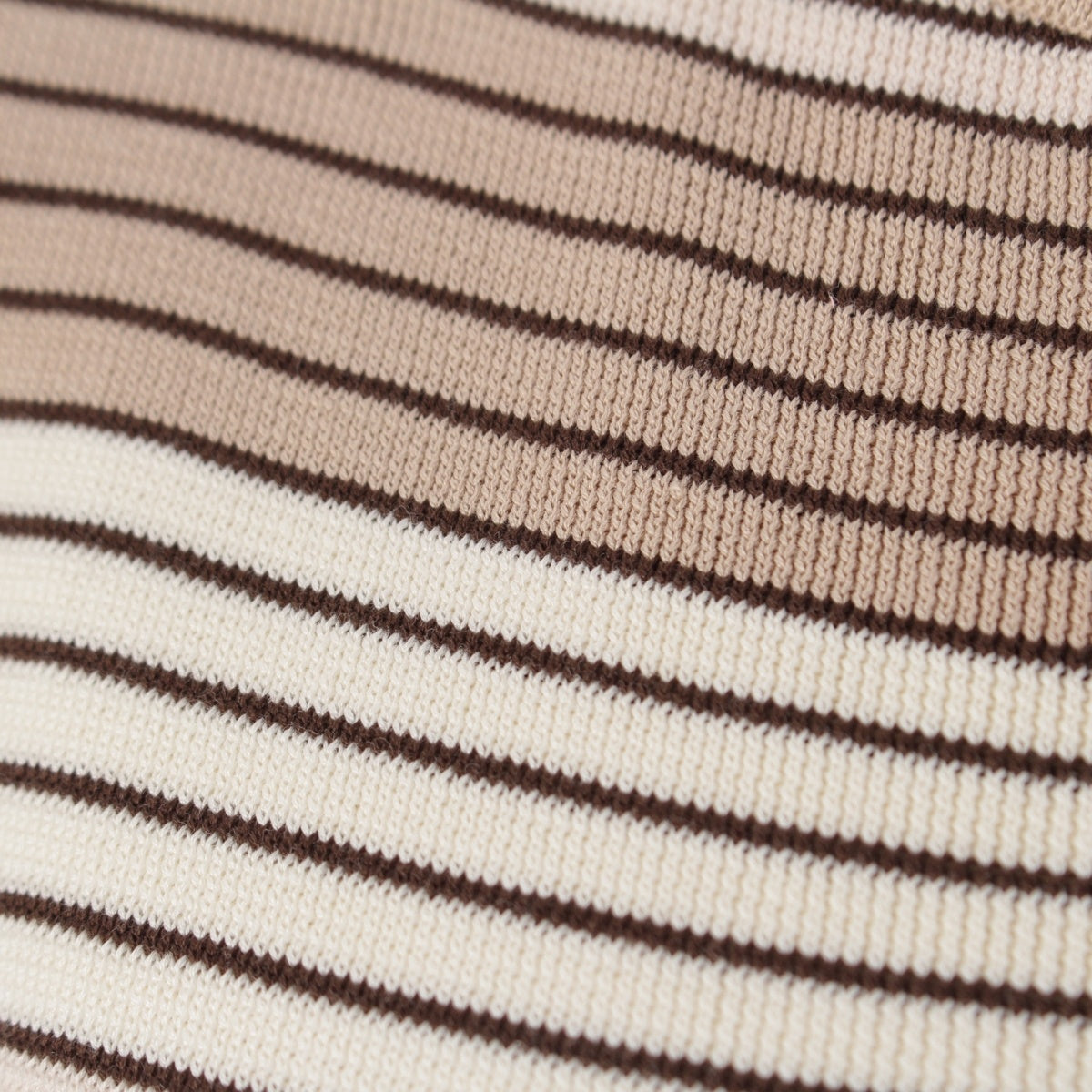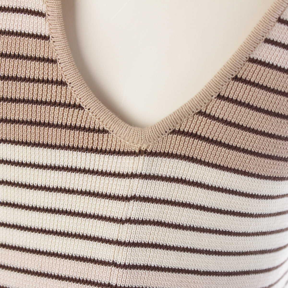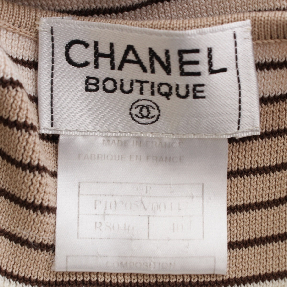 CHANEL cotton COCO Mark embroidered striped knit Tank top P10205 Beige x brown 40