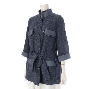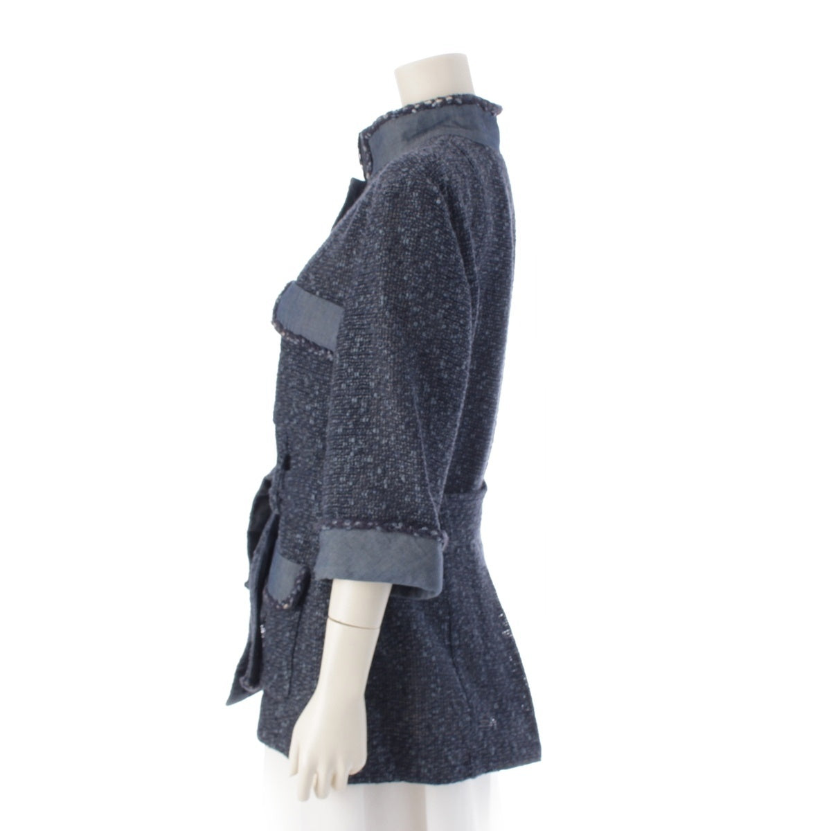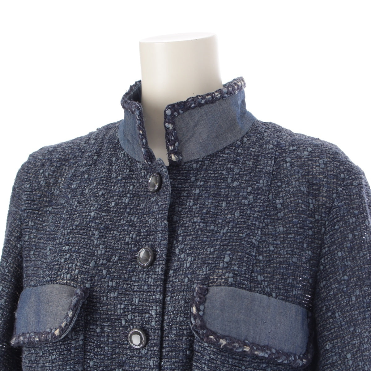 CHANEL Cotton Tweed Jacket outer P43162 Indigo blue 42