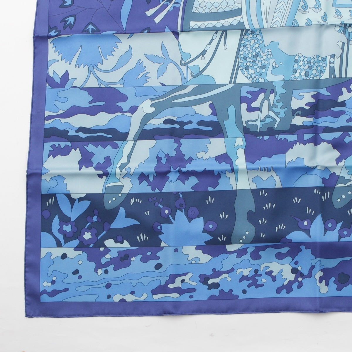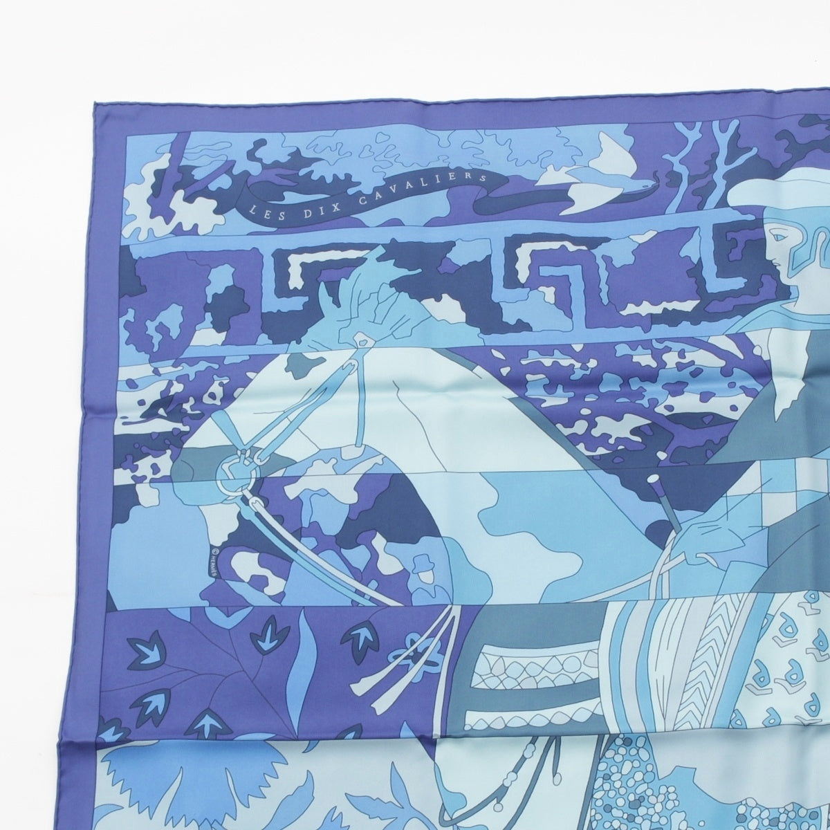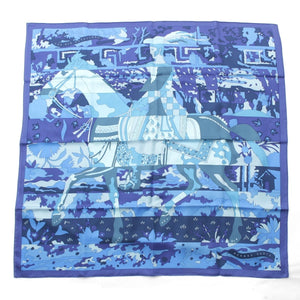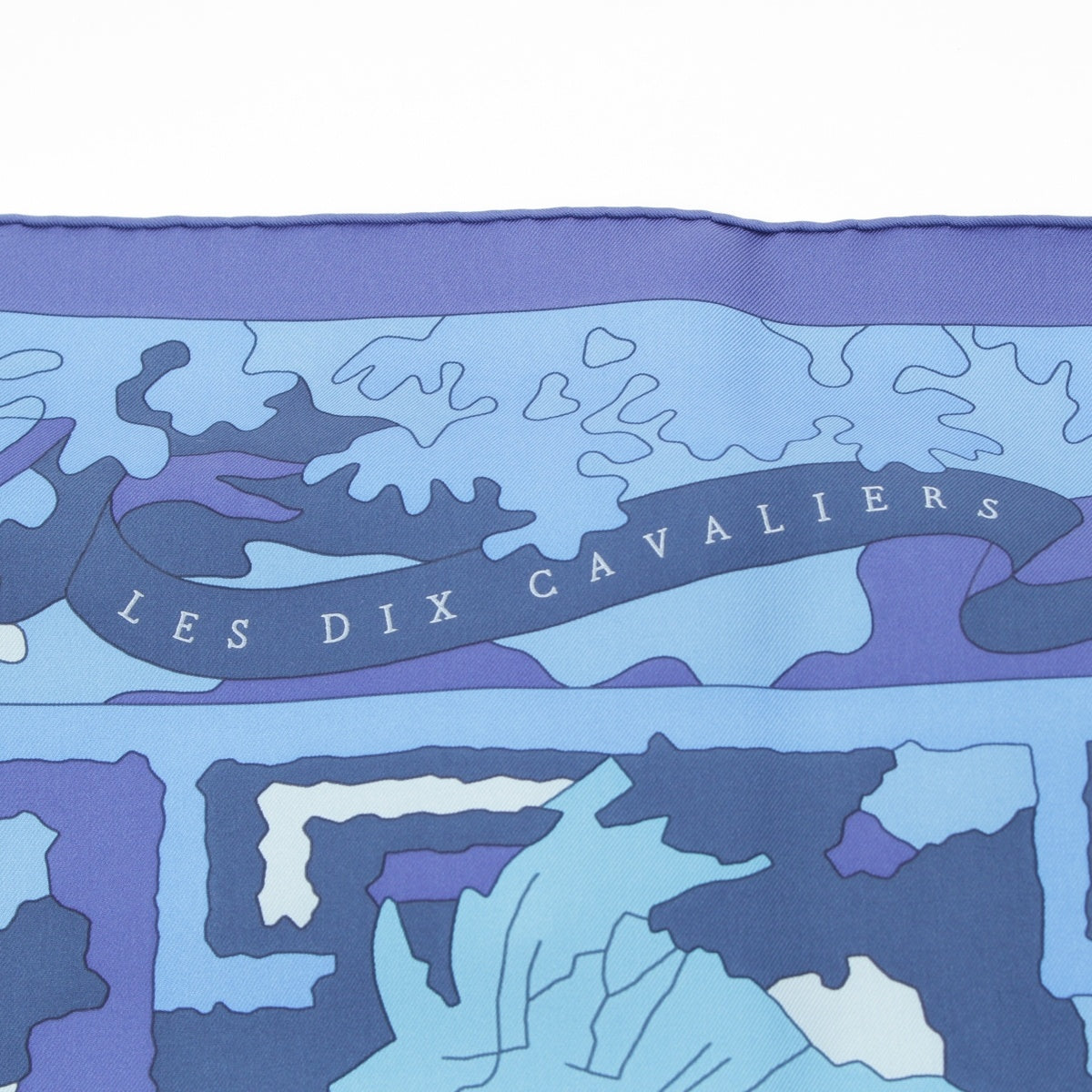 HERMES silk Carre 90 LES DIX CAVALIERS 10 knights scarf blue