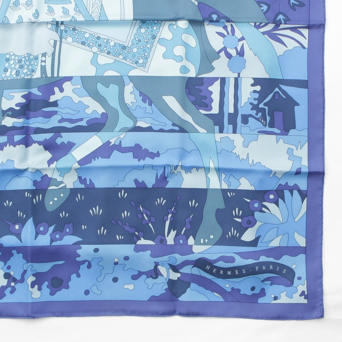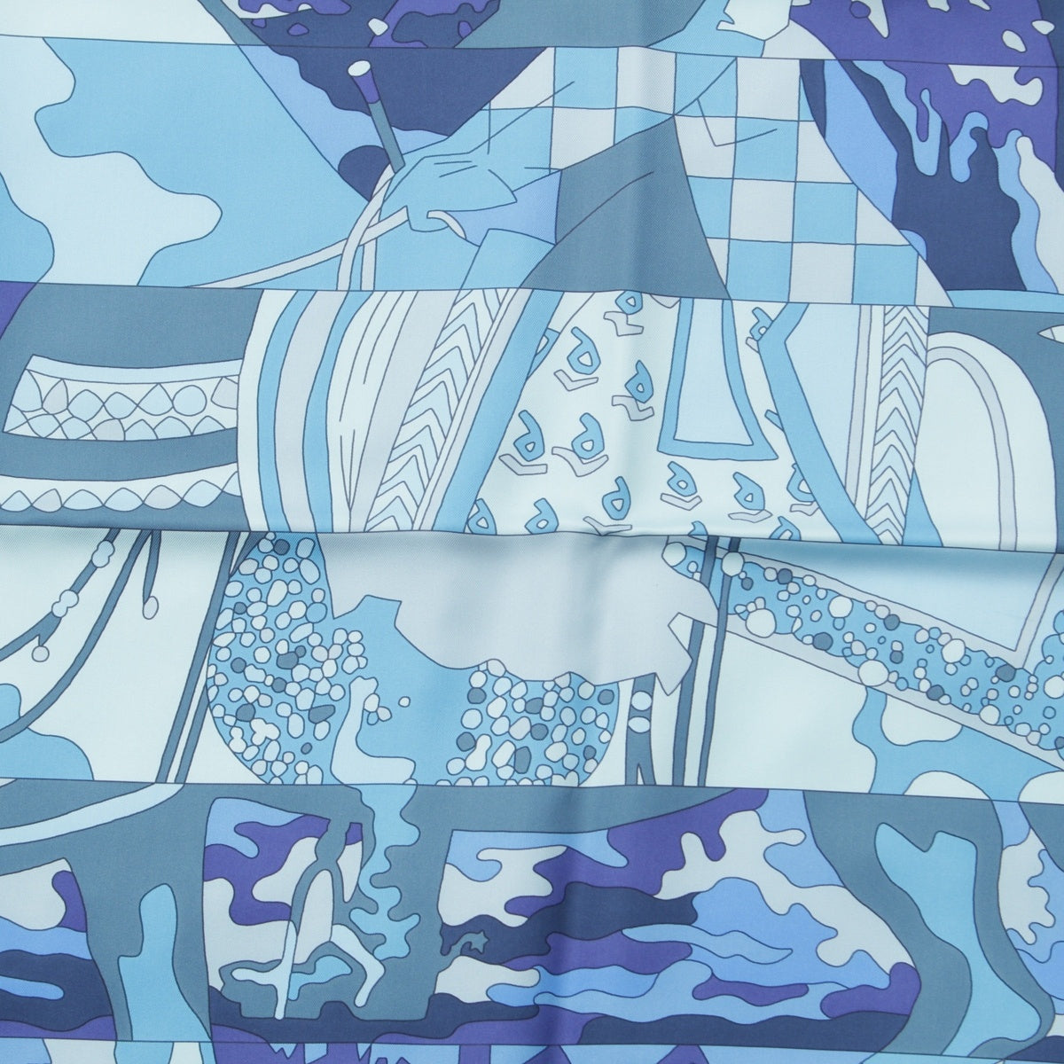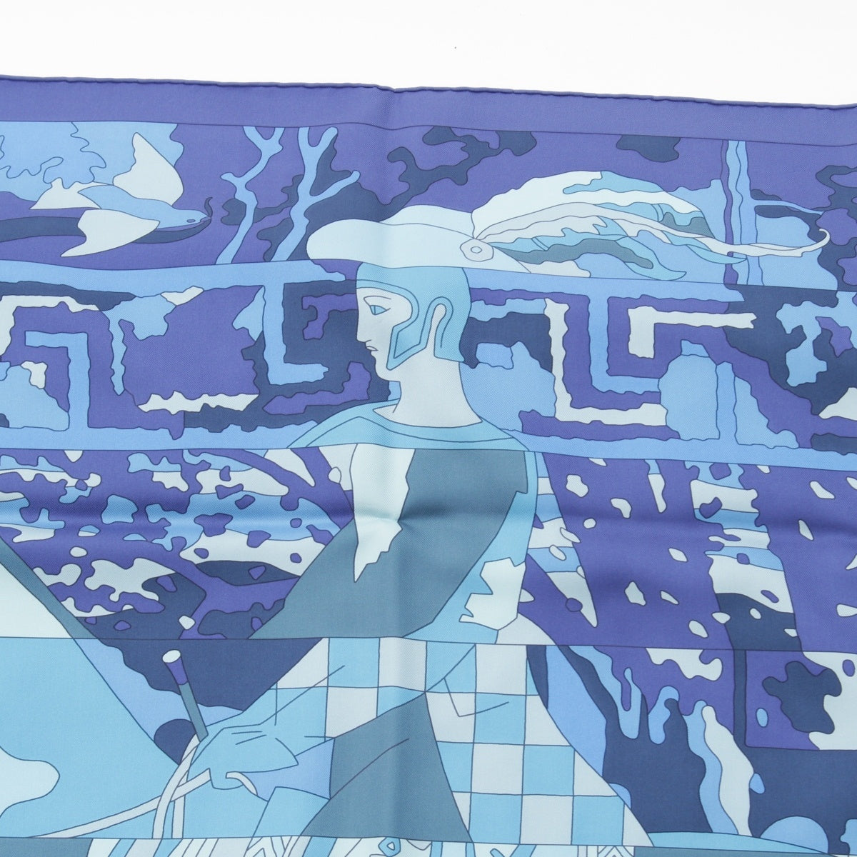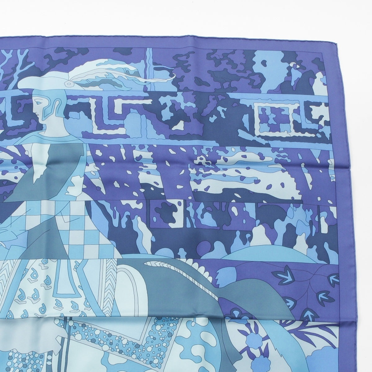 HERMES silk Carre 90 LES DIX CAVALIERS 10 knights scarf blue