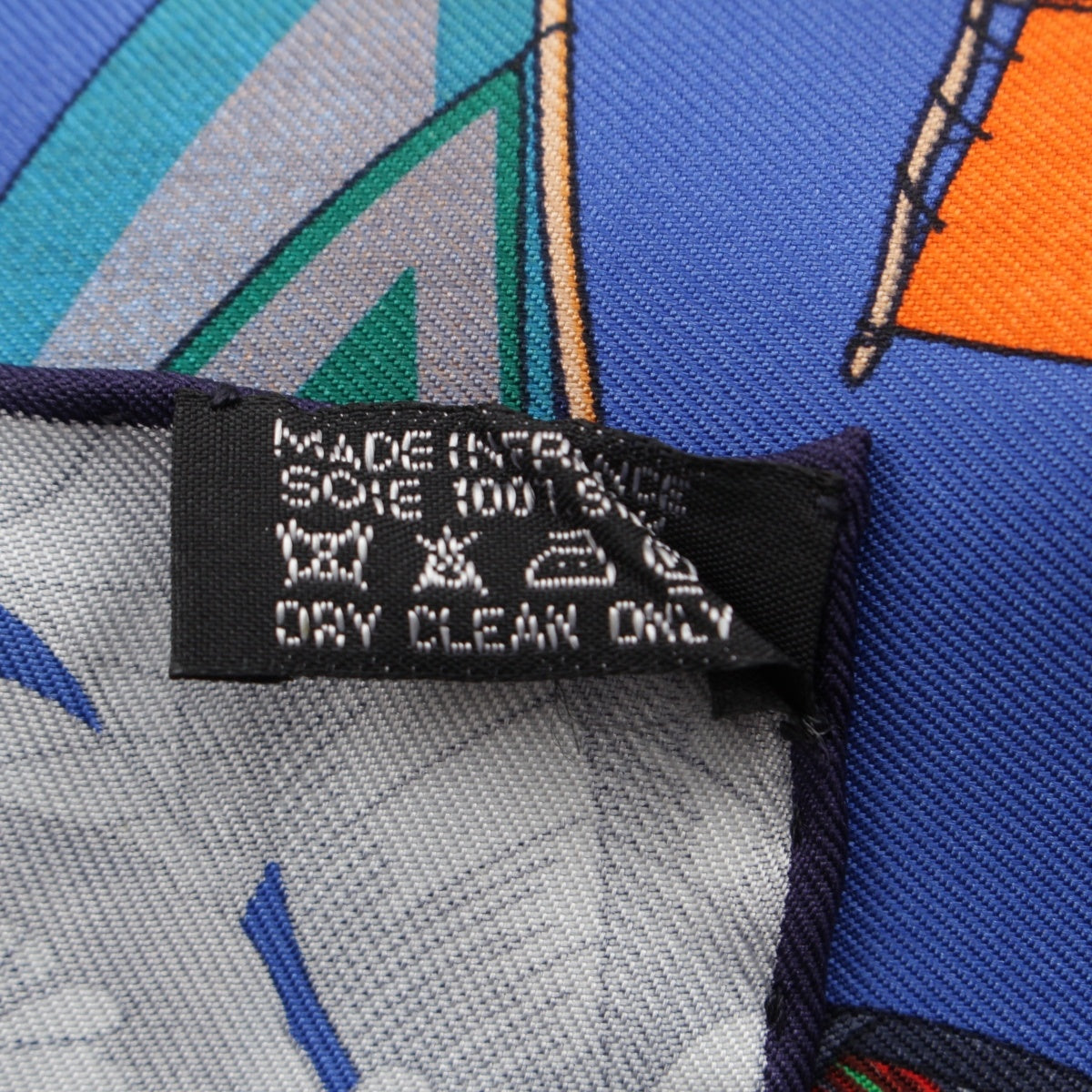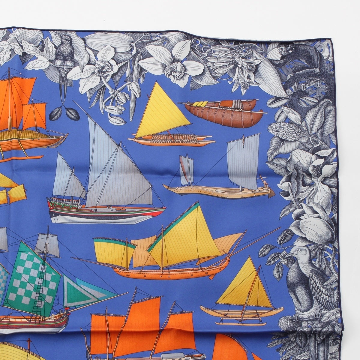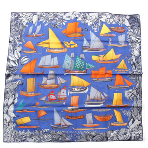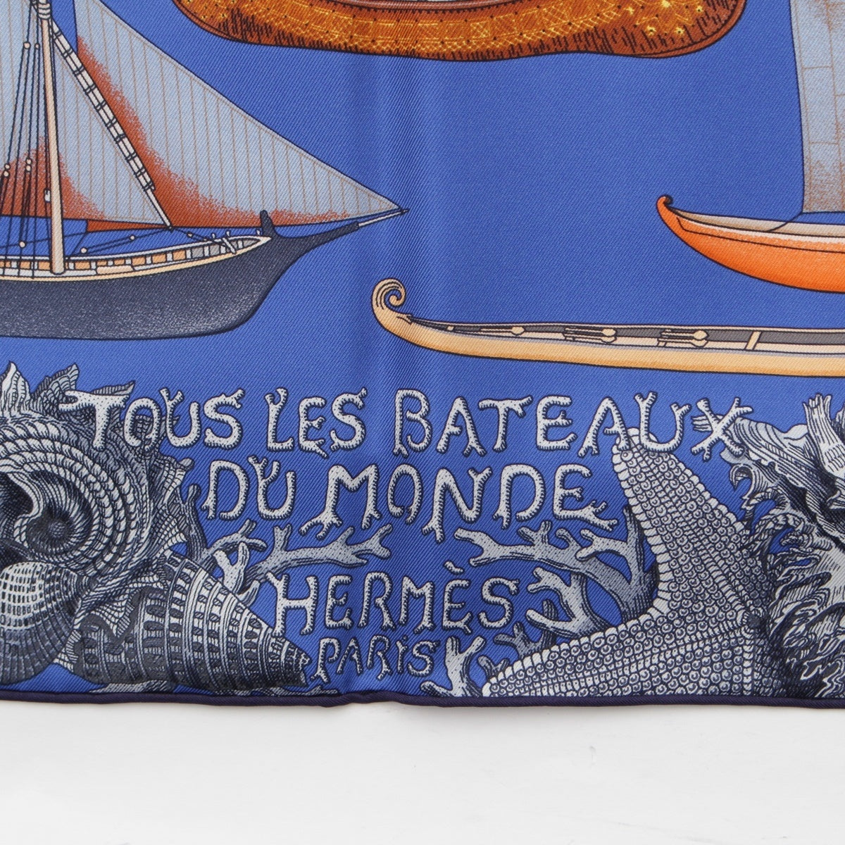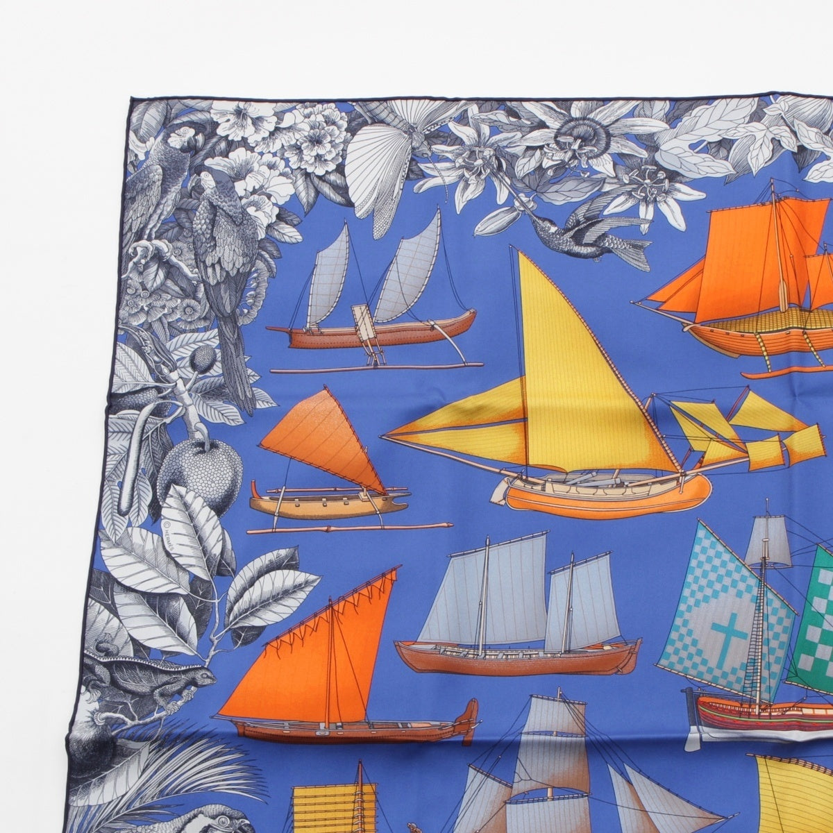 HERMES silk Carre 90 Tous Les Bateaux du Monde Sailing Ships of the World scarf blue