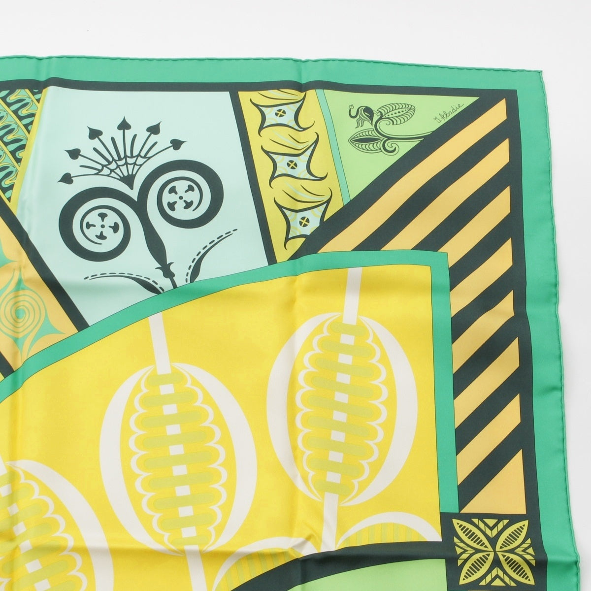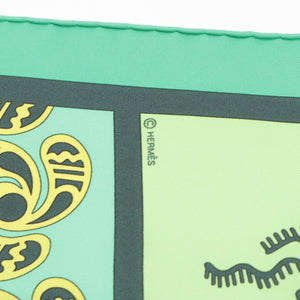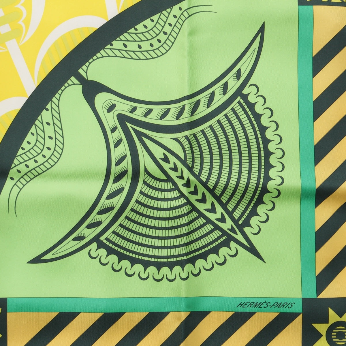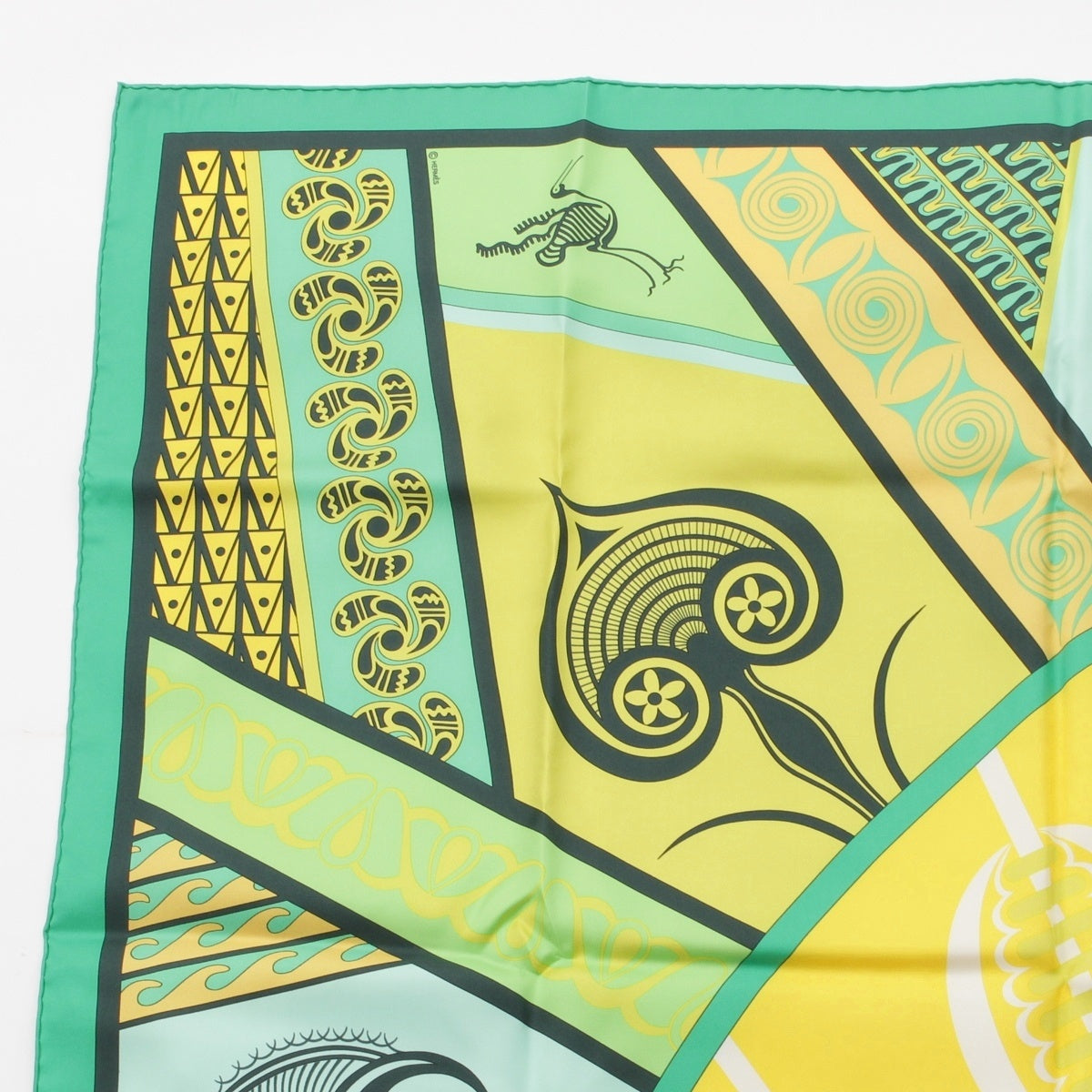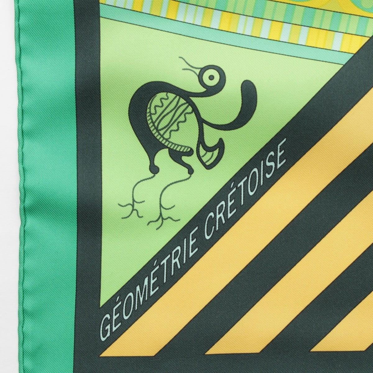 HERMES silk Carre 90 GEOMETRIE CRETOISE Cretan Geometry scarf green