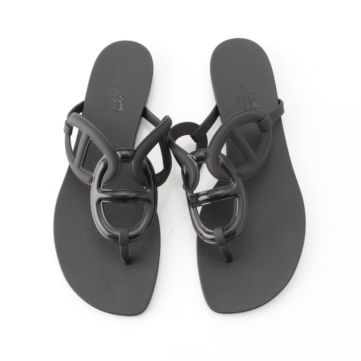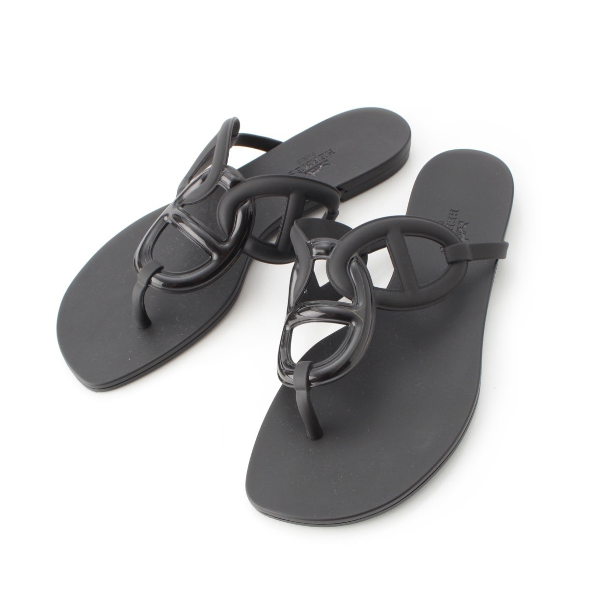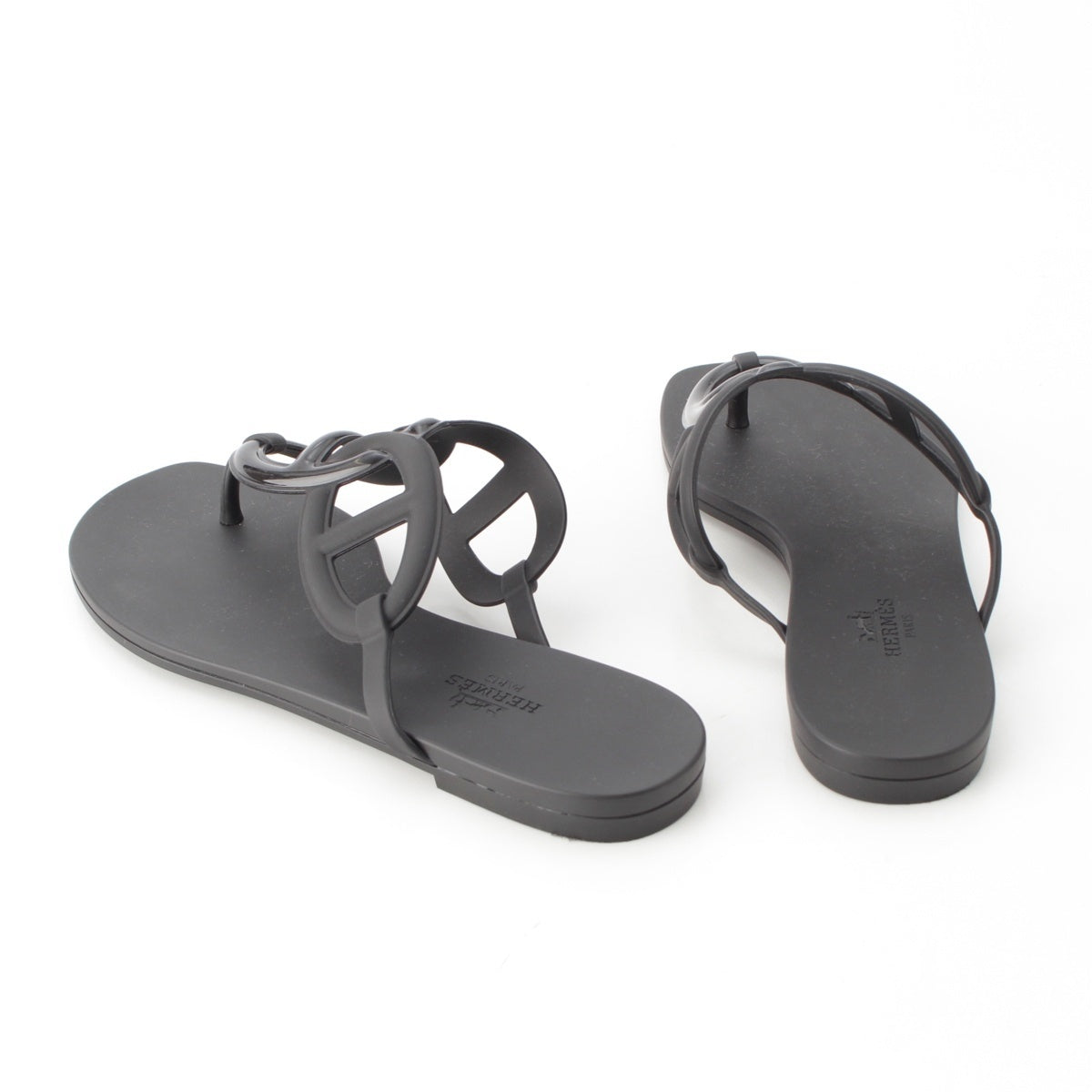 HERMES rubber Egérie Chaine d'Ancre Sandals black 37