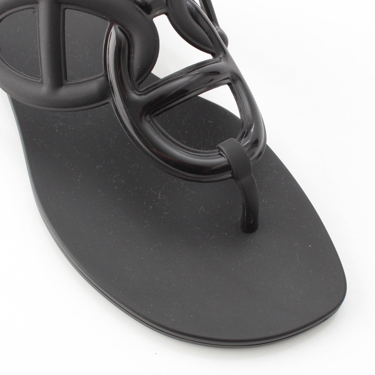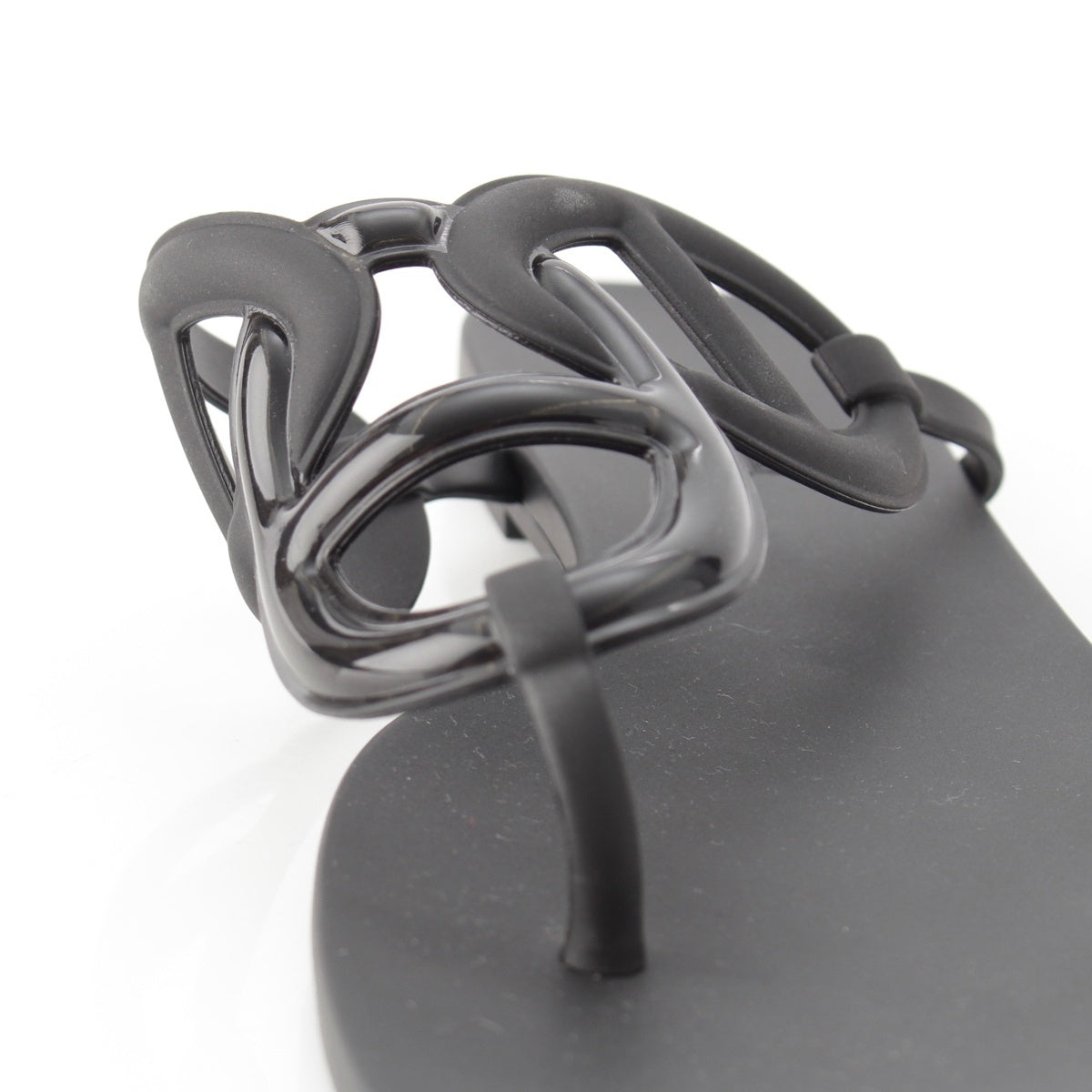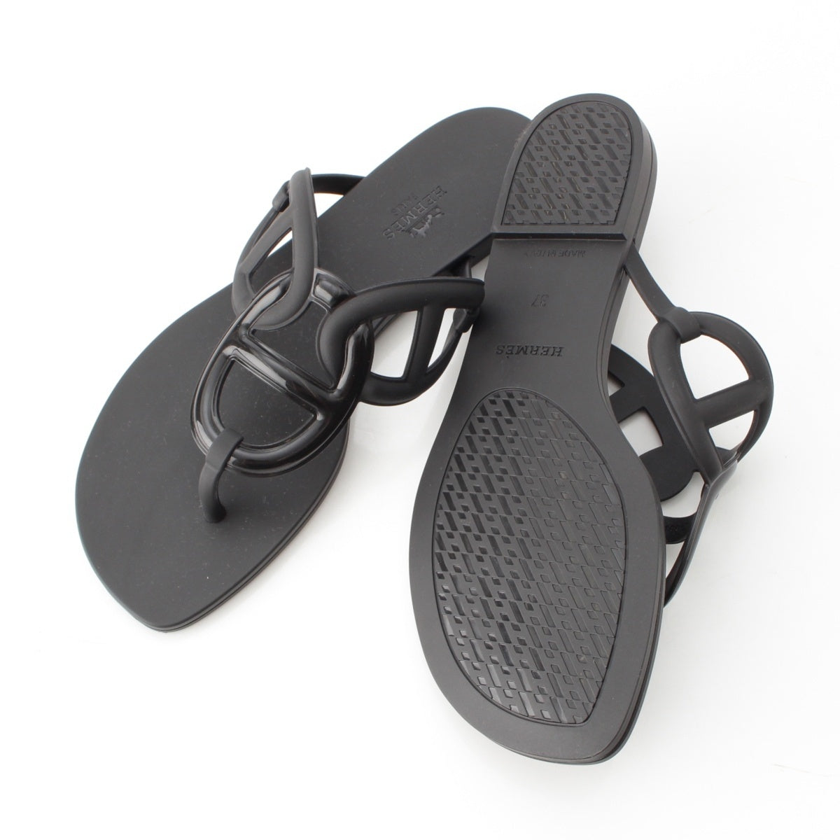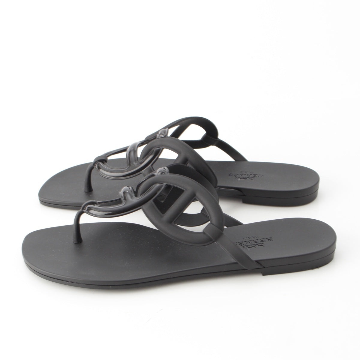 HERMES rubber Egérie Chaine d'Ancre Sandals black 37