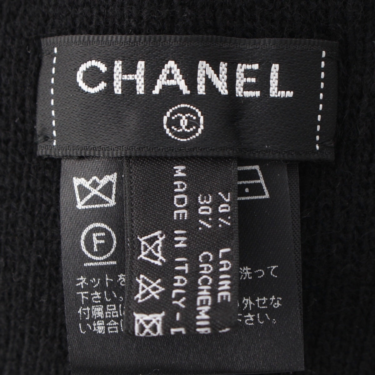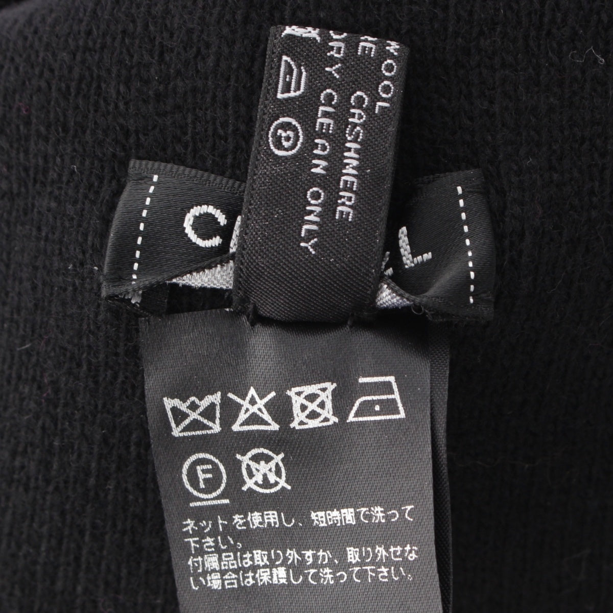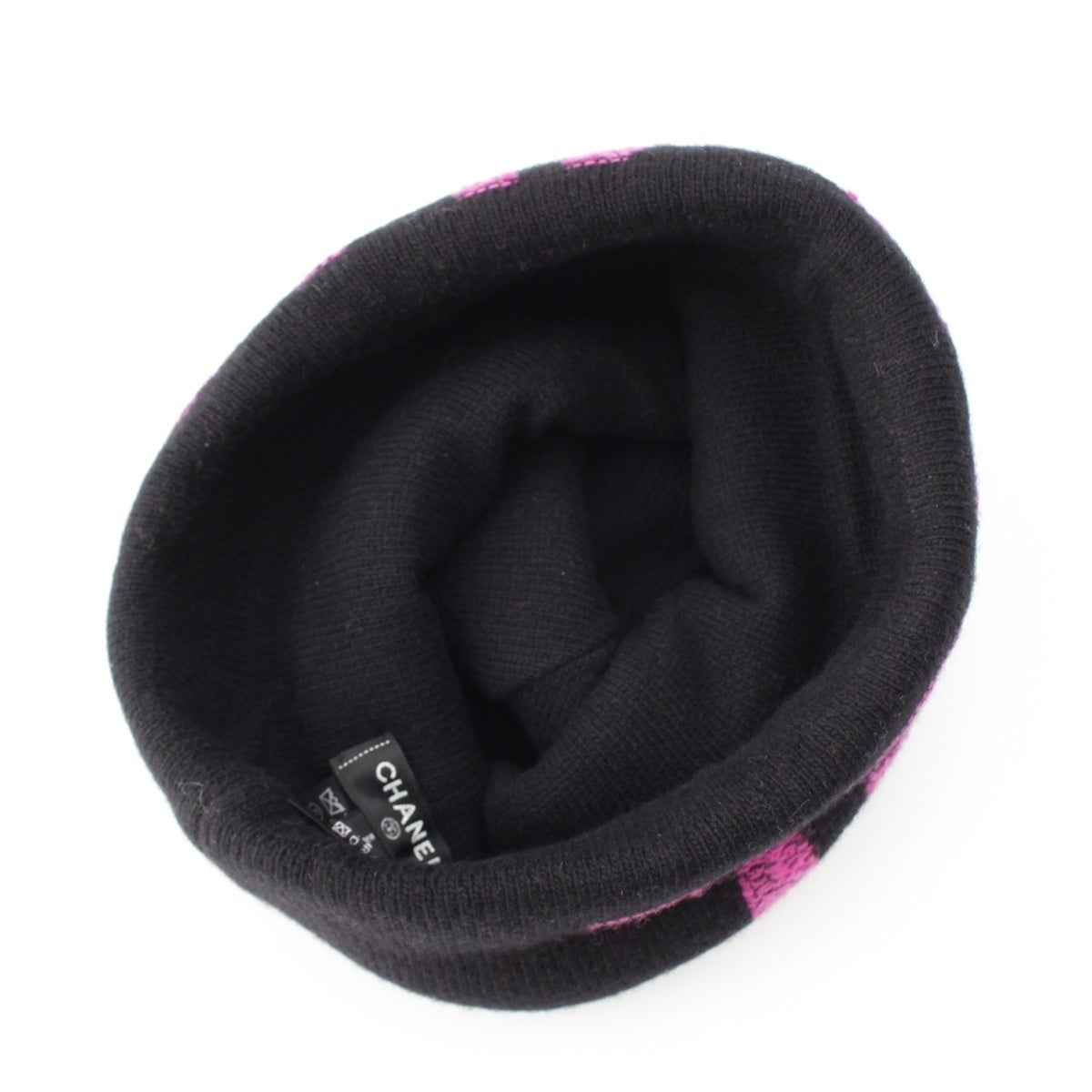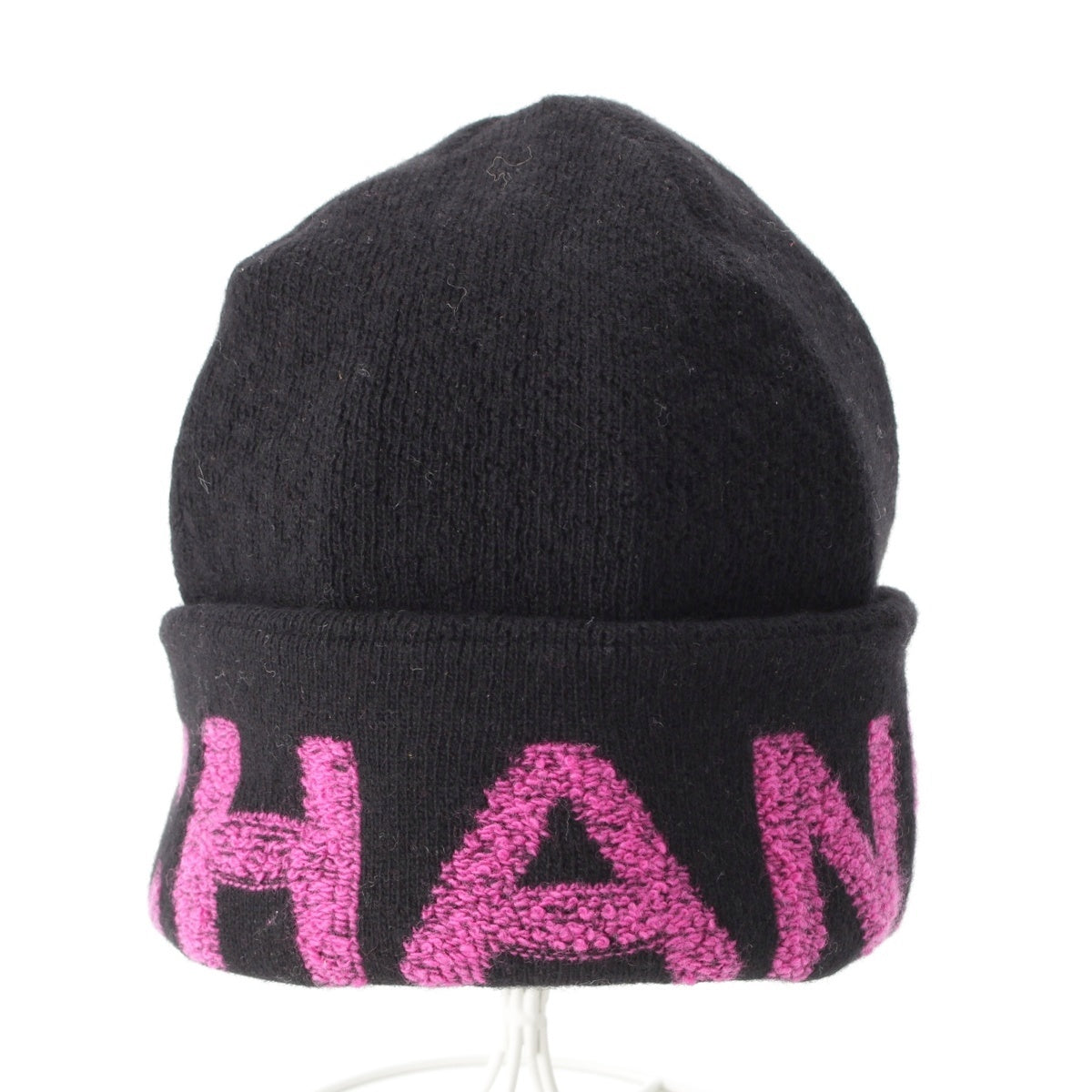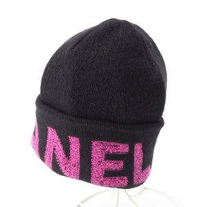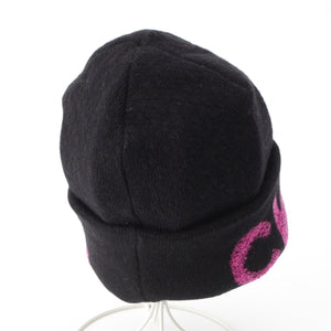 CHANEL cashmere blend logo Knit cap Beanie hat Black pink