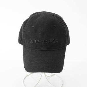 BALENCIAGA cotton Embroidery logo cap hat 590758 black L