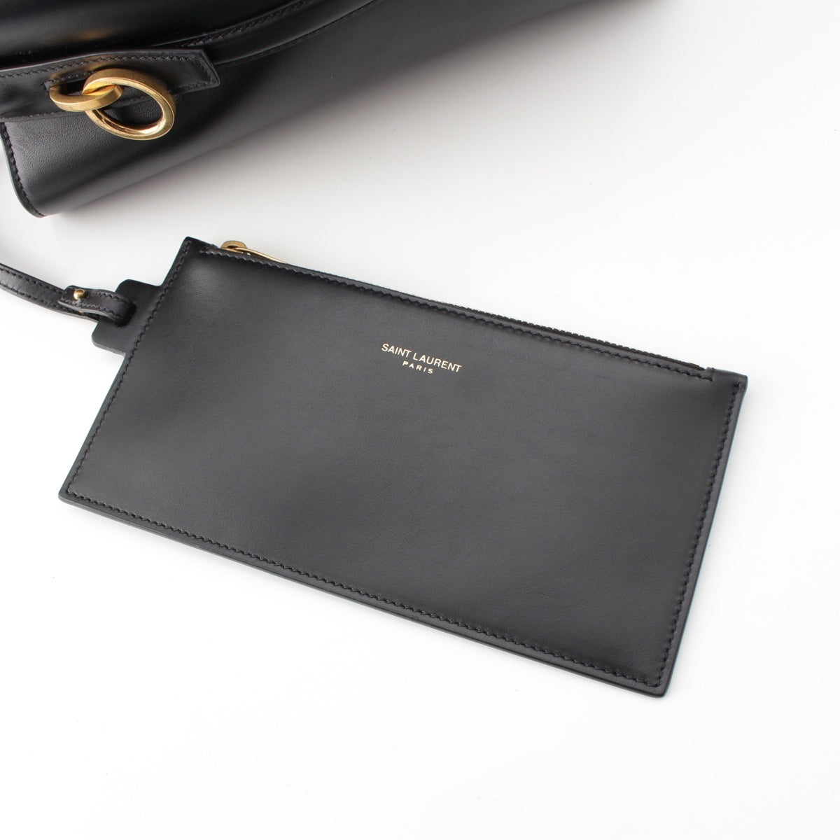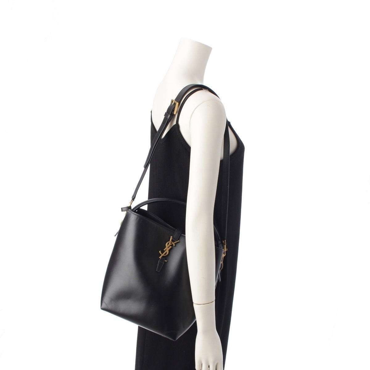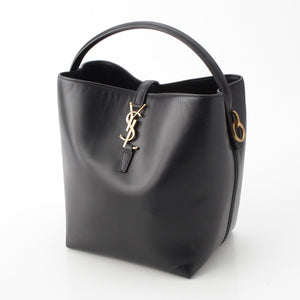SAINT LAURENT LE37 Le Toronto Set leather Bucket 2WAY Shoulder Handbag 742828 Black Gold Metal