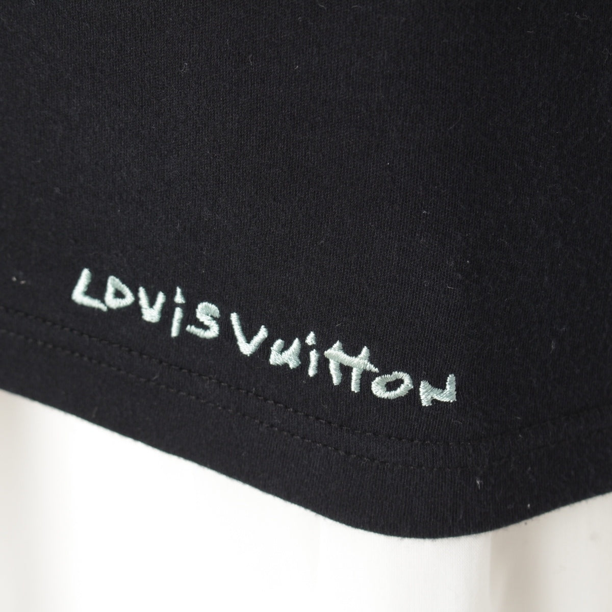 LOUIS VUITTON cotton Graffiti Charm Embroidery Half Zip Short Sleeve Cut tops black M