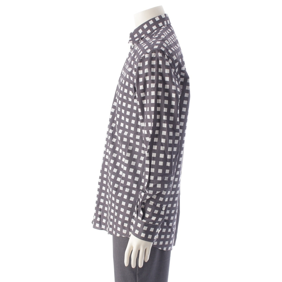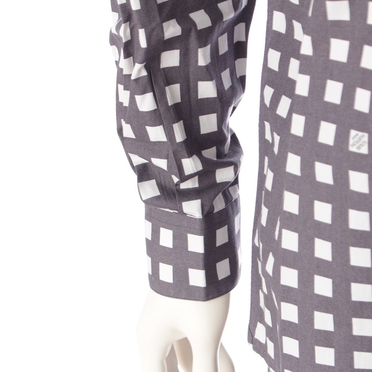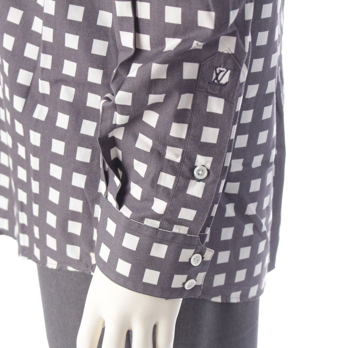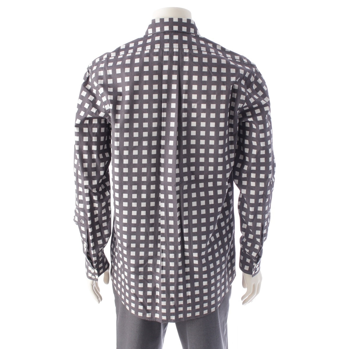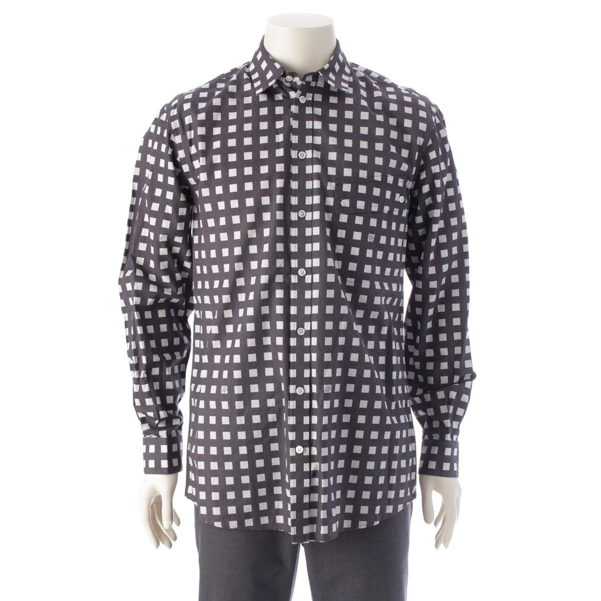 LOUIS VUITTON cotton ロゴ Check Long sleeve shirt White x gray M
