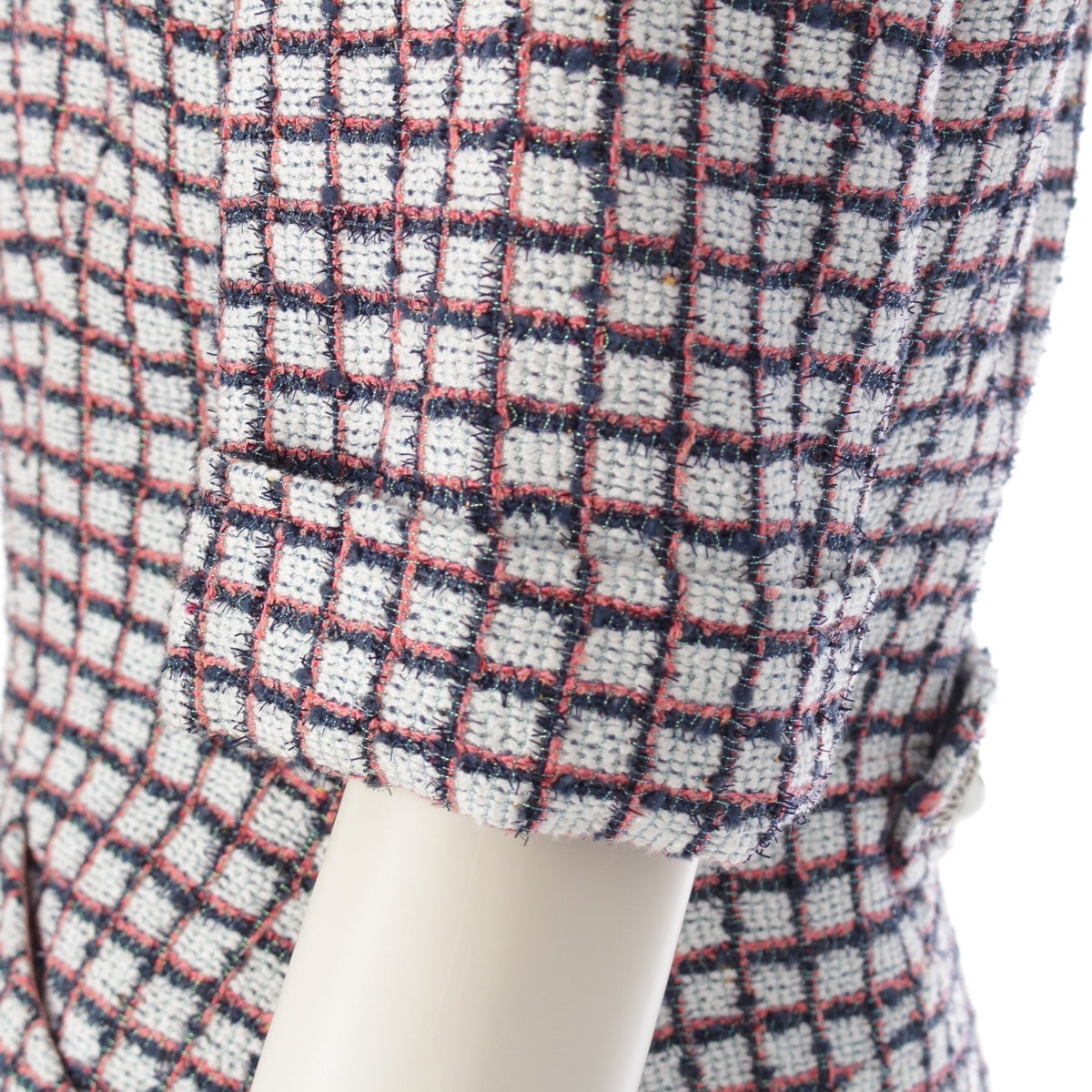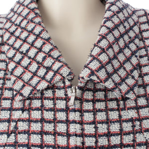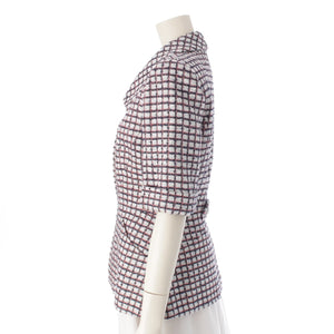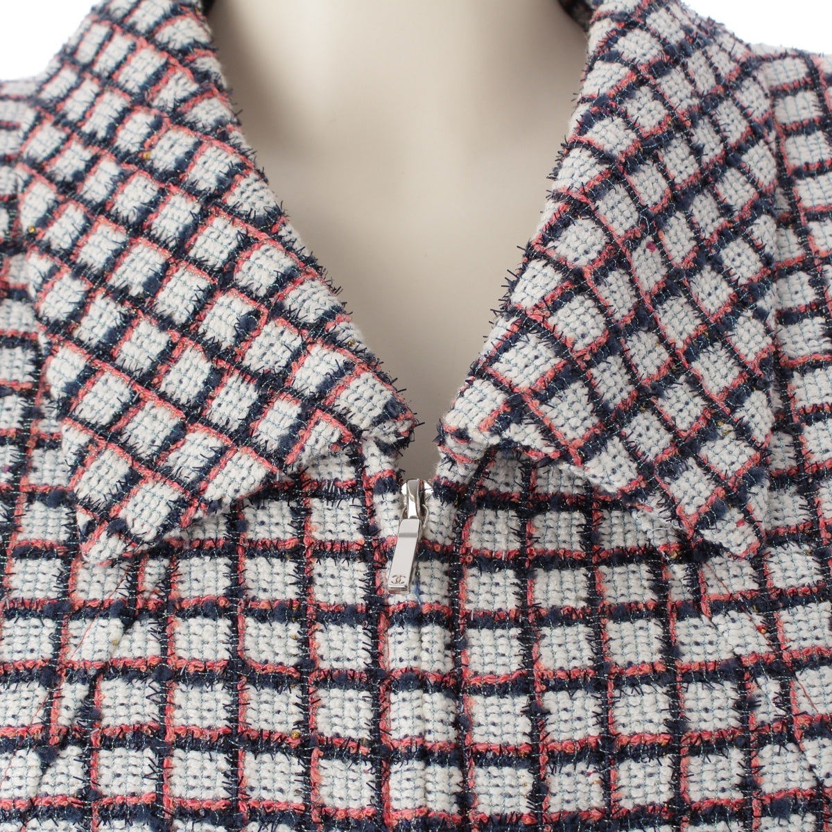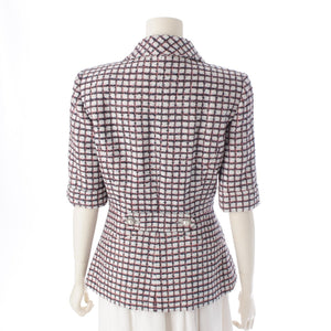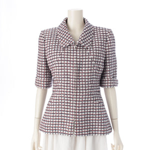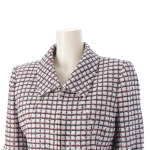 CHANEL Zip-up short sleeve tweed Jacket outer P60834 White Blue Pink 34