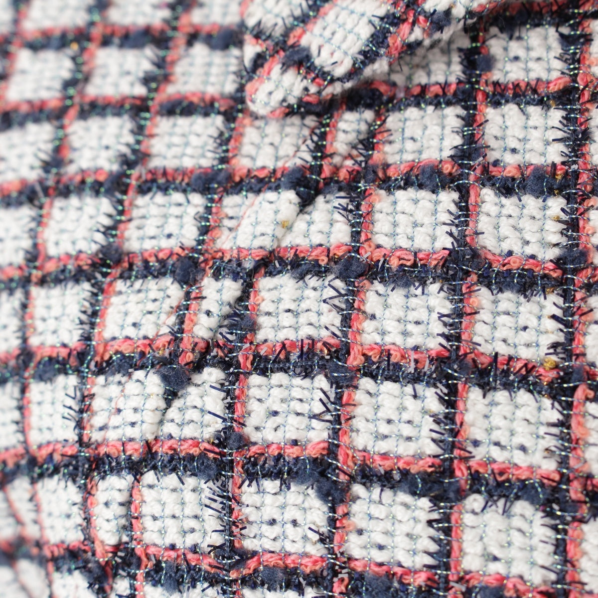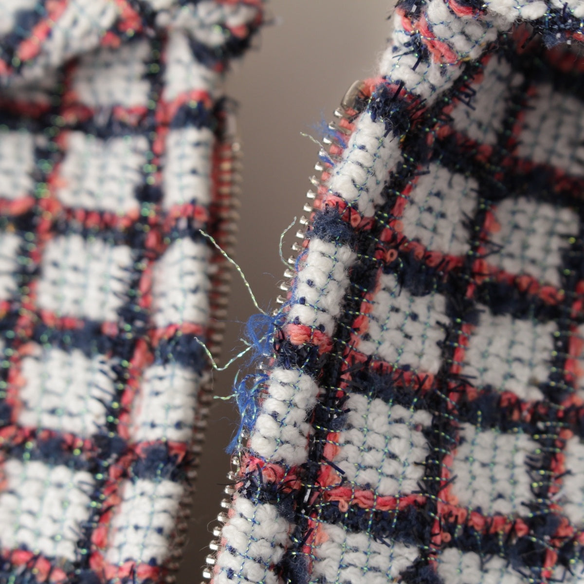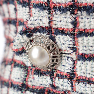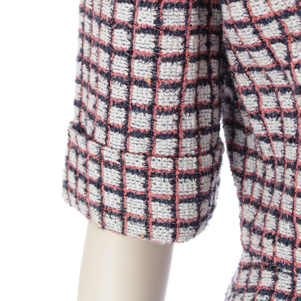 CHANEL Zip-up short sleeve tweed Jacket outer P60834 White Blue Pink 34