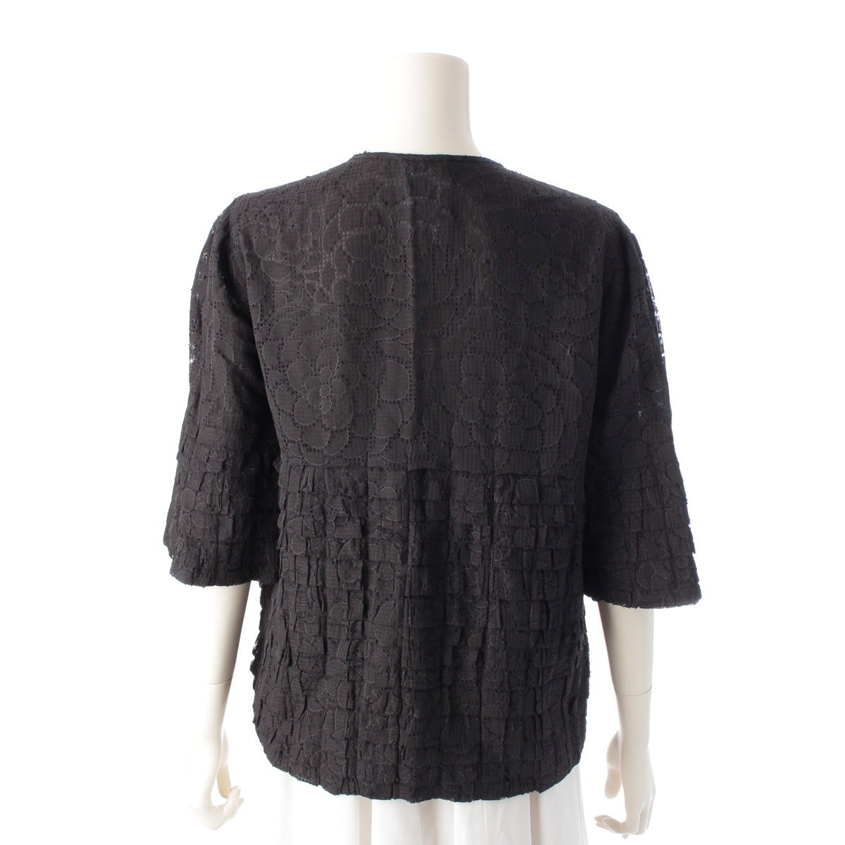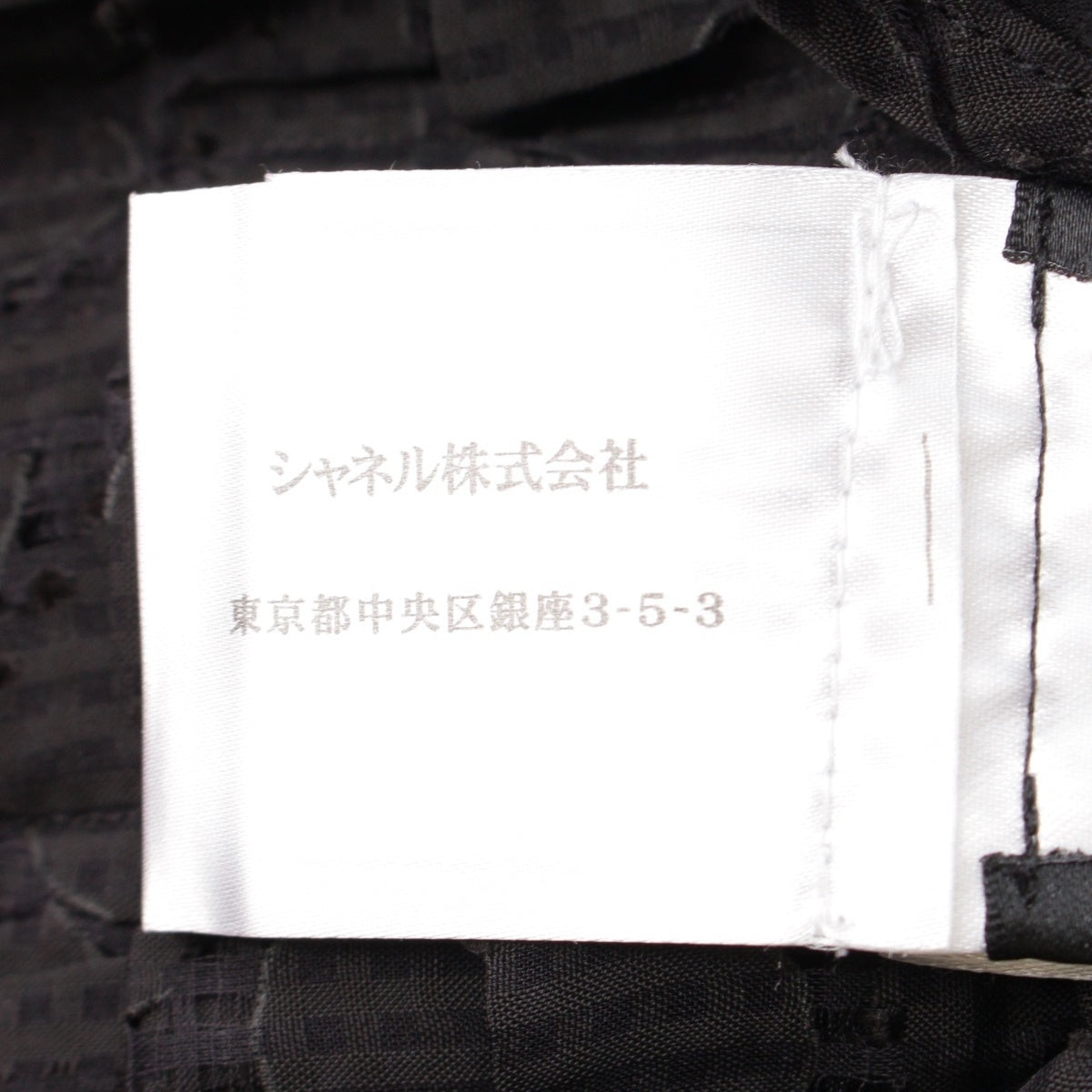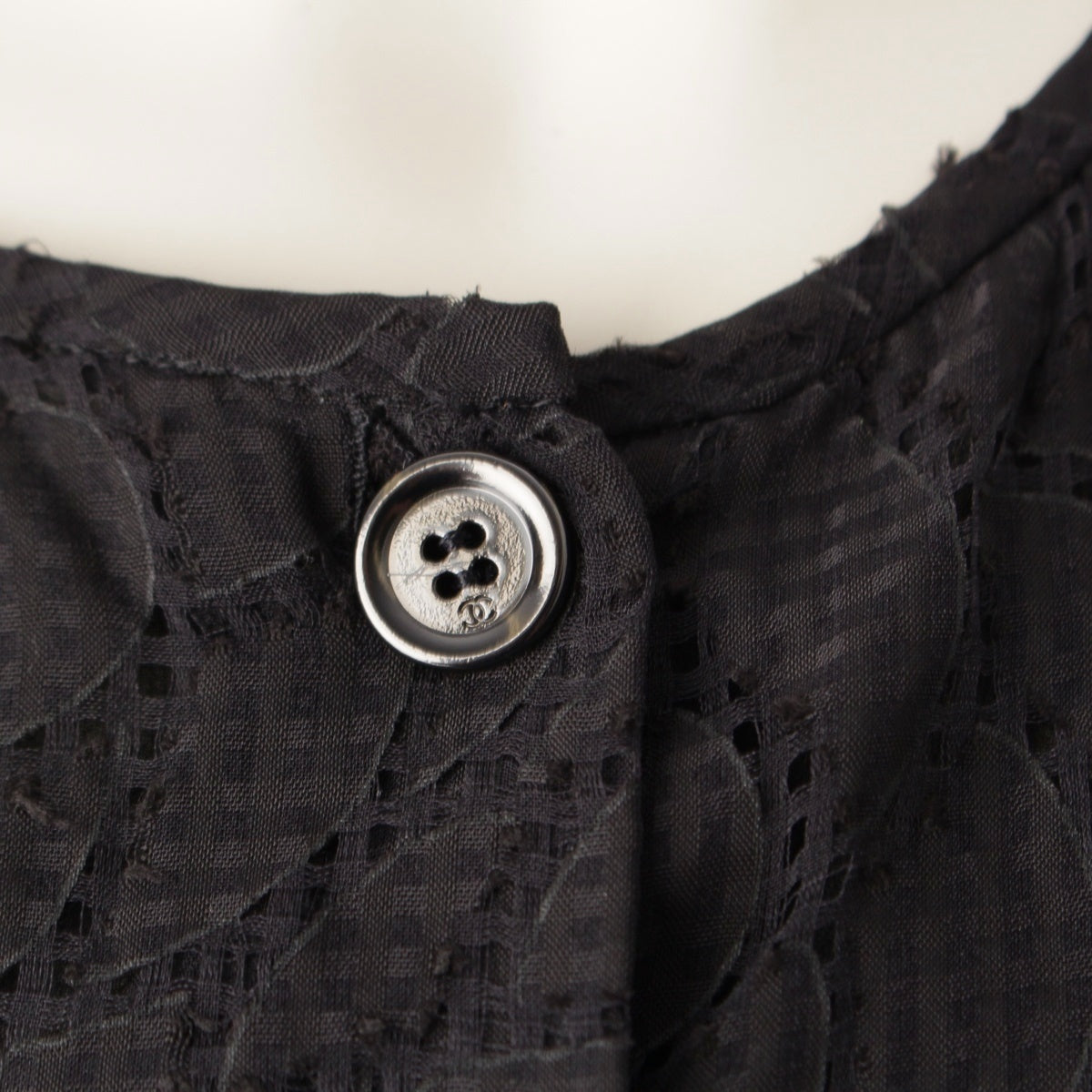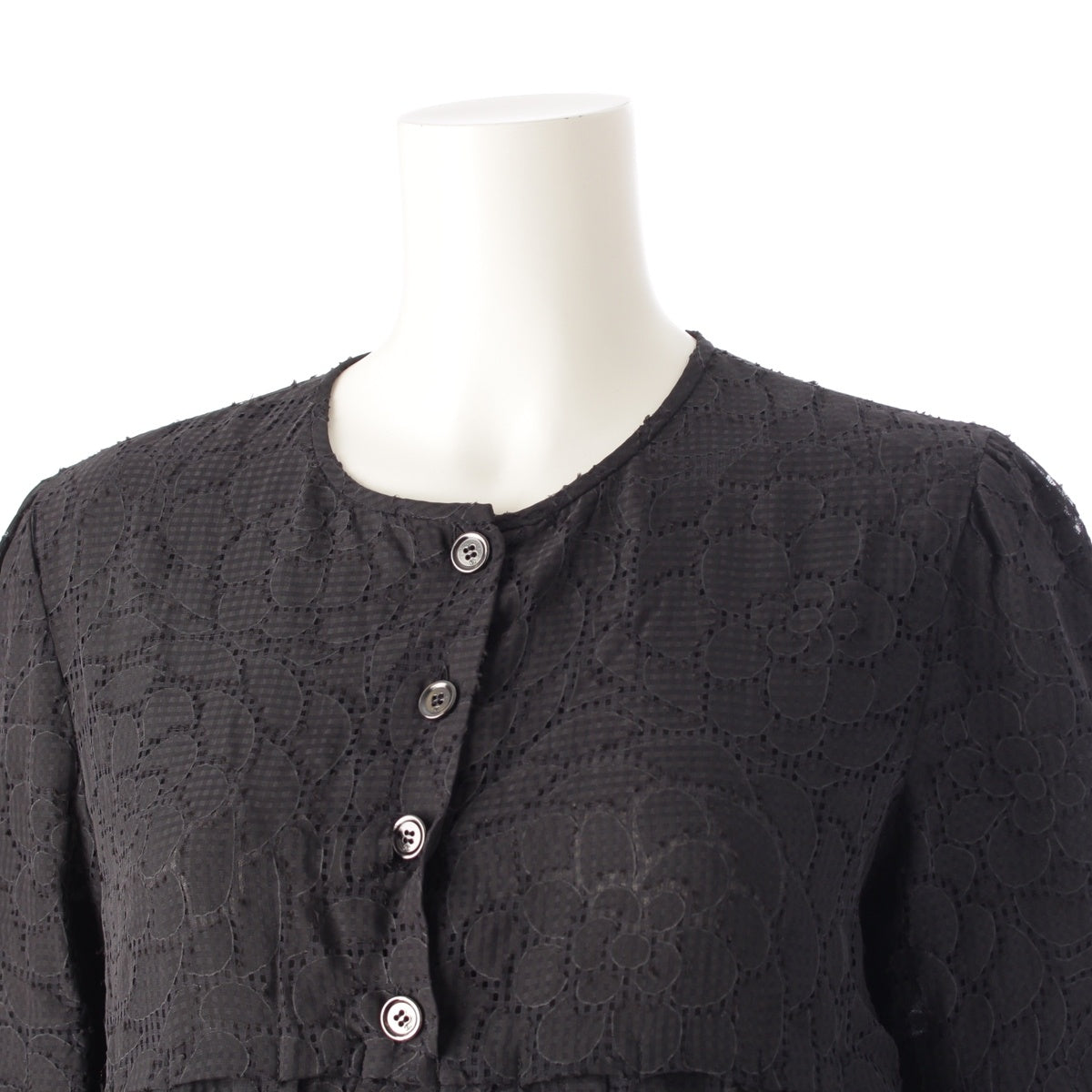 CHANEL Silk Kun Camellia lace no collar Short sleeve shirt tops P44927 black 38