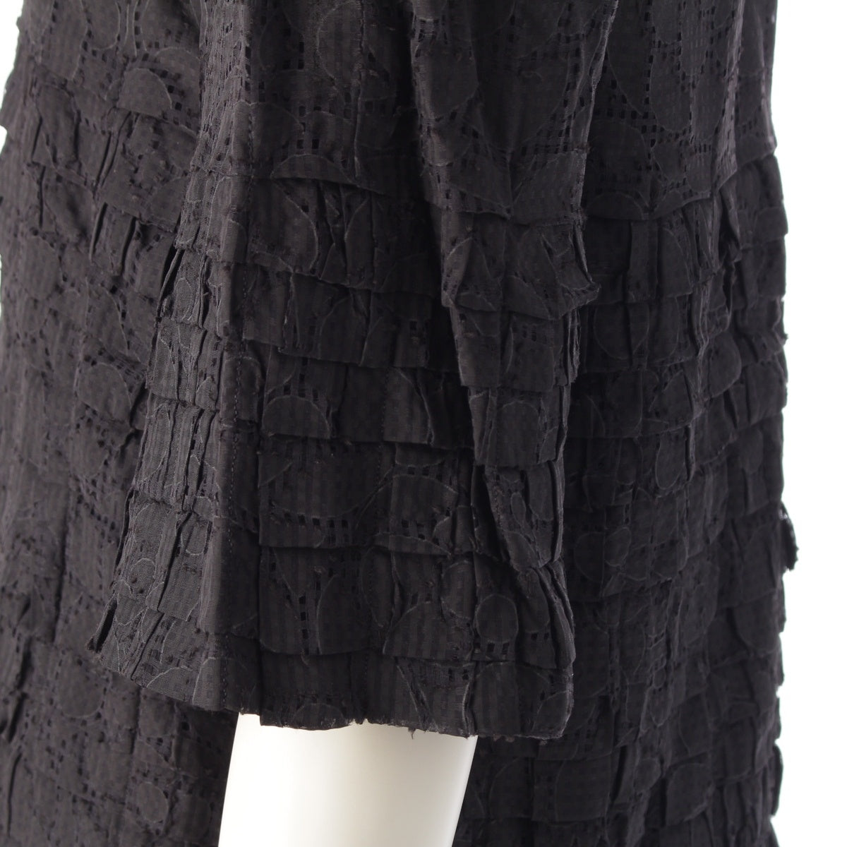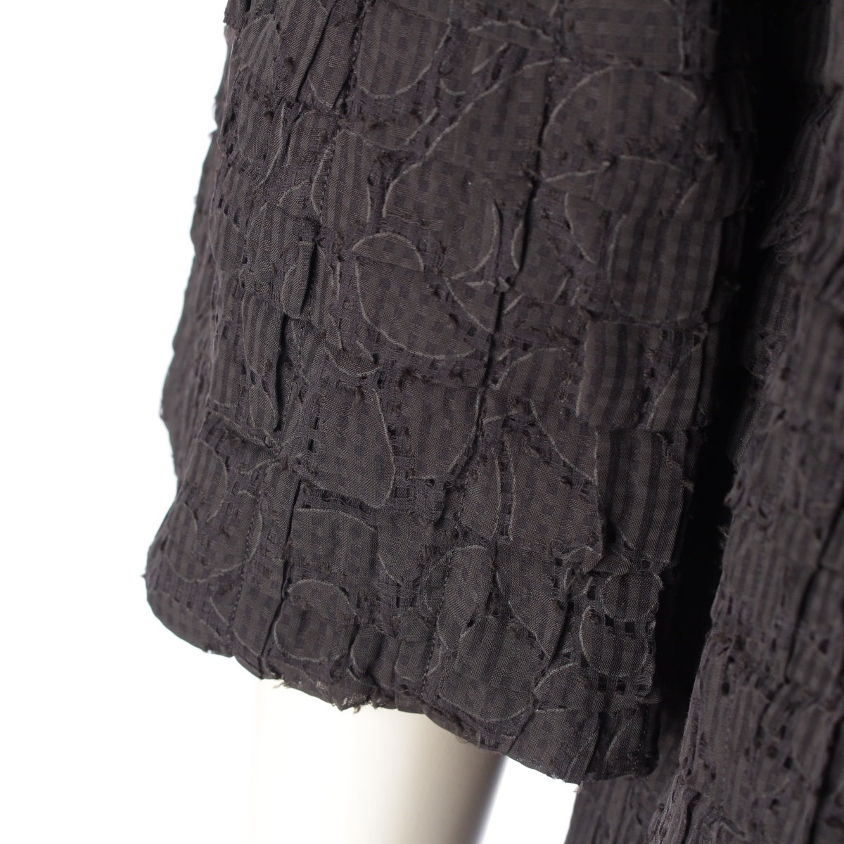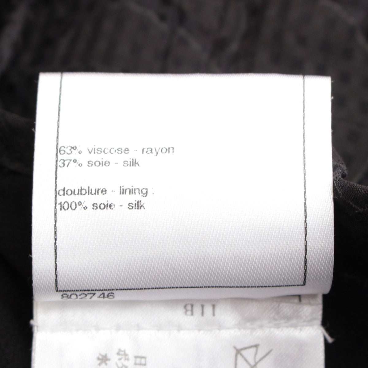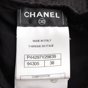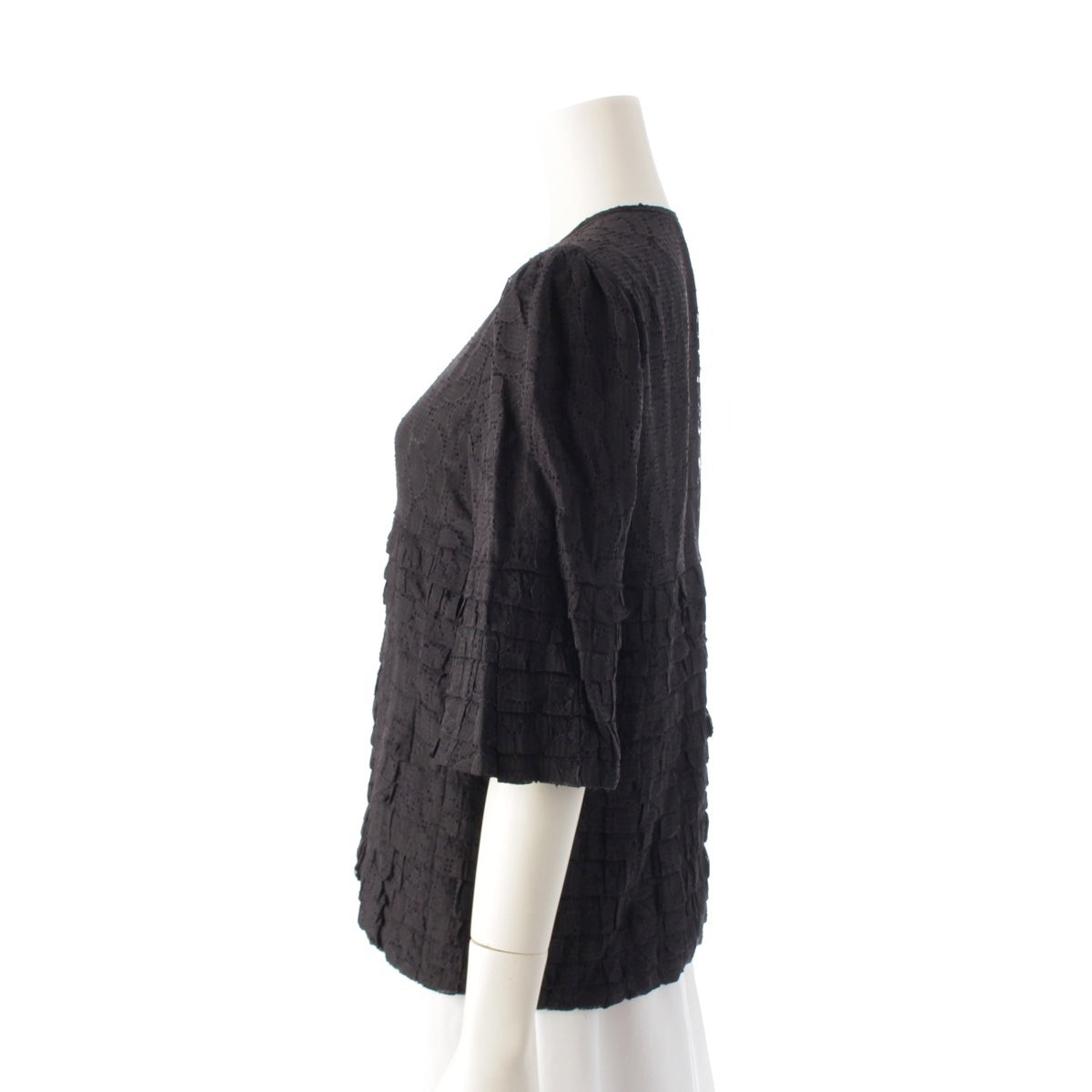 CHANEL Silk Kun Camellia lace no collar Short sleeve shirt tops P44927 black 38