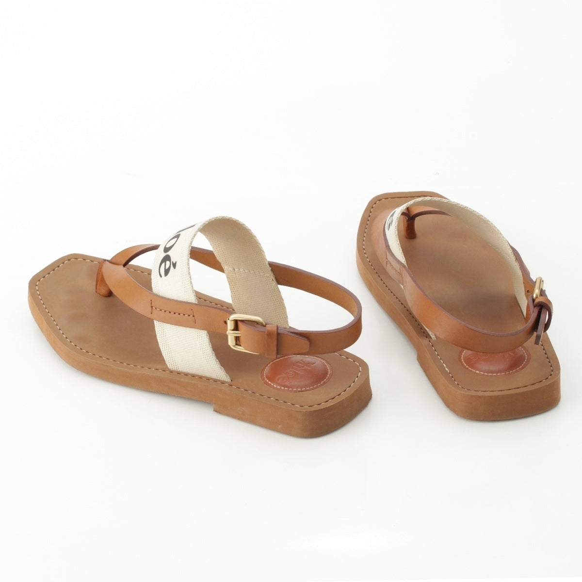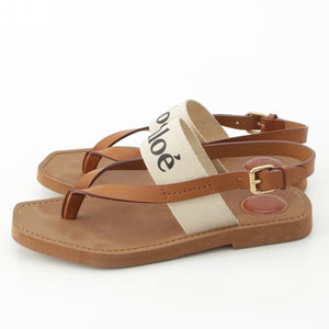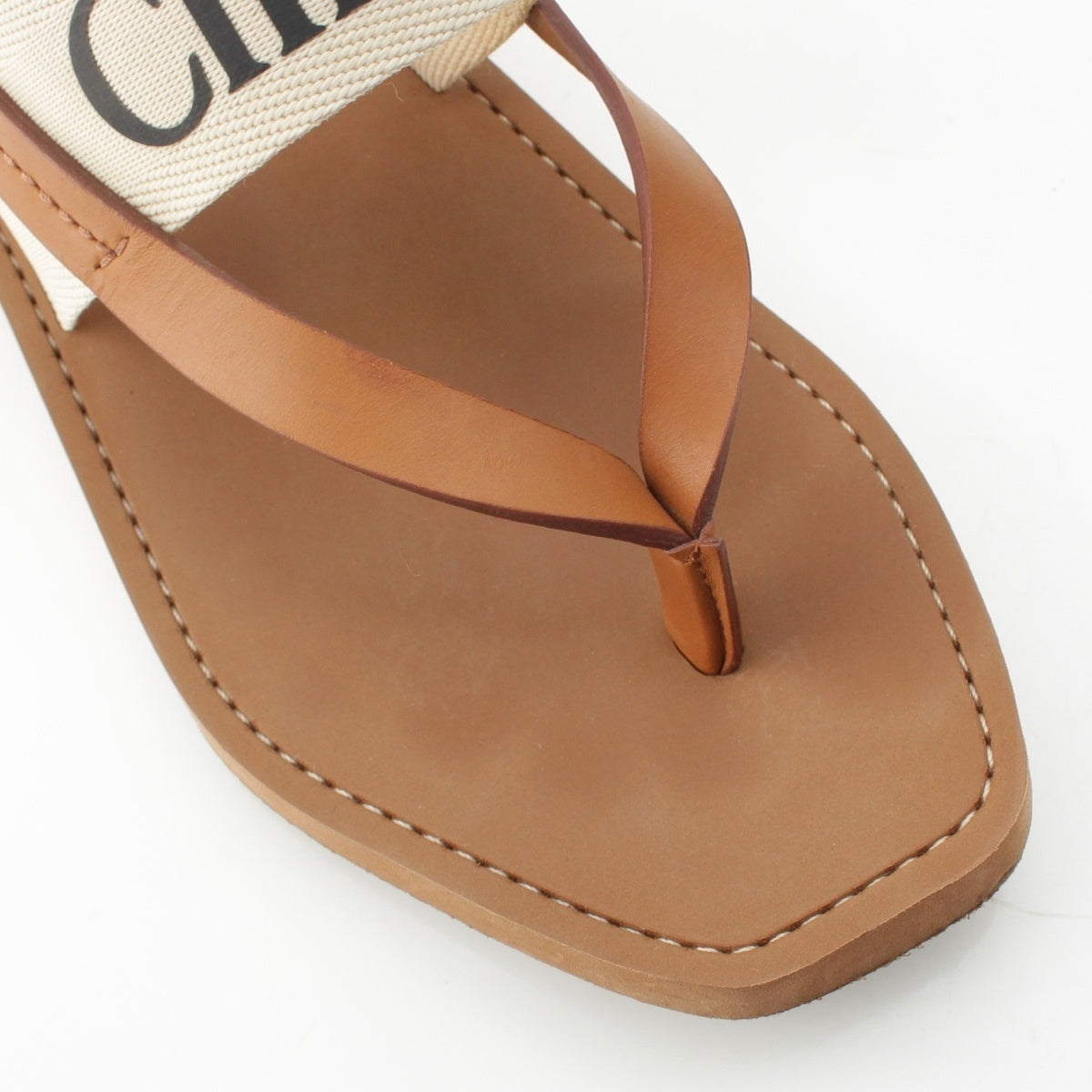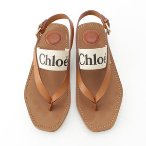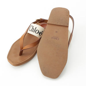 Chloe leather woody logo strap thong flats Sandals Brown 38