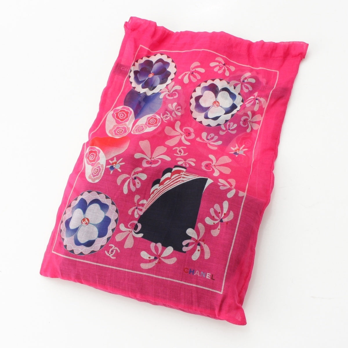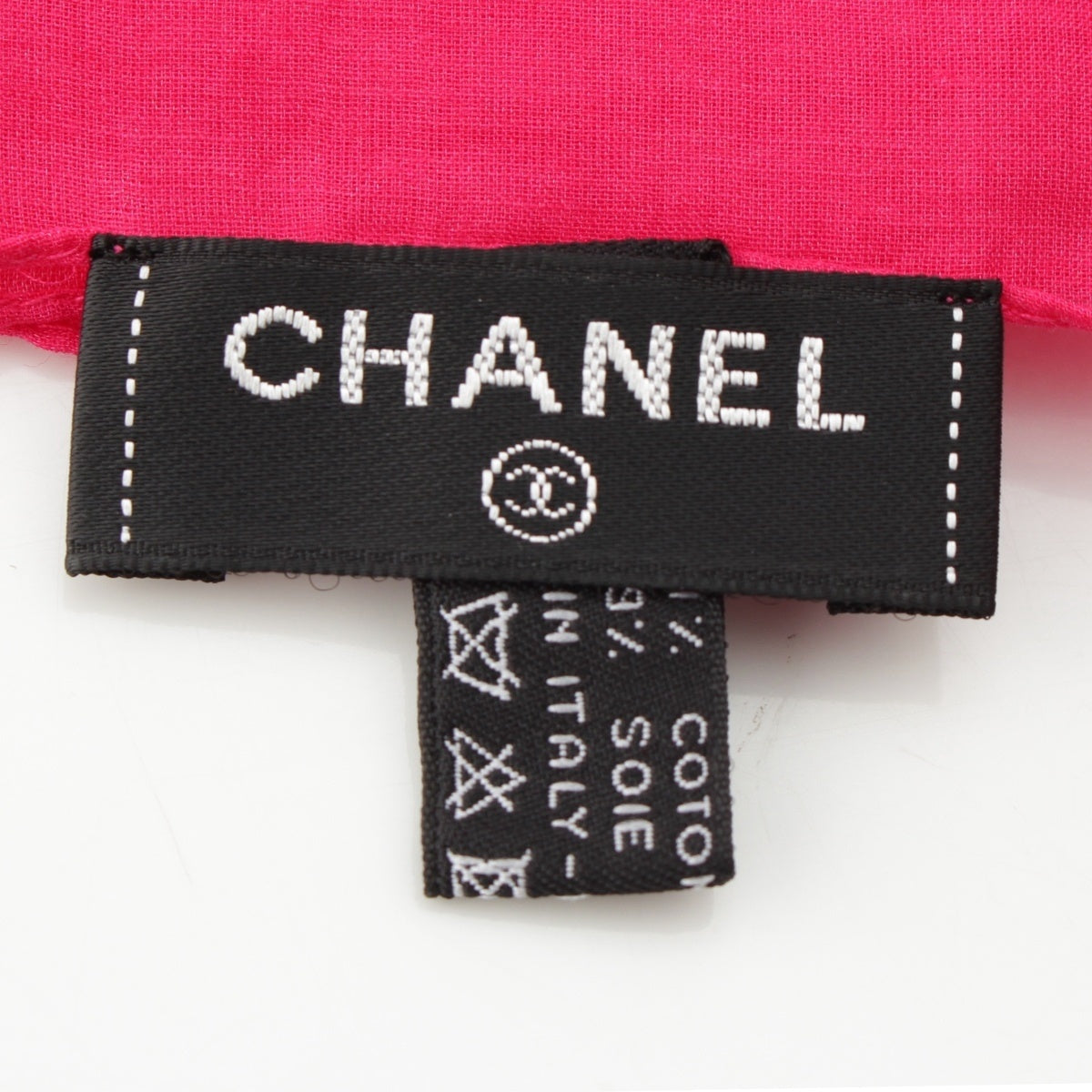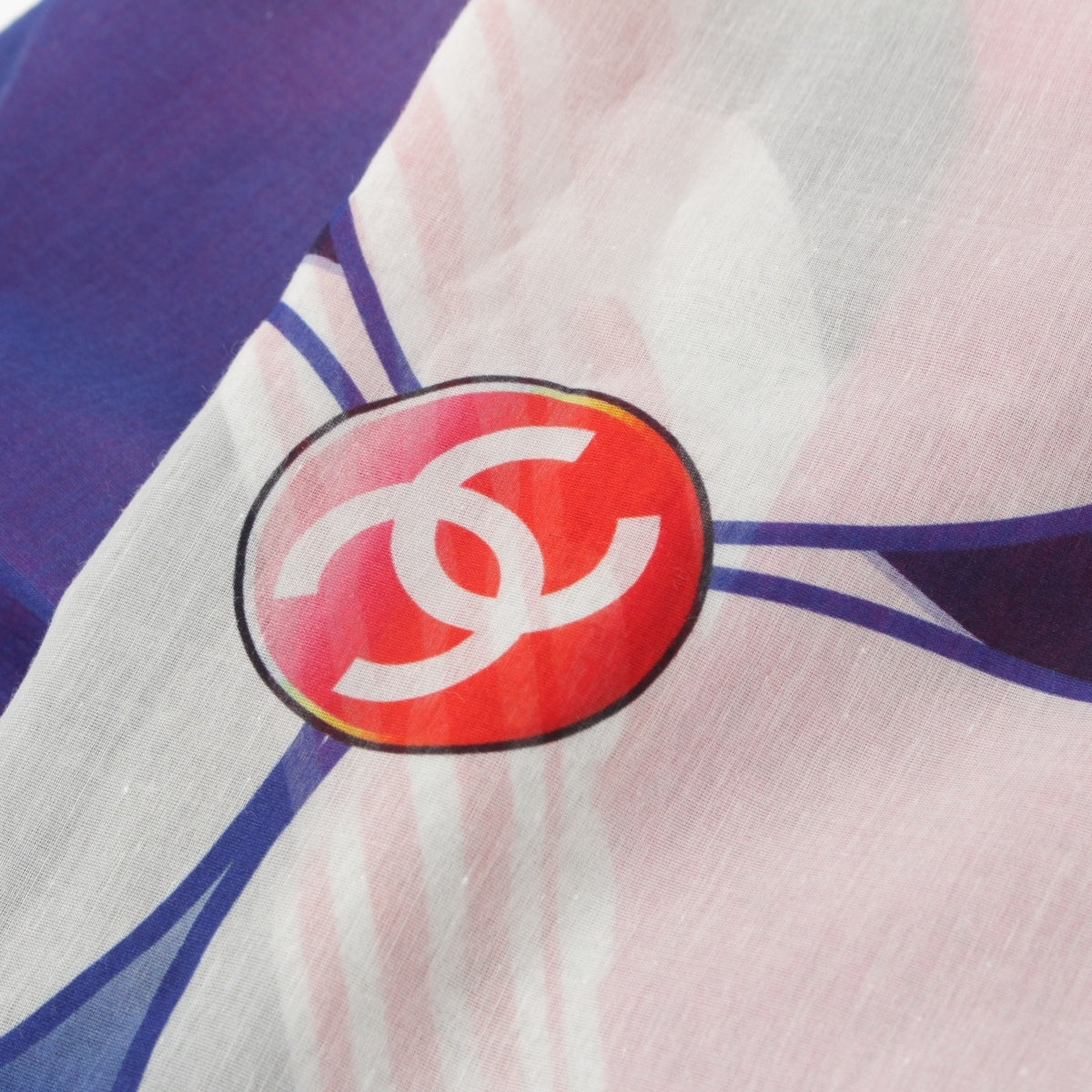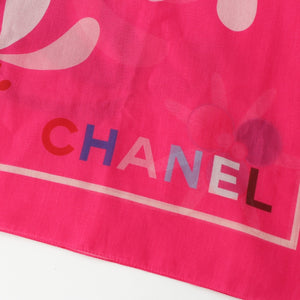 CHANEL Cotton silk Logo COCO Mark Flower shawl Stall pink