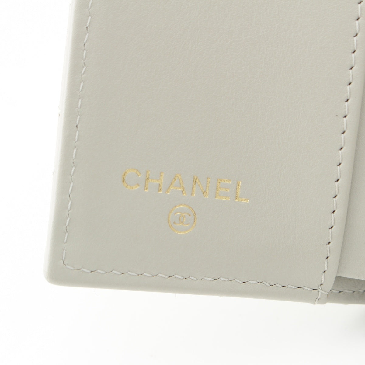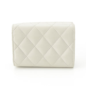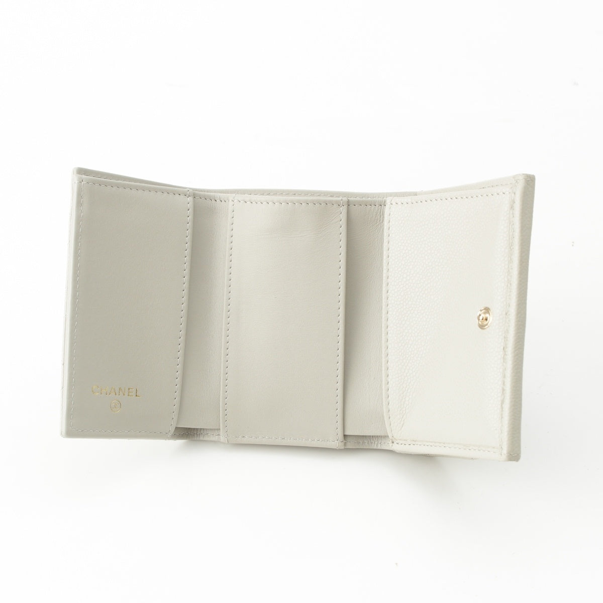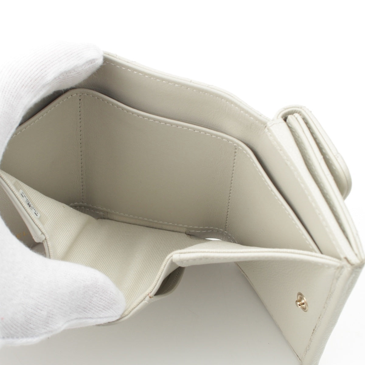 CHANEL Caviar skin COCO Mark Matelasse Random Number Compact Wallet Tri-fold wallet White system