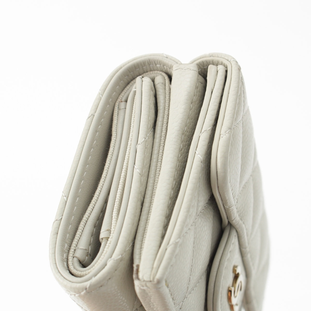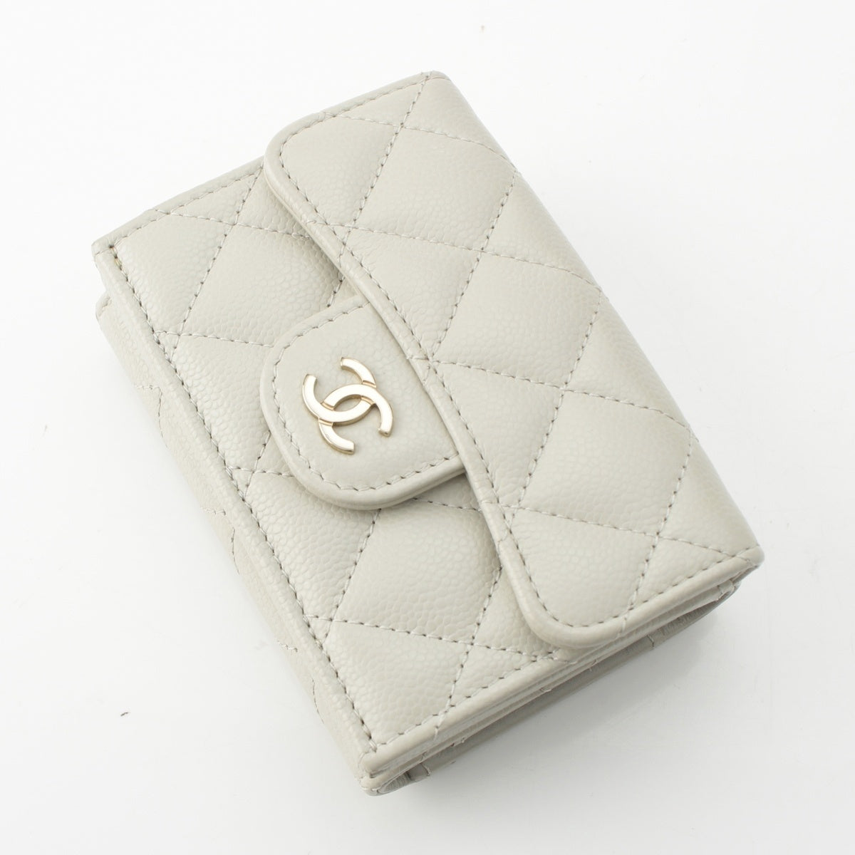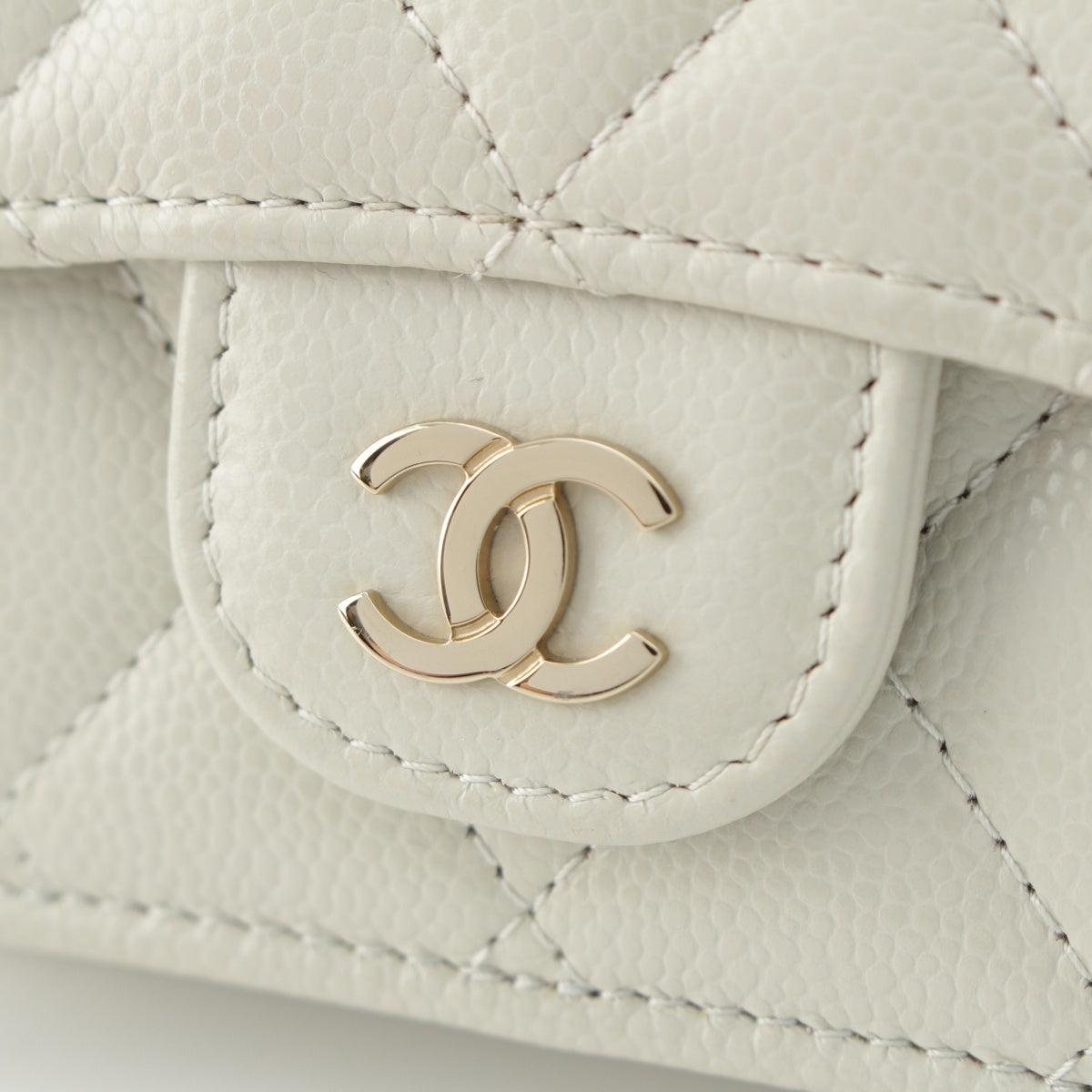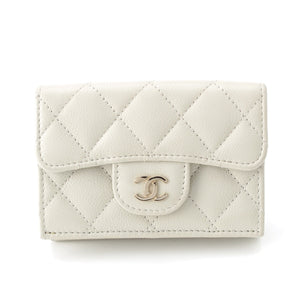 CHANEL Caviar skin COCO Mark Matelasse Random Number Compact Wallet Tri-fold wallet White system