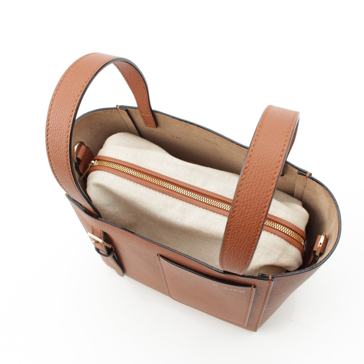 Valextra leather Bucket Micro Pouch 2-way Handbag Gold brown