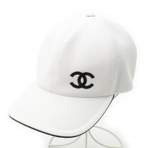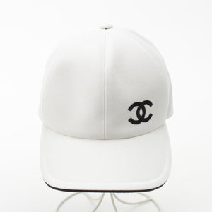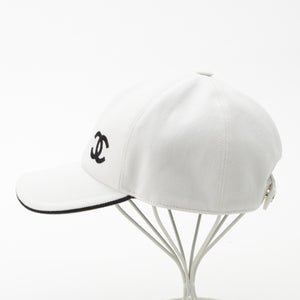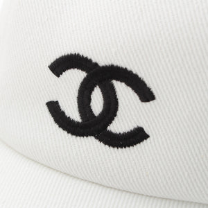 CHANEL cotton CCCOCO Mark Baseball Hat cap White x black