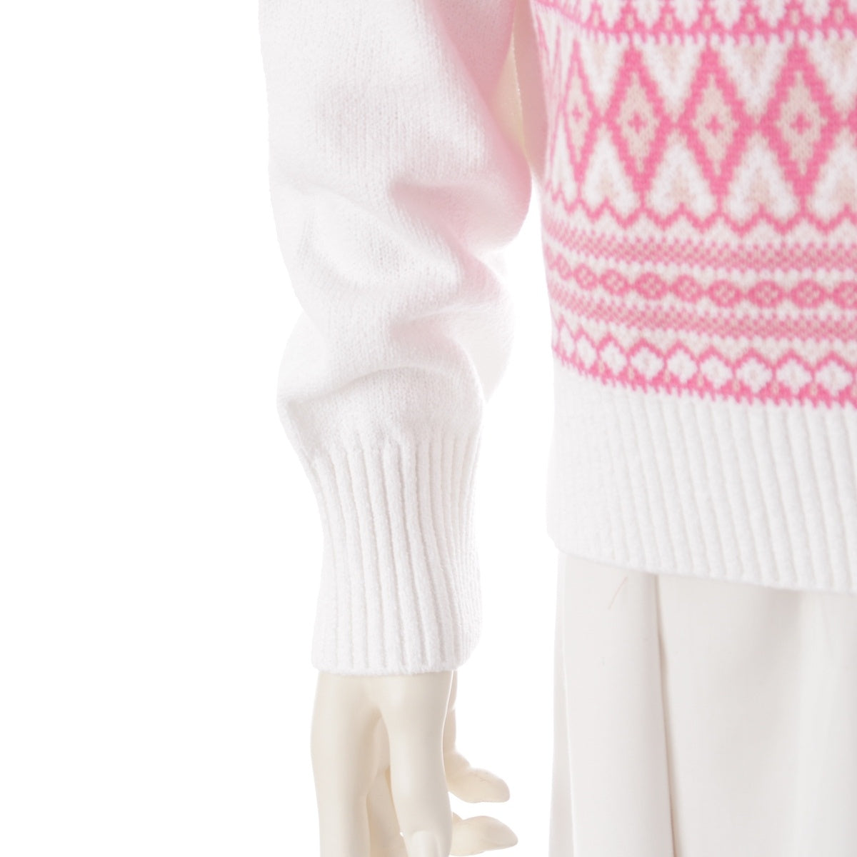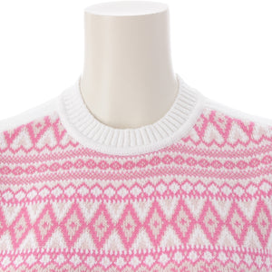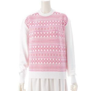 Drawer Cotton Nylon Cashmere 9G Fair Isle knit tops 6513-199-1082 Pink x White ‐