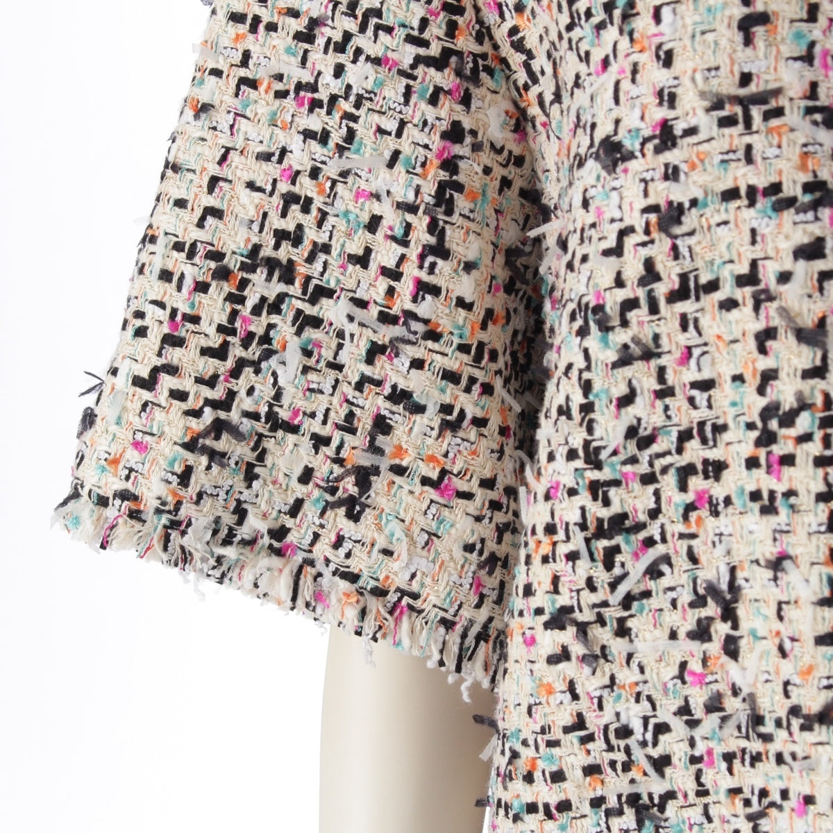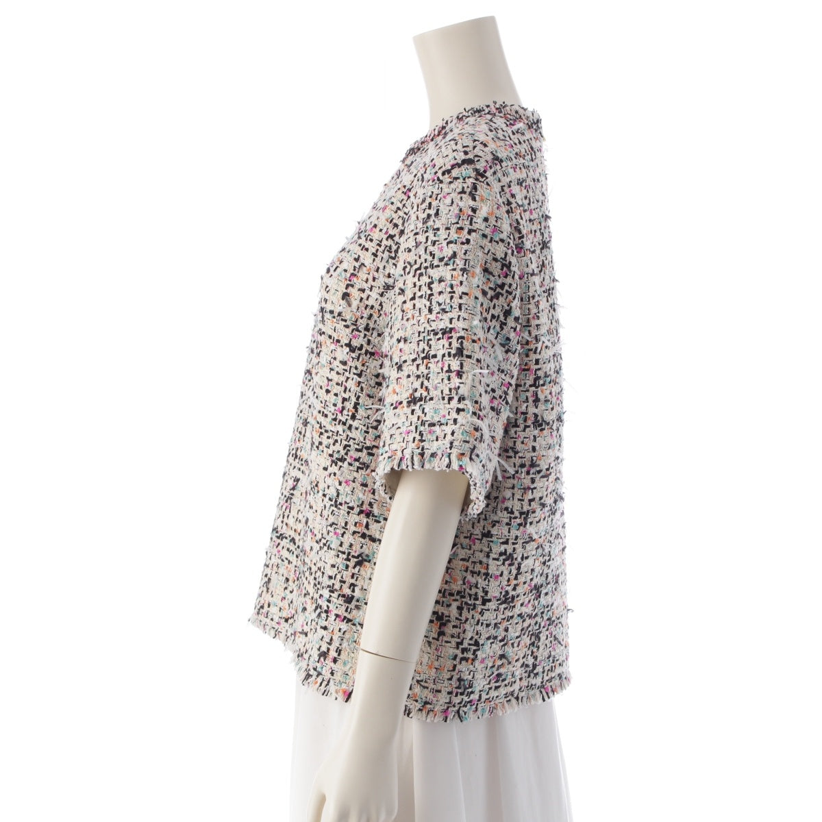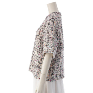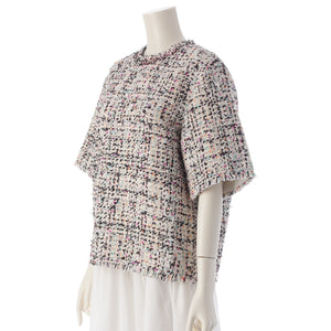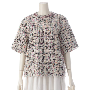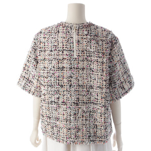 Drawer Cotton nylon Back zip short sleeve mixed tweed blouse tops 6521-299-1183 multicolor 36