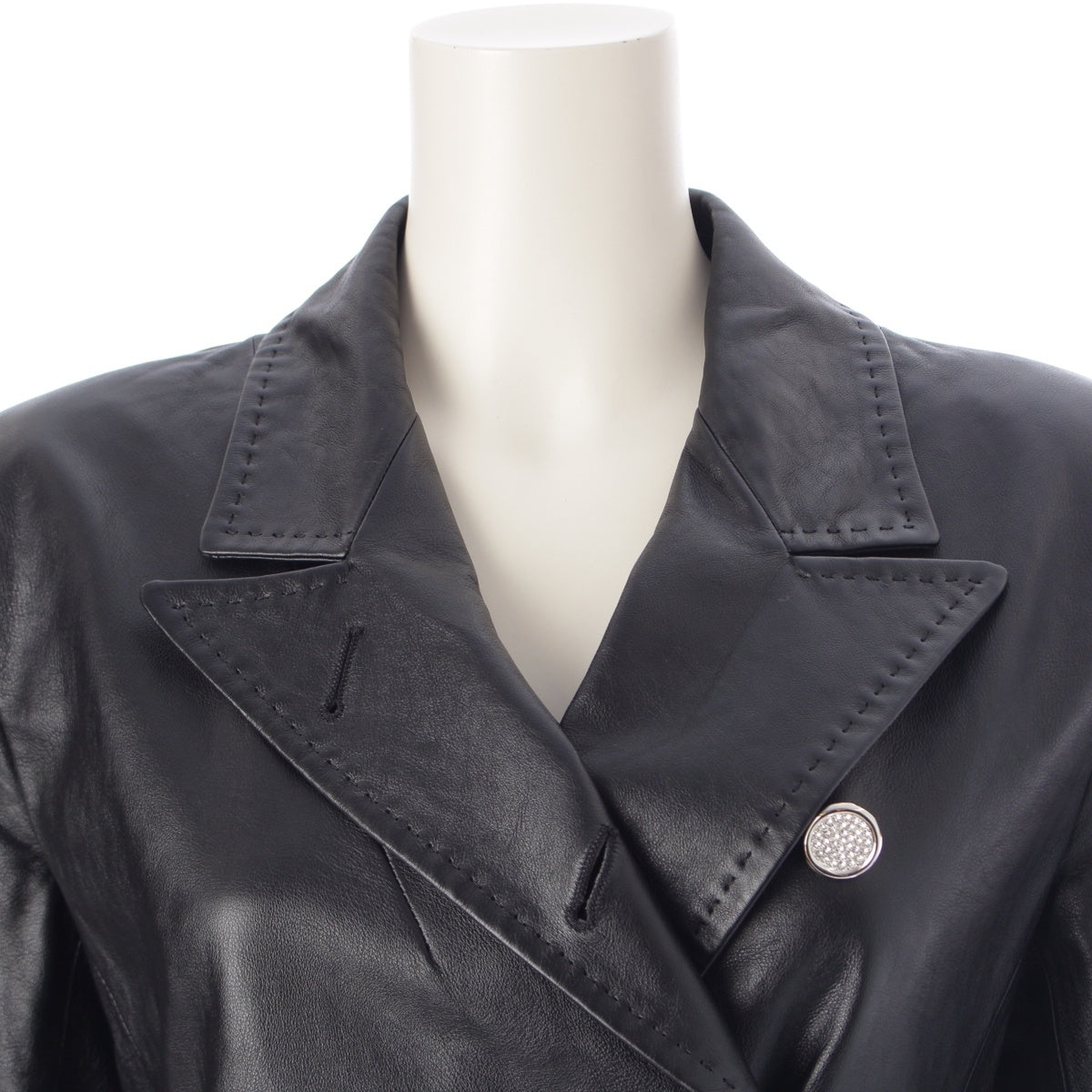 LOUIS VUITTON leather long coat outer NJ4 FMLC97 black 34