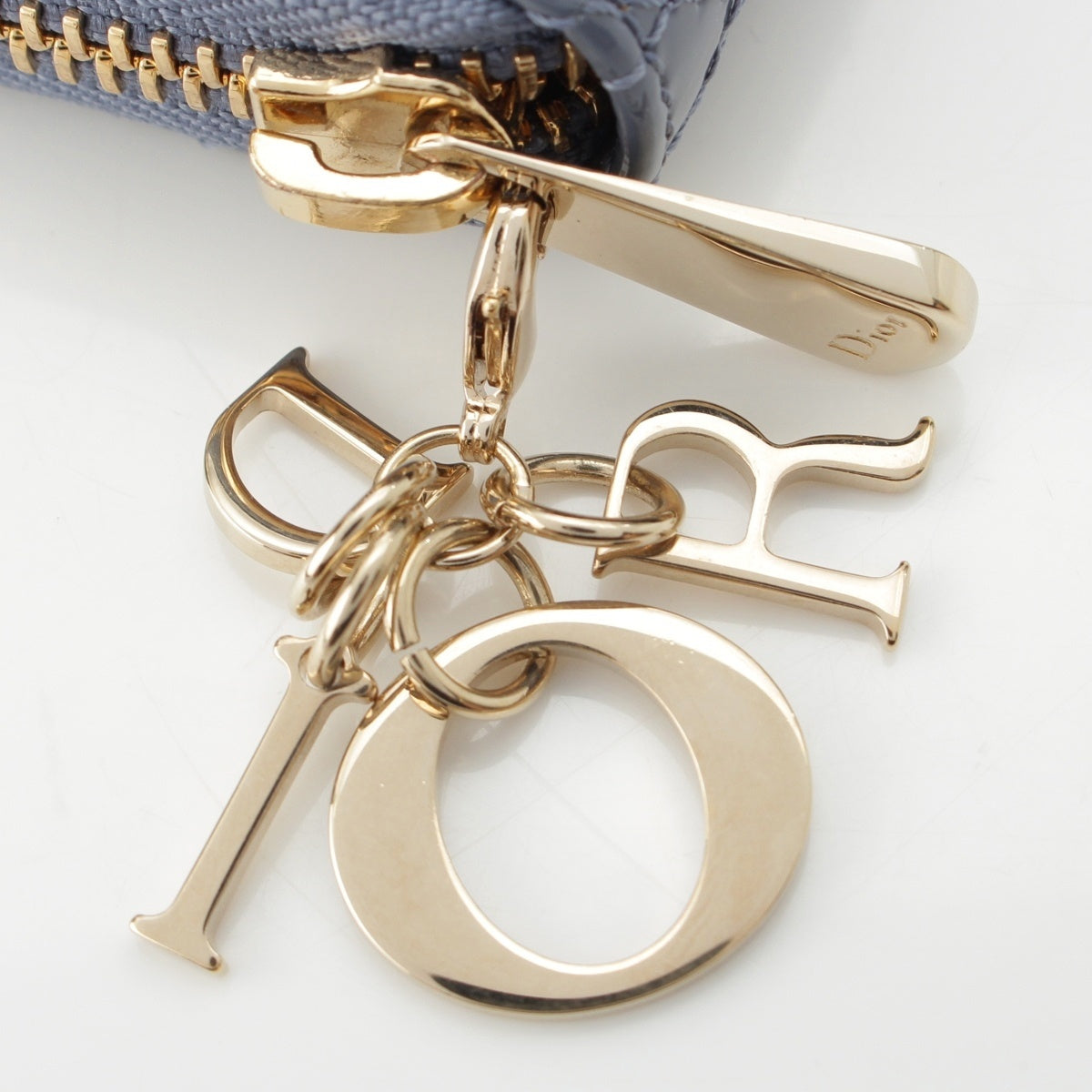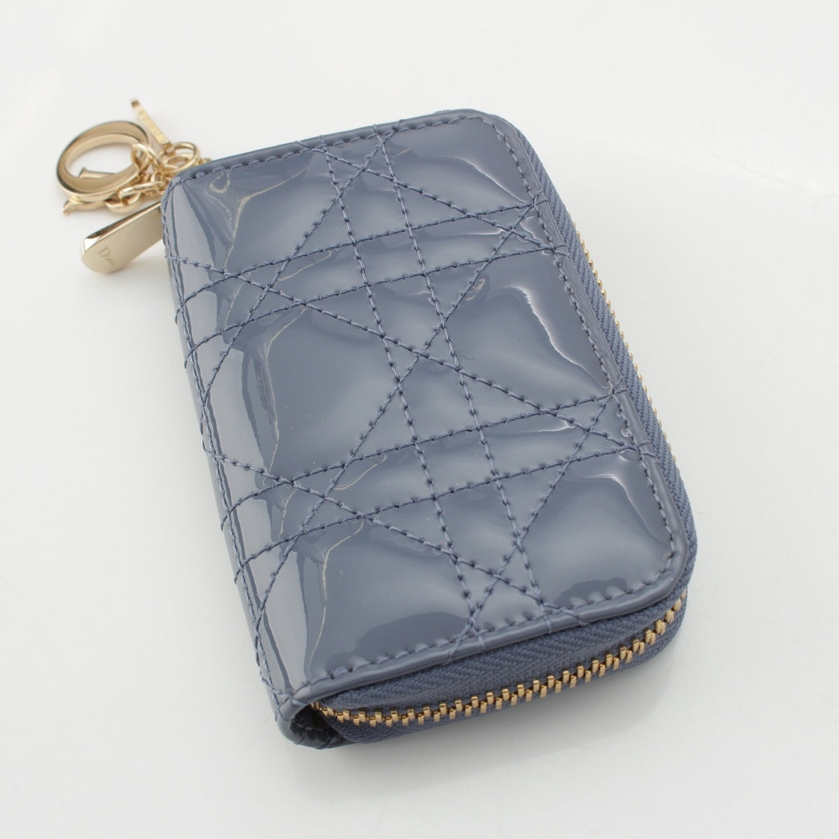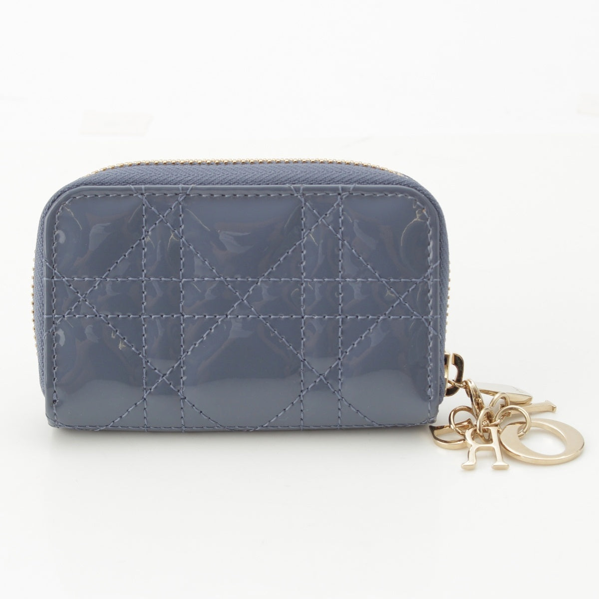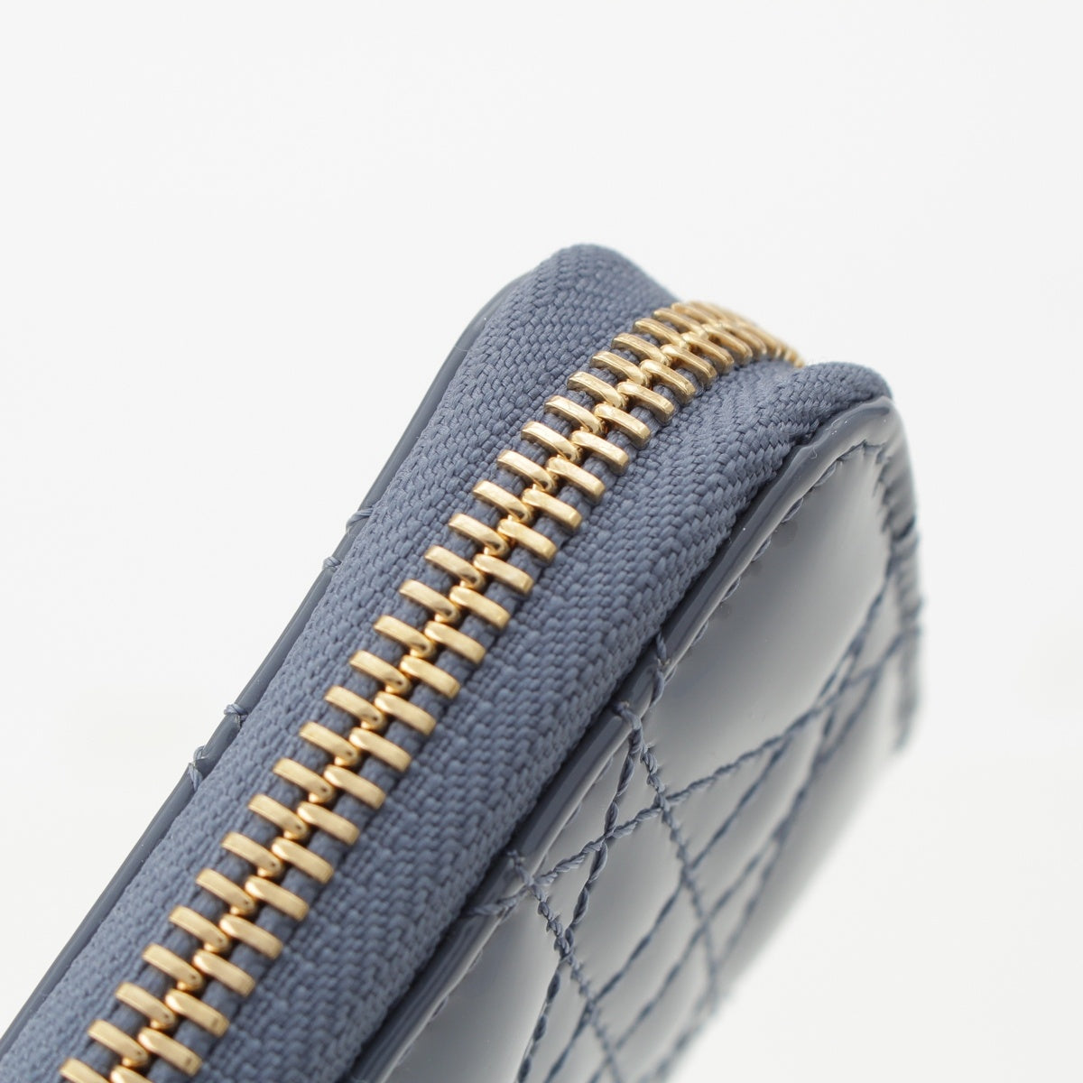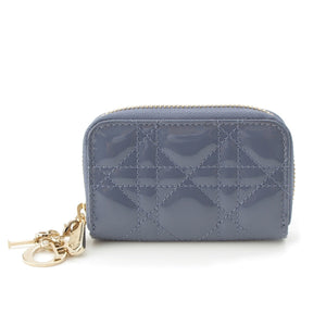 Dior Lady Dior Canage Patent leather Coin case Coin Pocket Compact Wallet blue