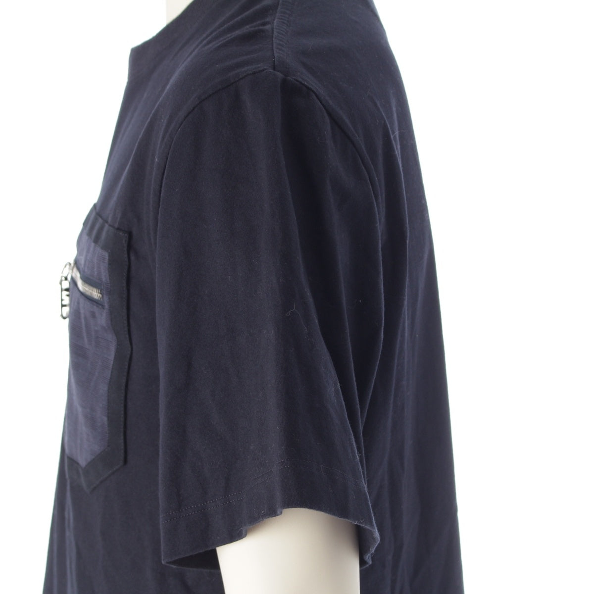 FENDI cotton FF Jacquard Zucca Pocket Zipper Zipper Short sleeve T-shirt tops FY1257 Navy S