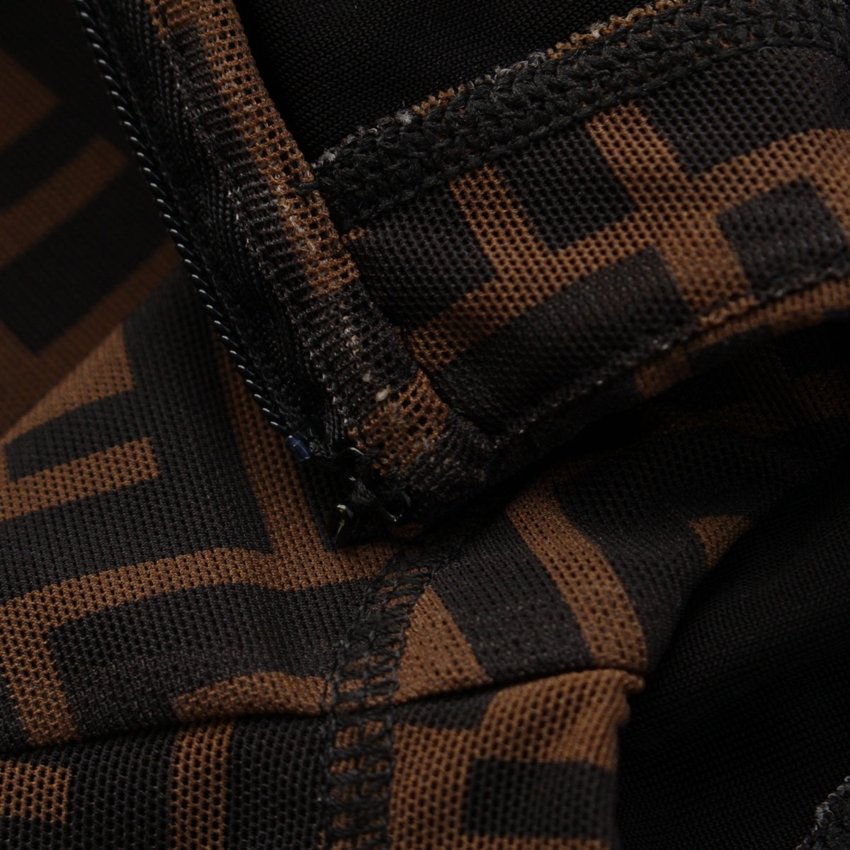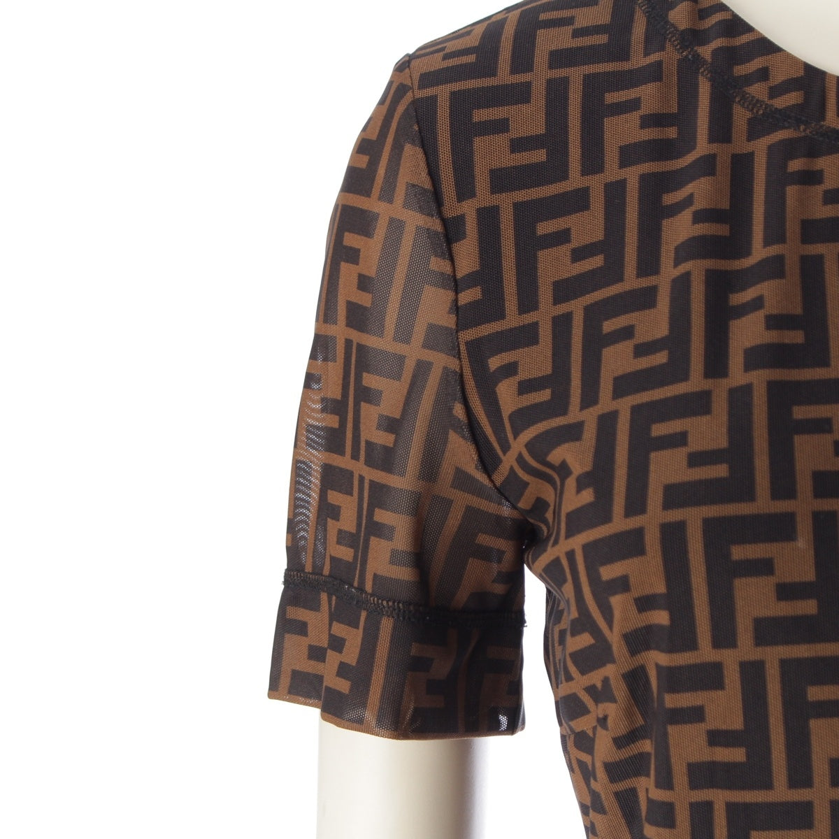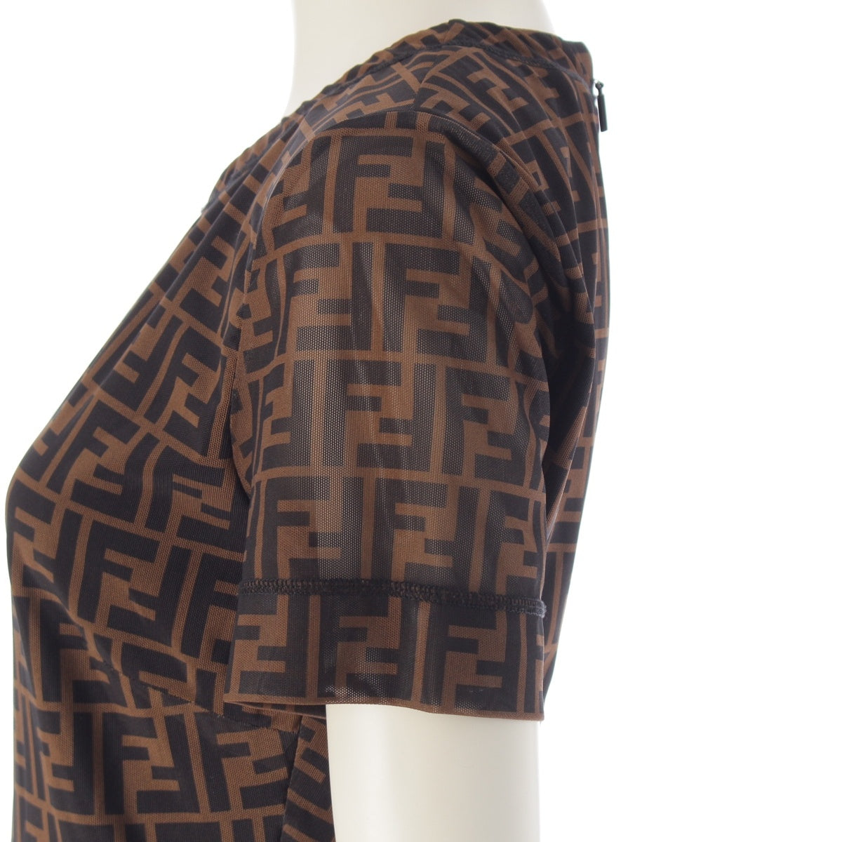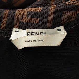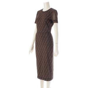 FENDI Nylon Zucca Pattern Short Sleeve Crew Neck Long one piece Brown 38