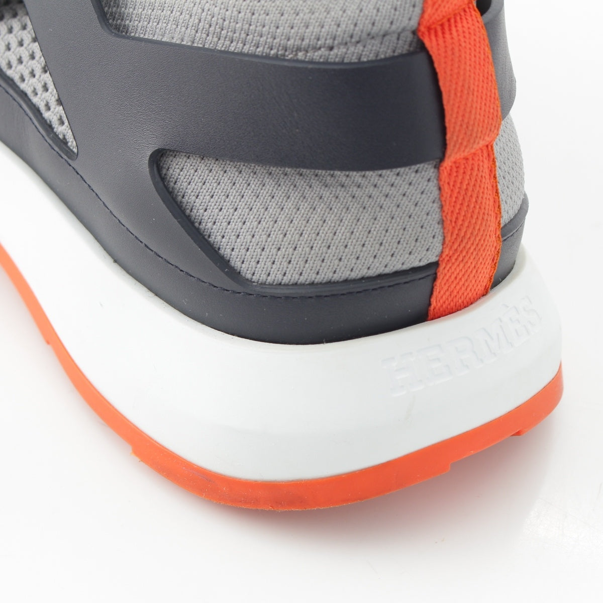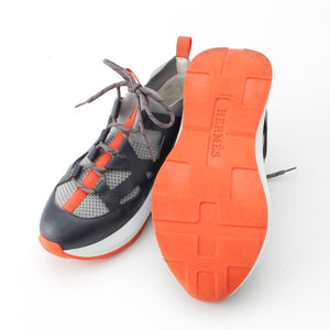 HERMES KATANA leather Mesh low cut sneakers shoes gray 40.5