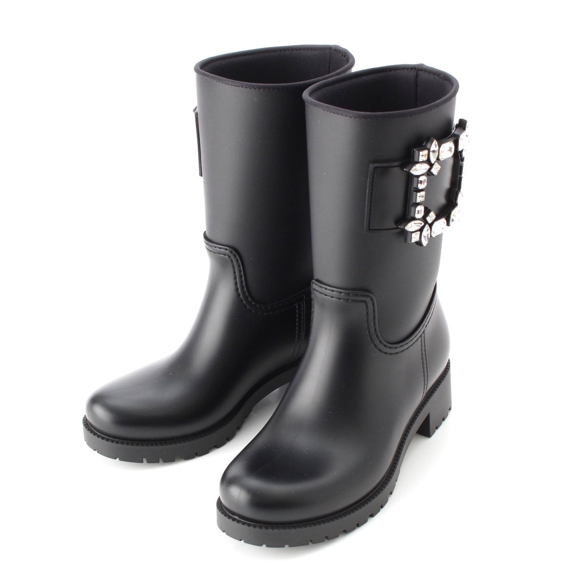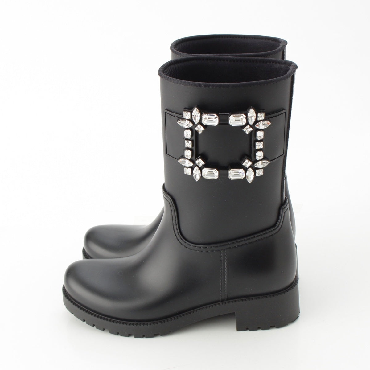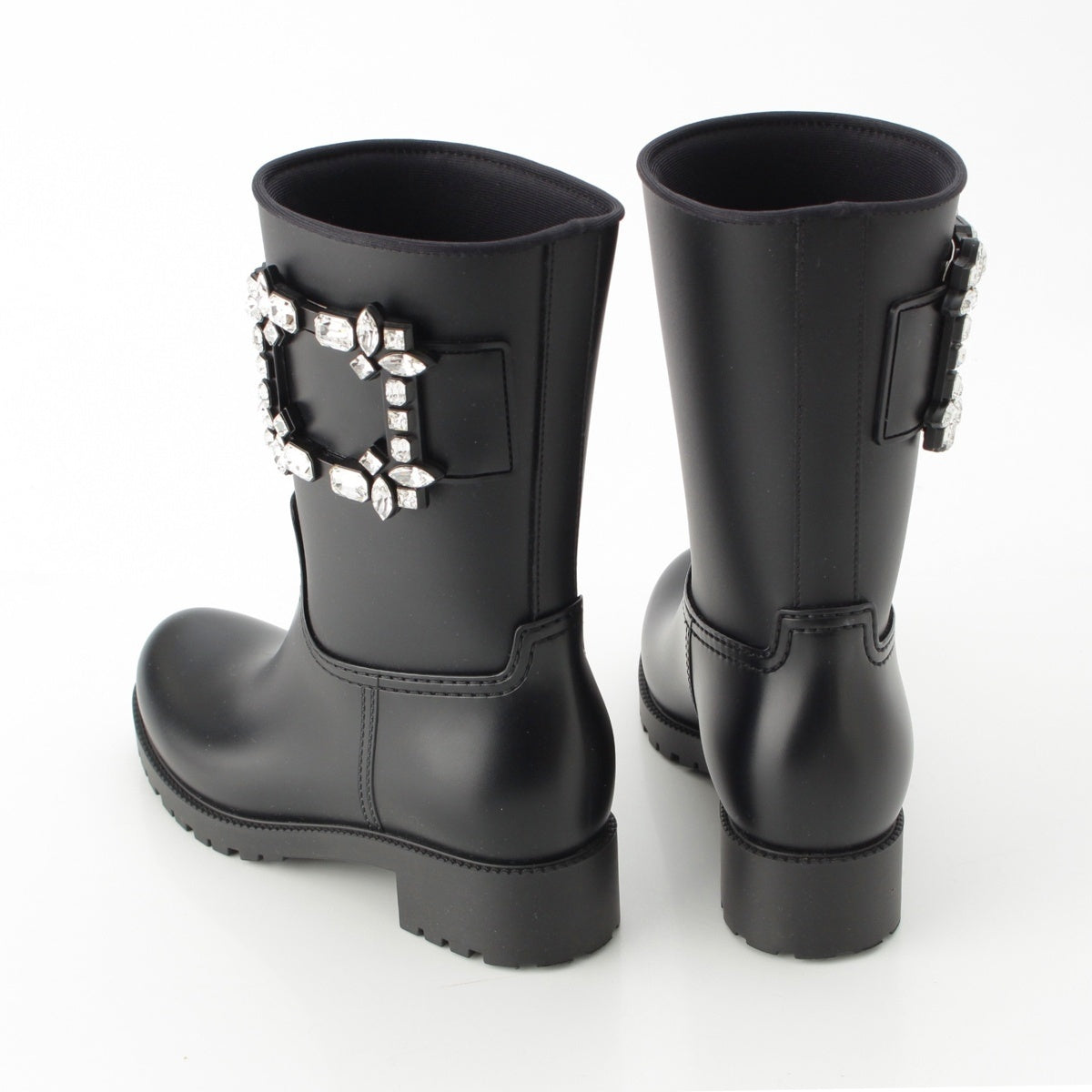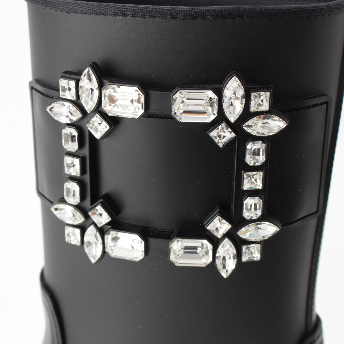 Roger Vivier rubber Strass buckle bijou Rain shoes boots black 35