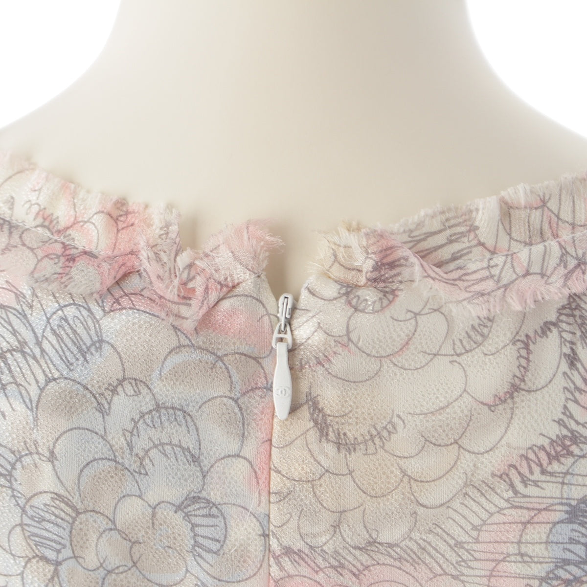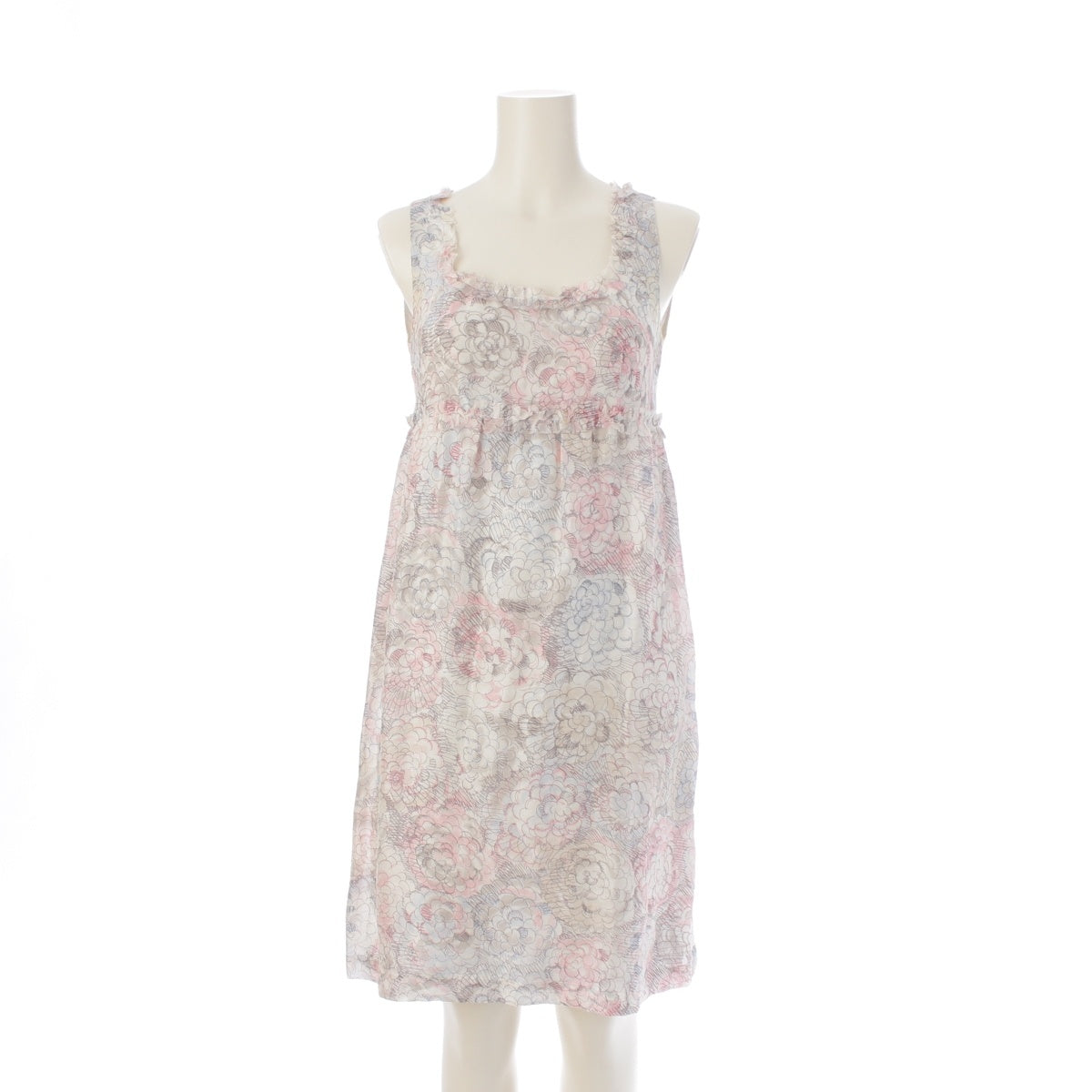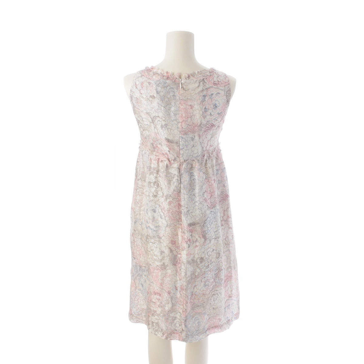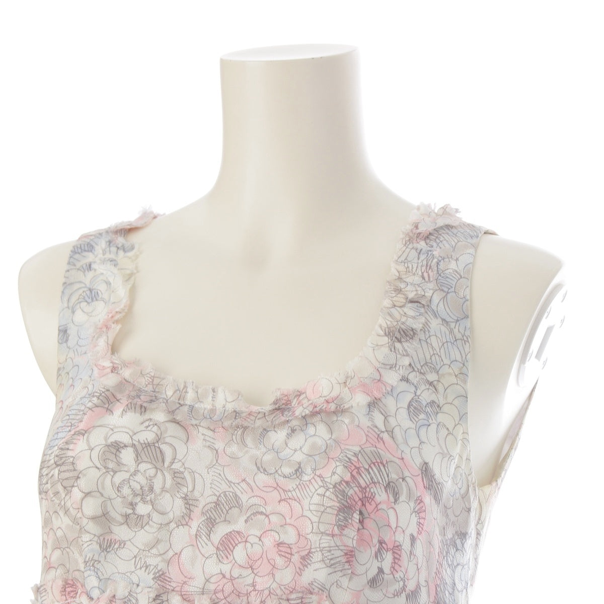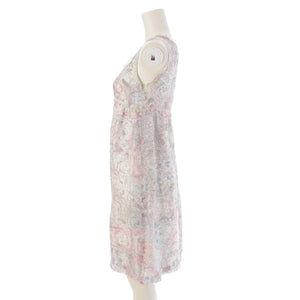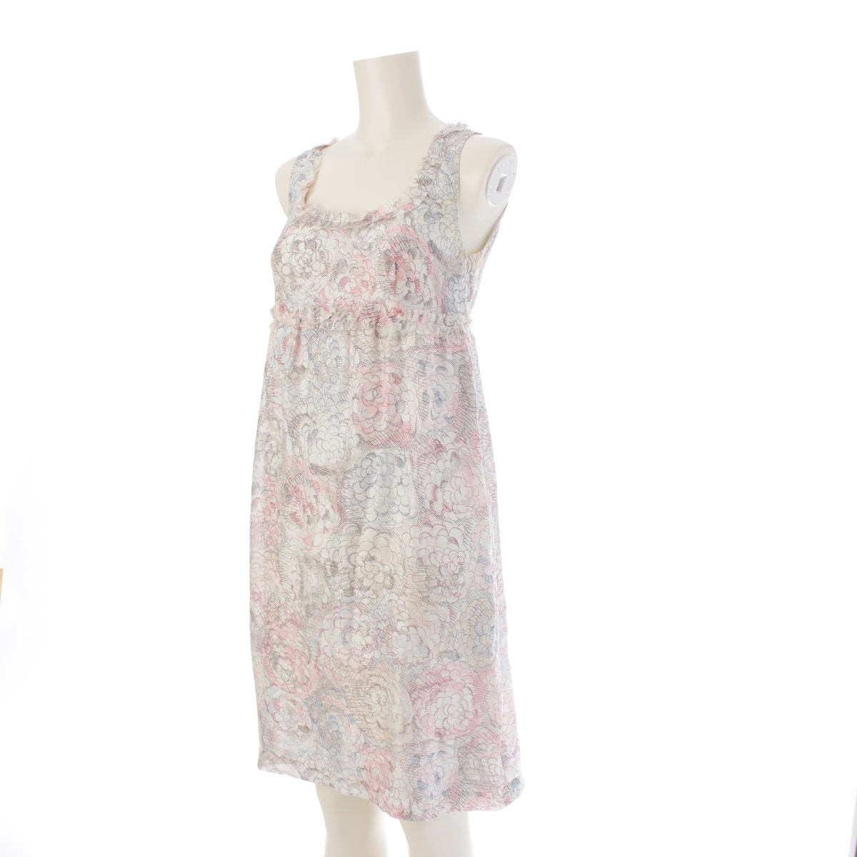 CHANEL silk Camellia COCO Mark Sleeveless one piece P37791 Pink blue 36