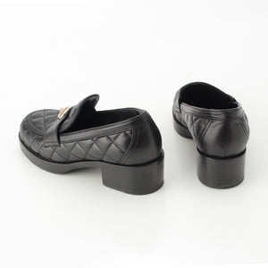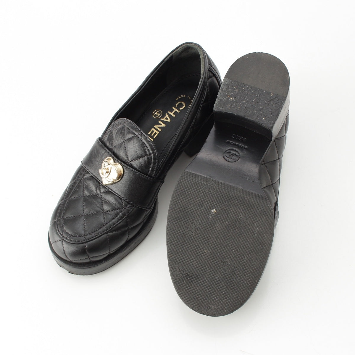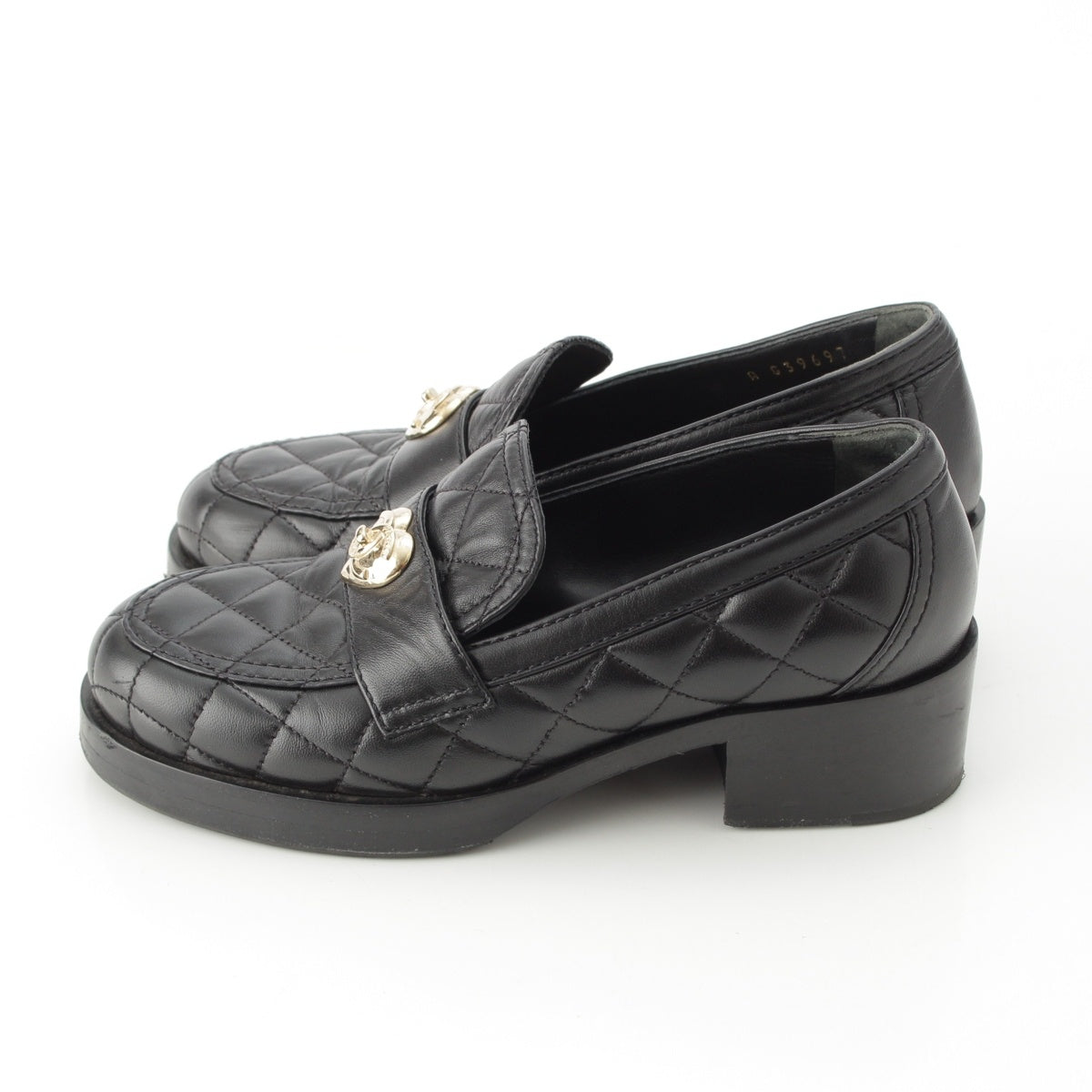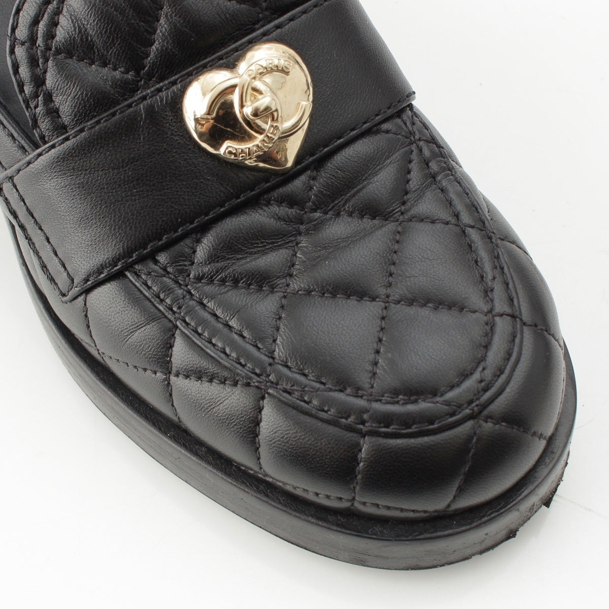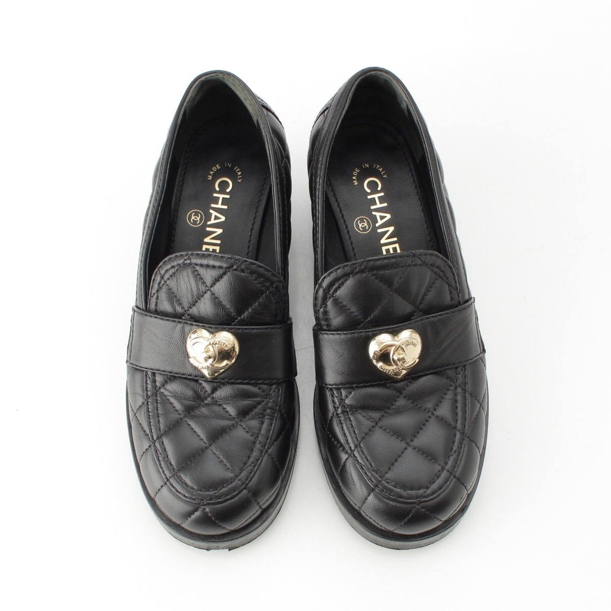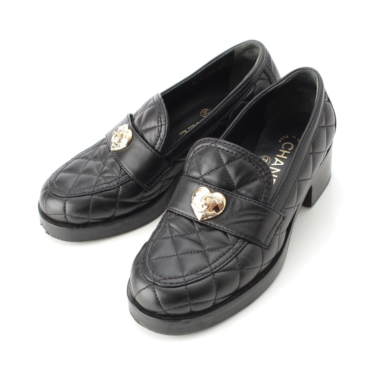 CHANEL leather Matelasse Heart COCO Mark loafers shoes G39697 black 35 1/2