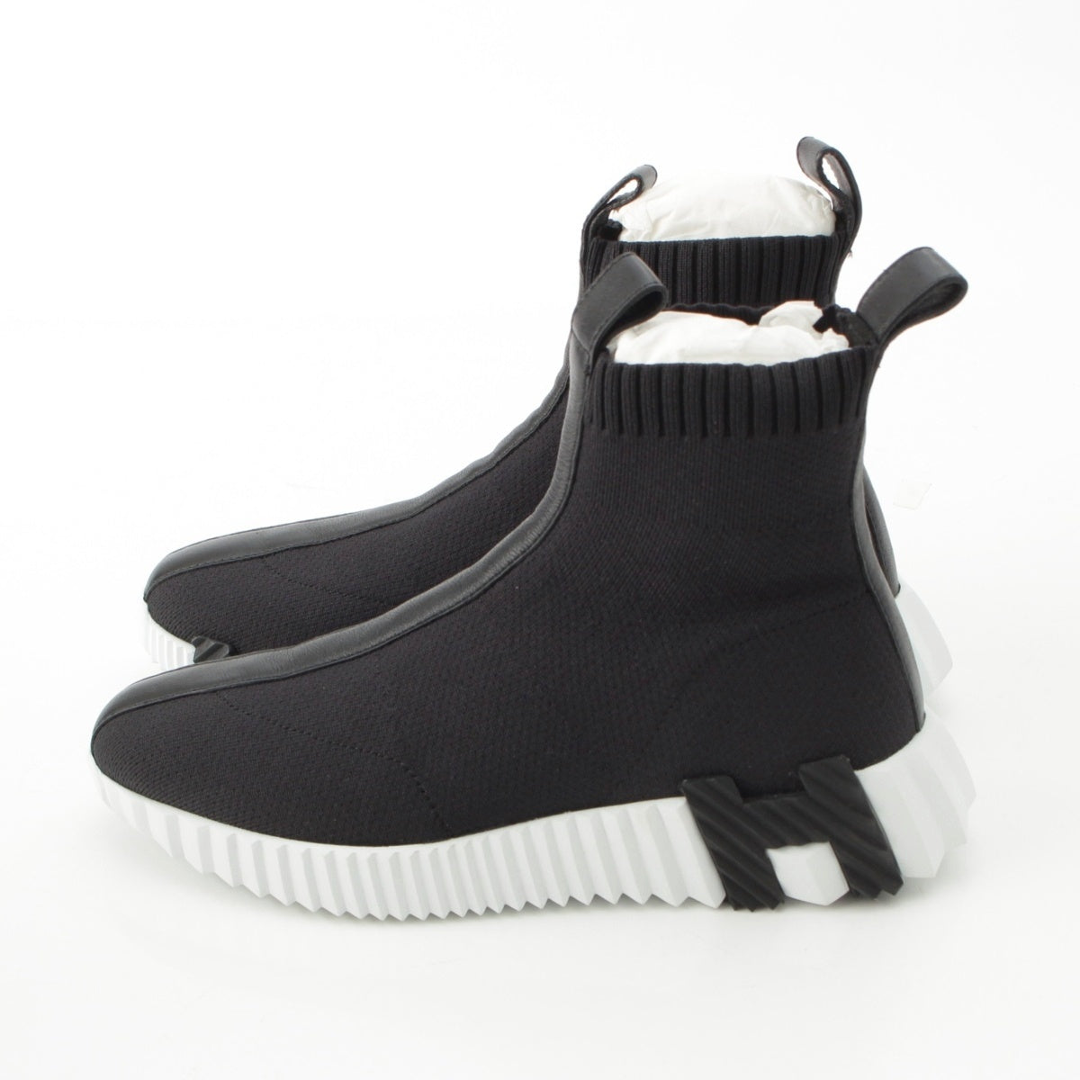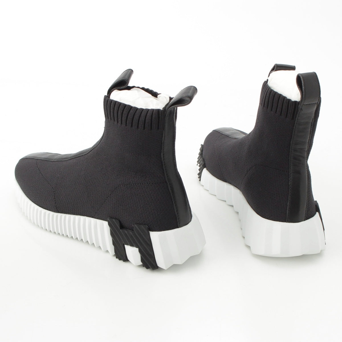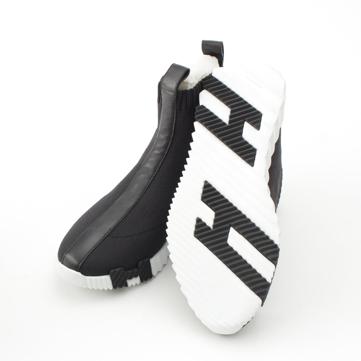 HERMES Nylon Fan H Motif High Cut Socks sneakers shoes black 36.5