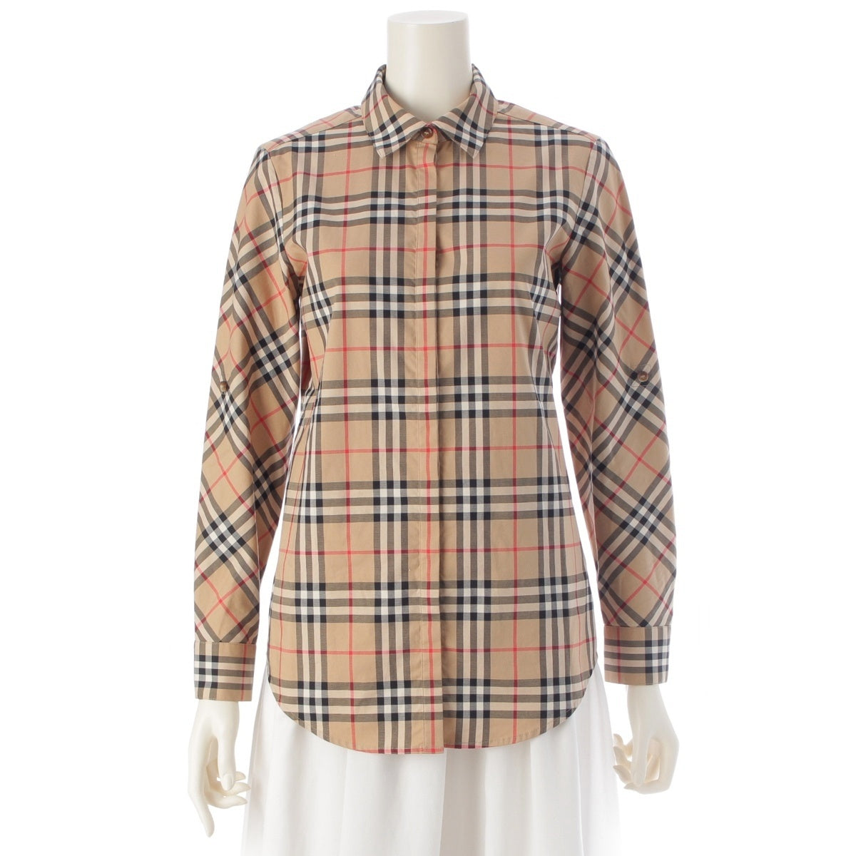BURBERRY cotton Nova Check Flyfront Long sleeve shirt 8018475 beige UK6