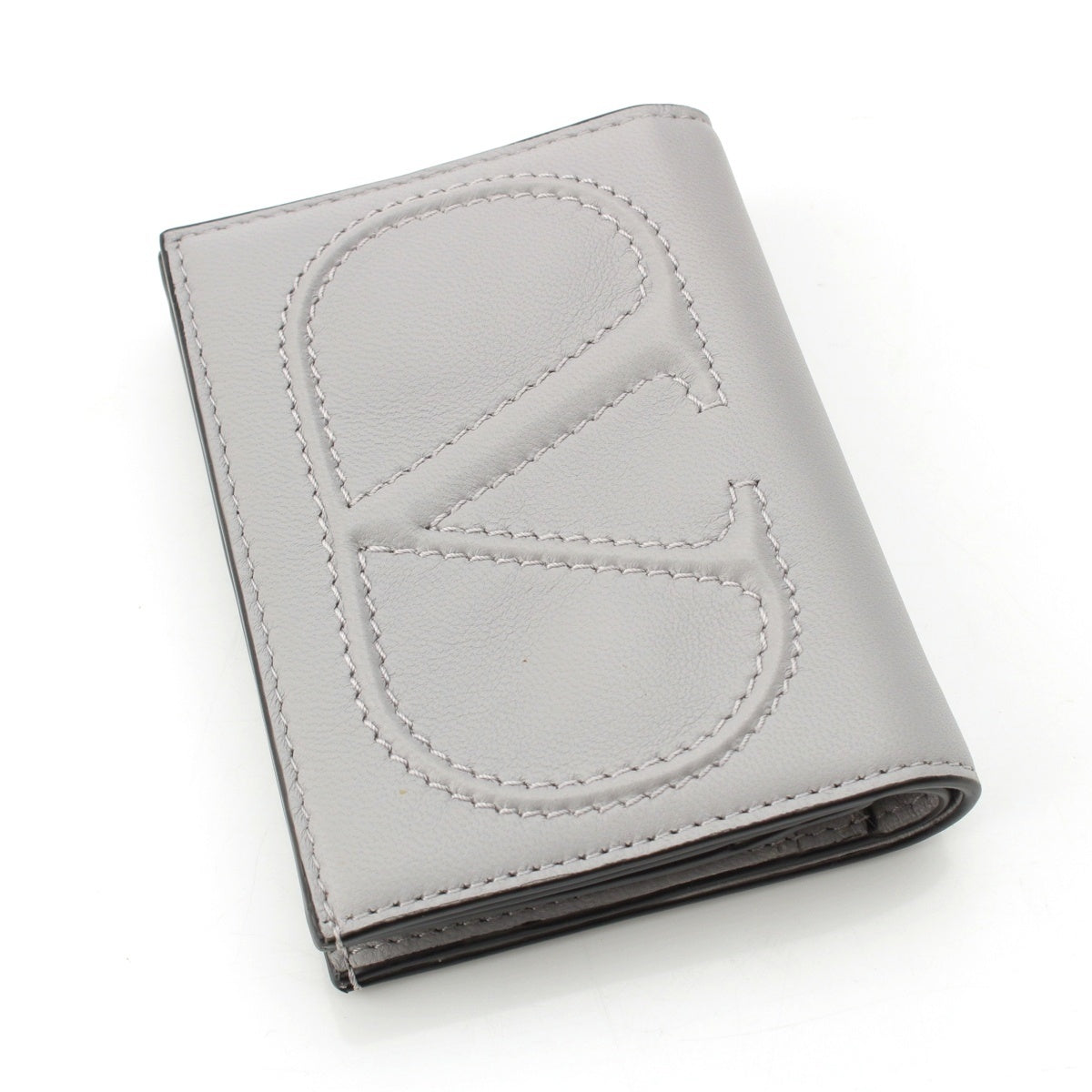 VALENTINO leather V logo compact wallet Bifold Wallet gray