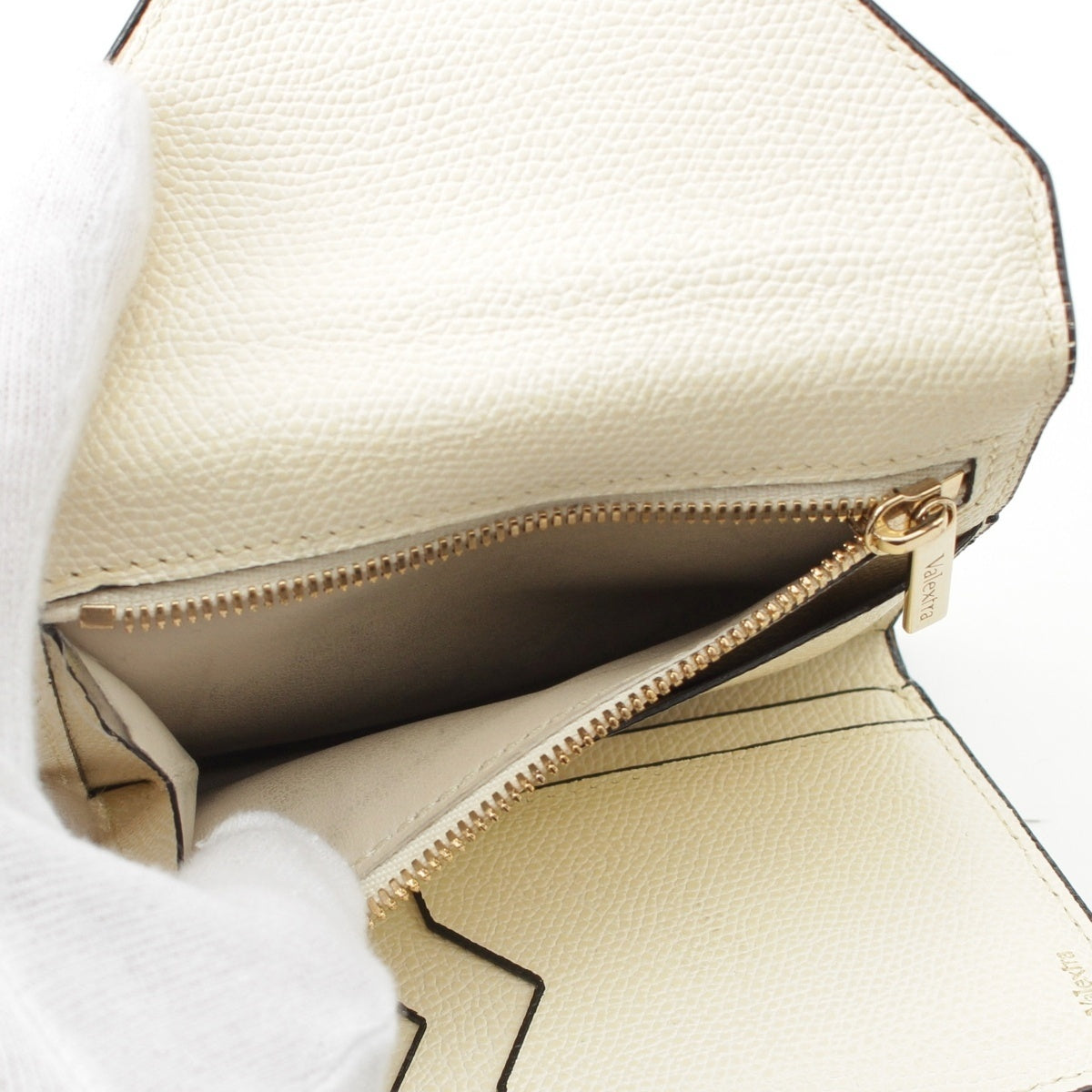 Valextra leather Iside Compact Wallet Tri-fold wallet white
