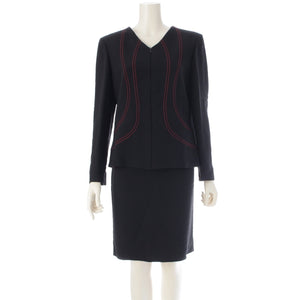 VALENTINO Wool nylon blend Vintage Red Stitch Design Jacket Skirt setup black 10