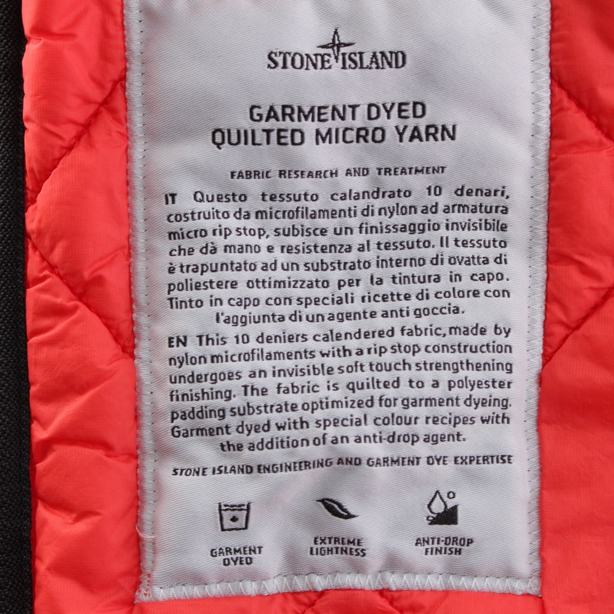 STONE ISLAND GARMENT DYED Quilting batting Best outer 7015G0124 Red M