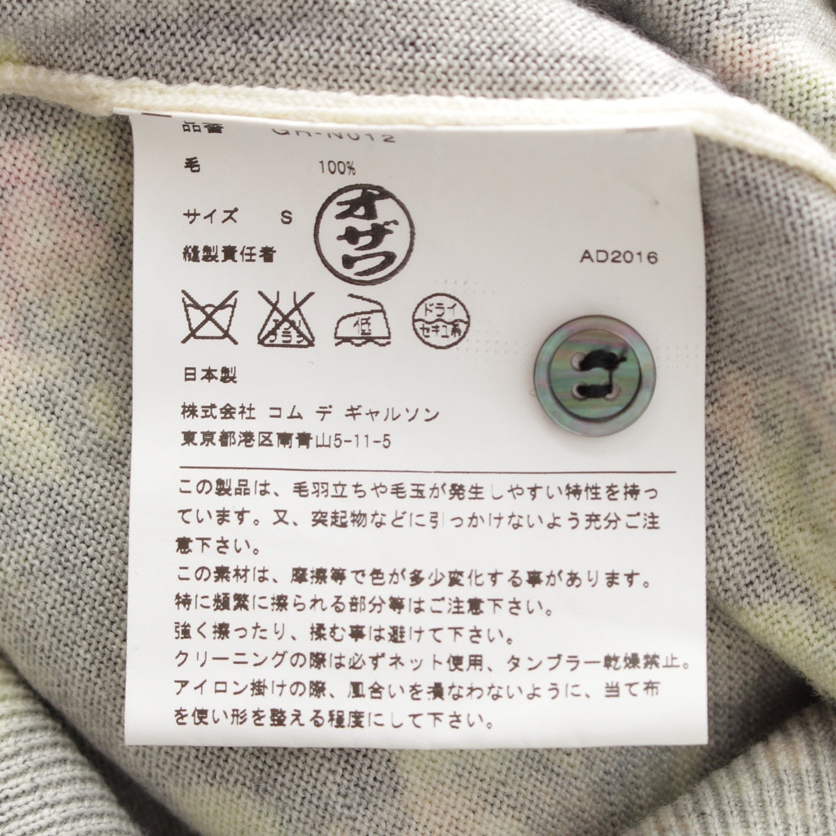 COMME des GARCONS wool Floral print cardigan GR-N012 gray S