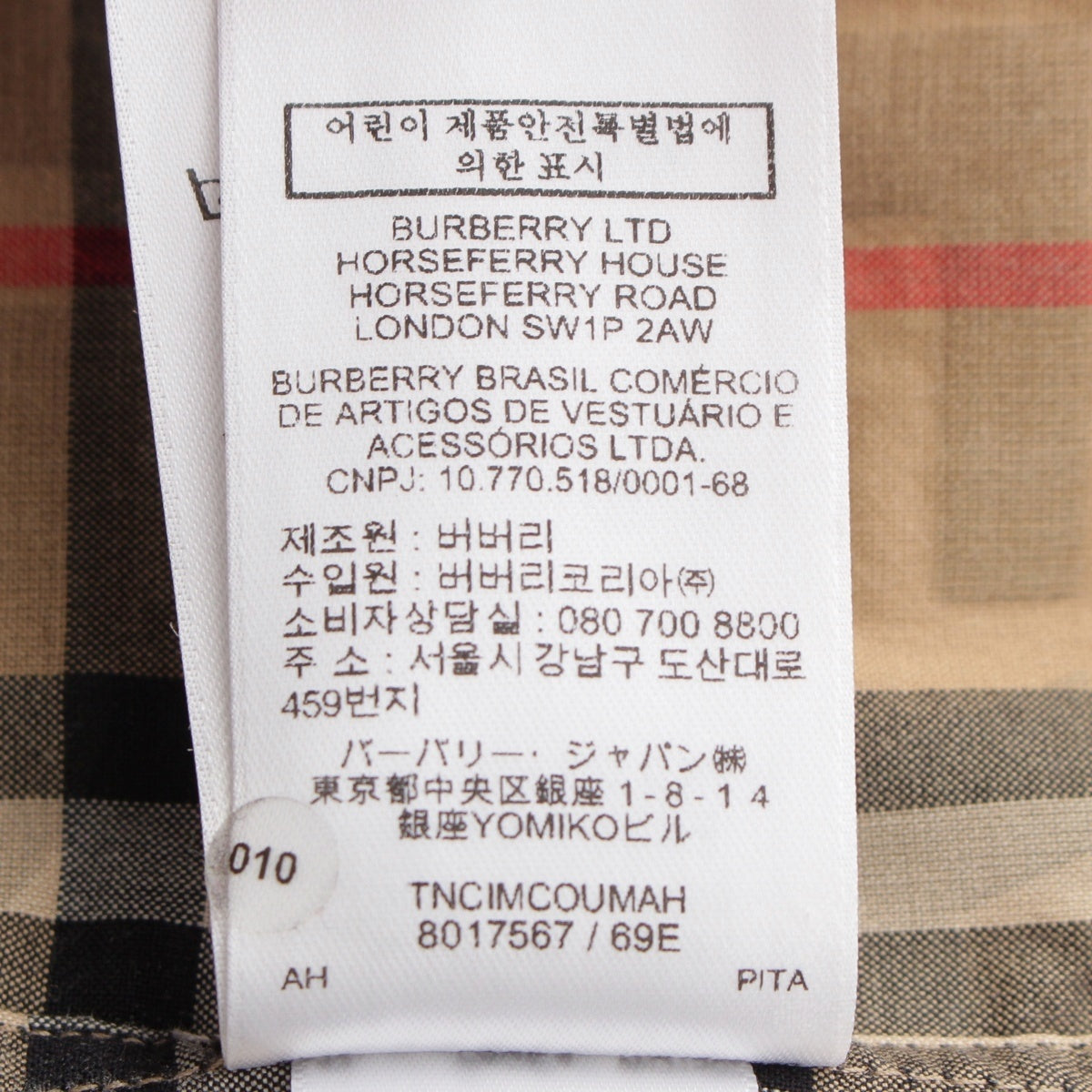 BURBERRY cotton Tisci period logo check Long sleeve shirt tops 8017567 beige S