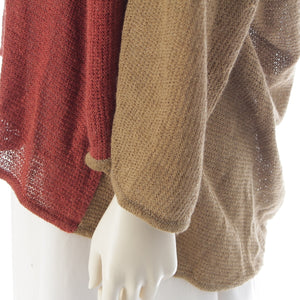 ISSEY MIYAKE All Style Two-tone oversized knit tops Red beige