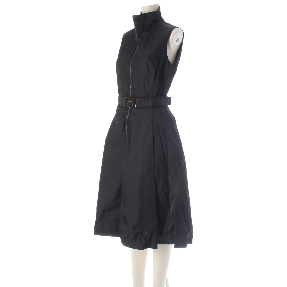 PRADA Nylon Zip up one piece Dress with belt black 42