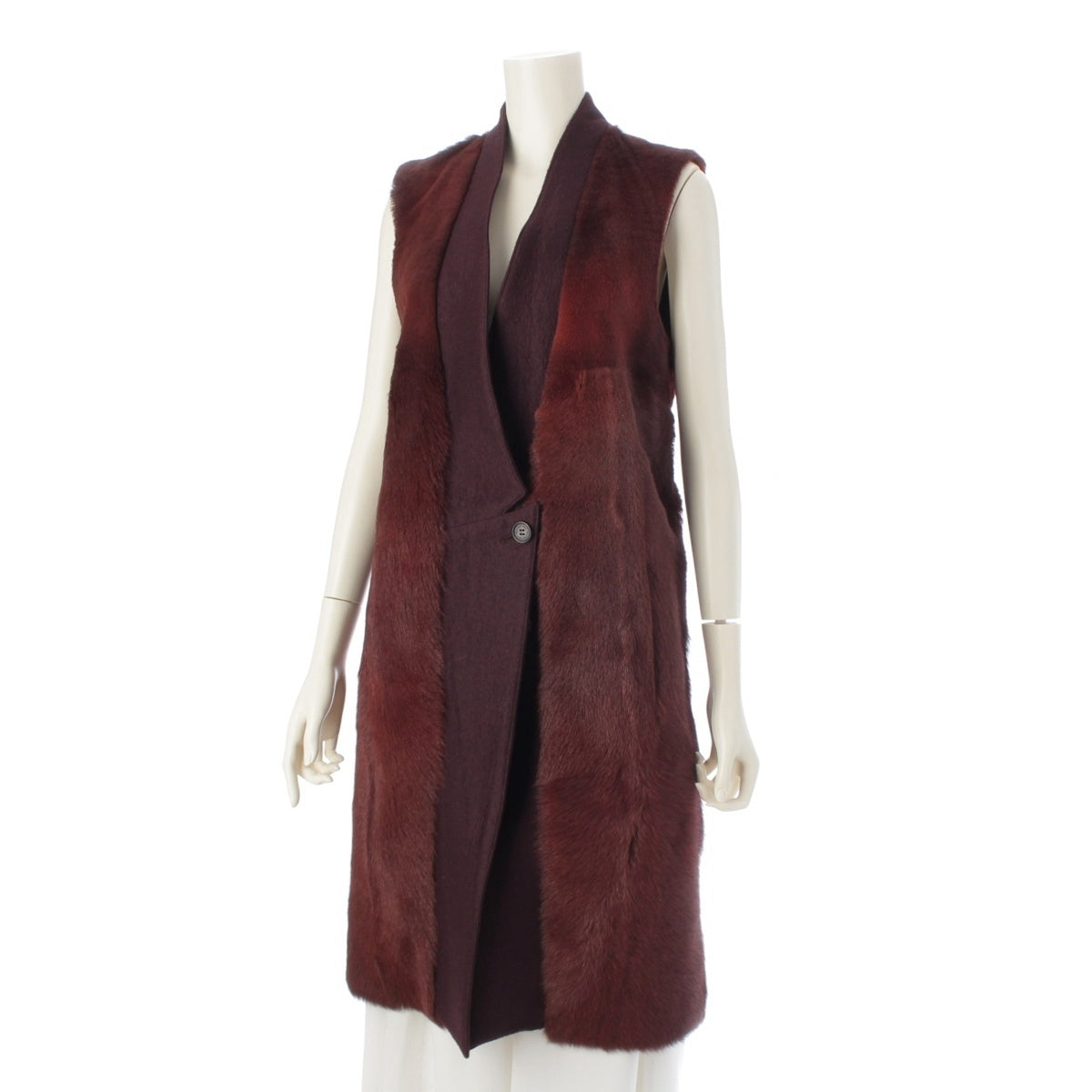 NEIL BARRETT wool fur long coat Best Outer Bordeaux Red XXS