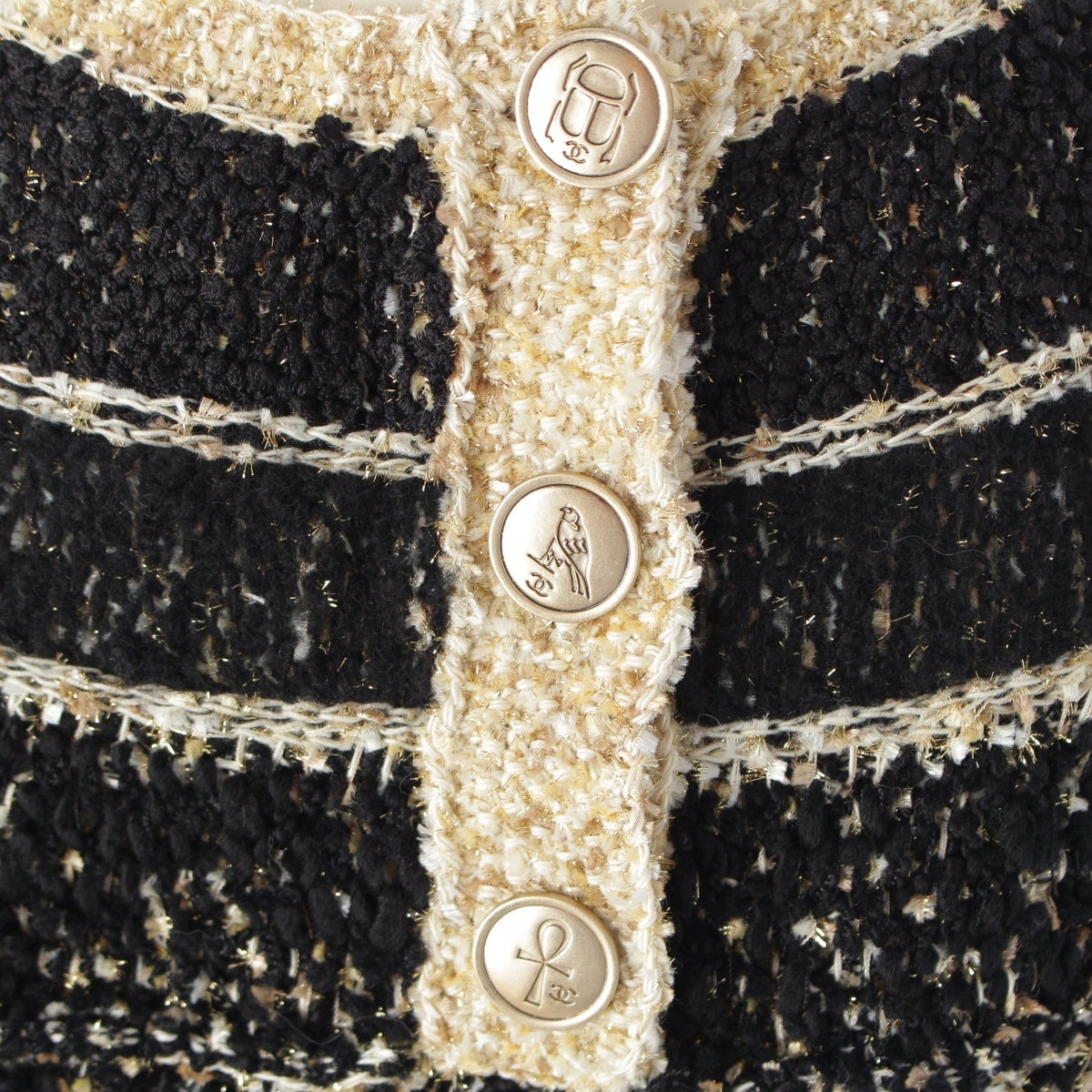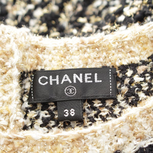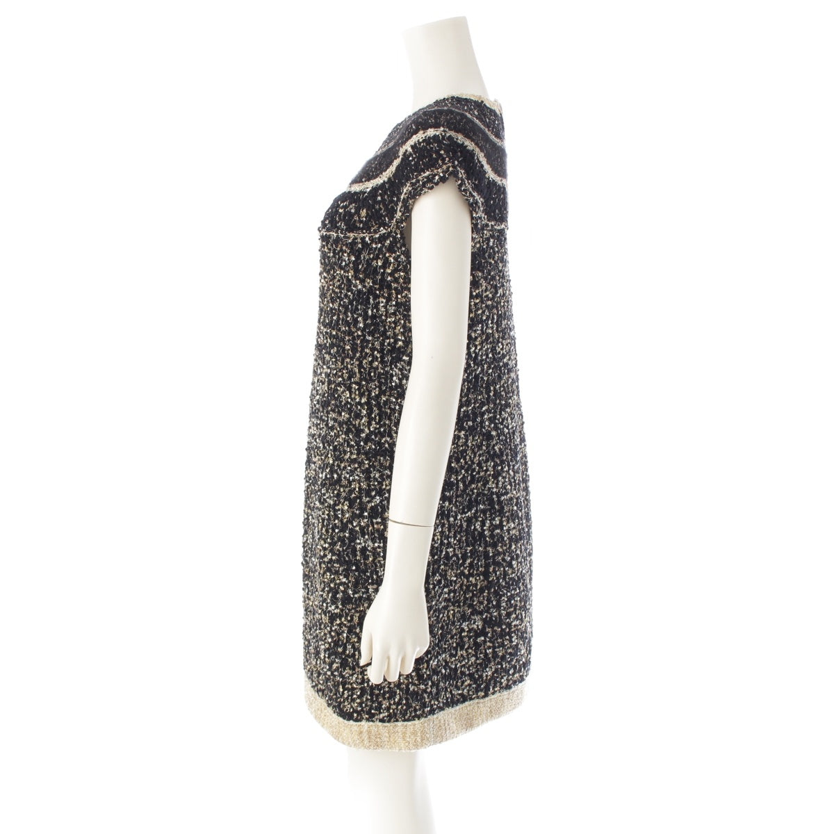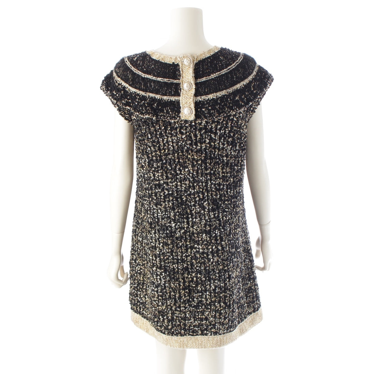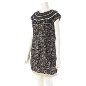 CHANEL Tweed and Egyptian Button Knit one piece dress Black gold 38