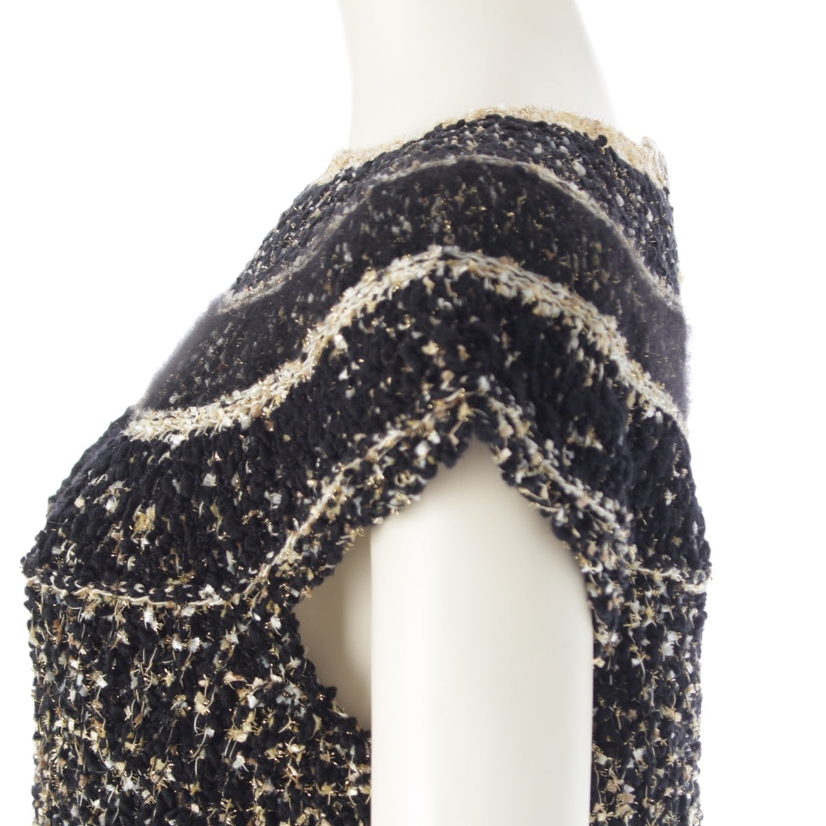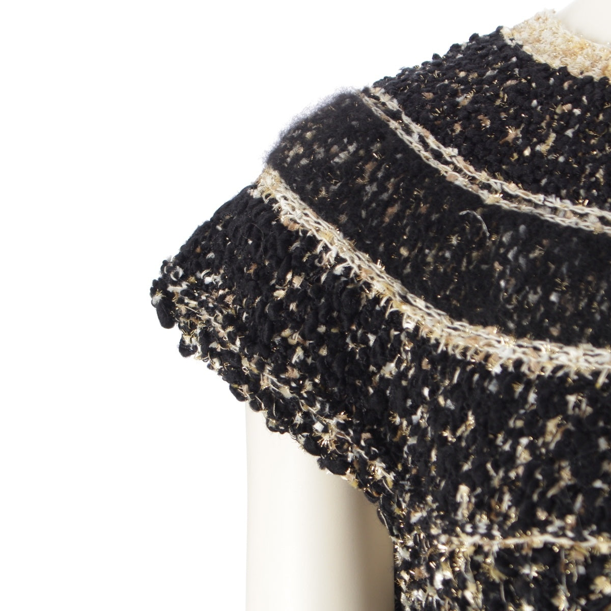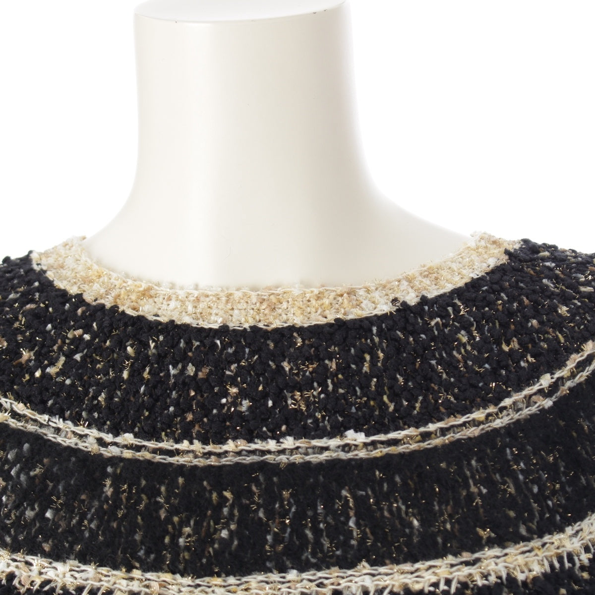 CHANEL Tweed and Egyptian Button Knit one piece dress Black gold 38