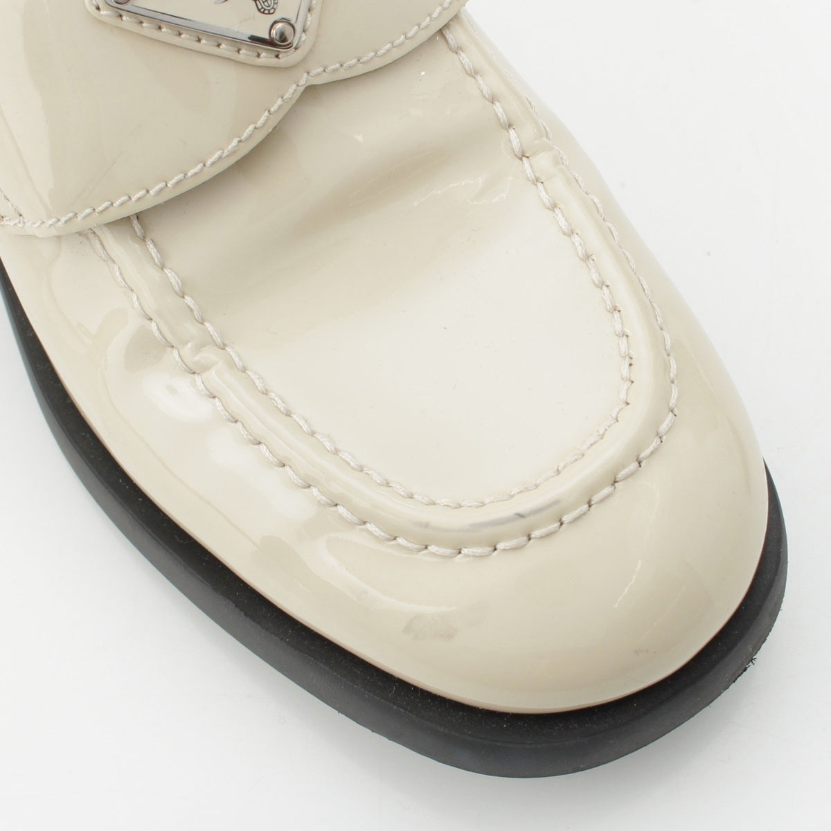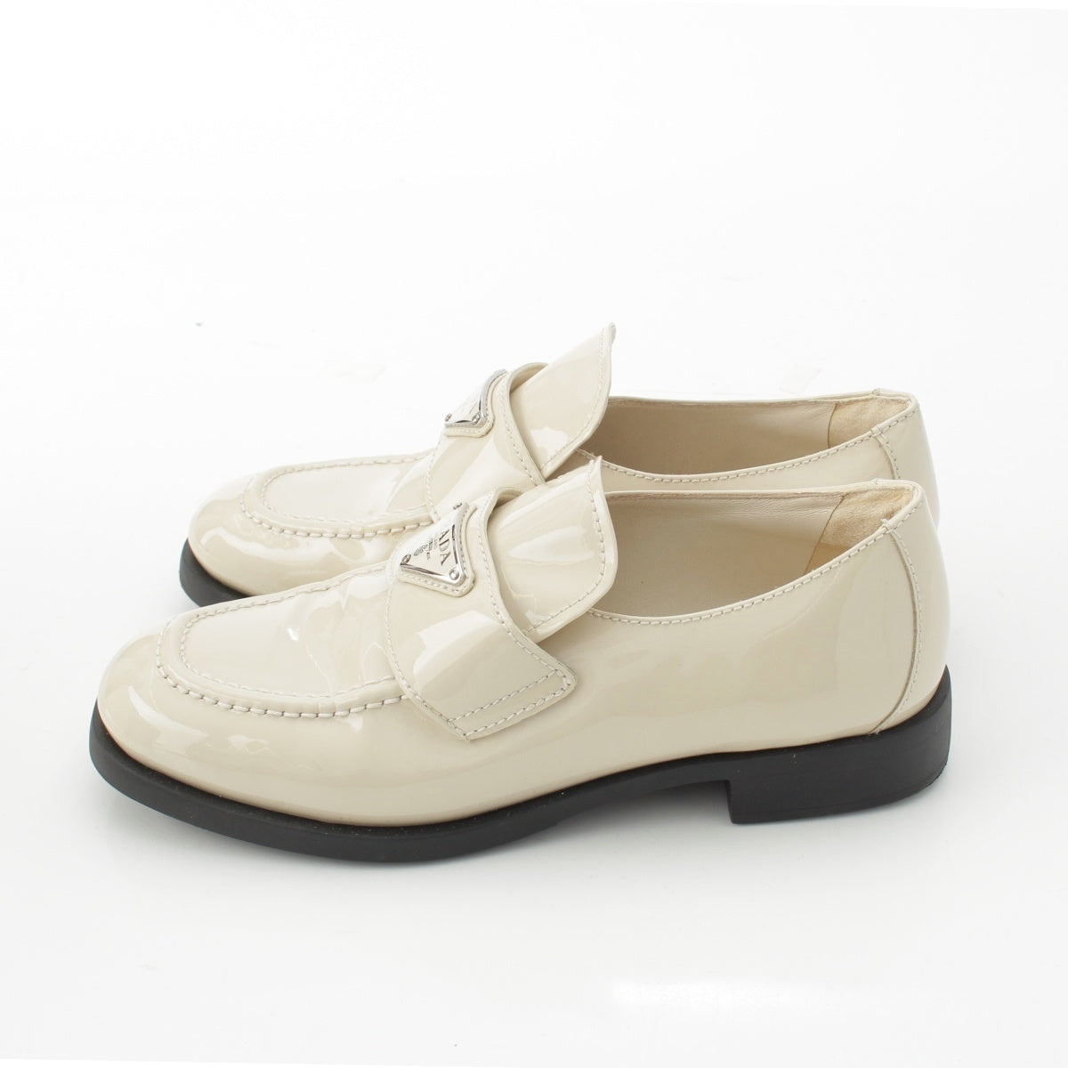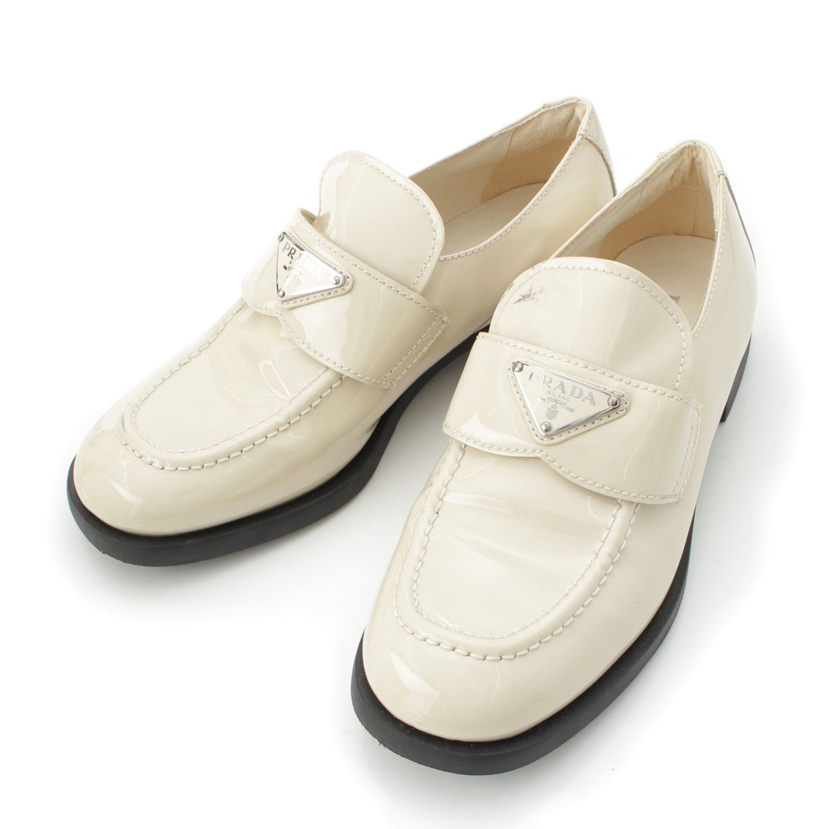 PRADA Patent leather Triangle Logo Chocolate Brushed loafers off white 37